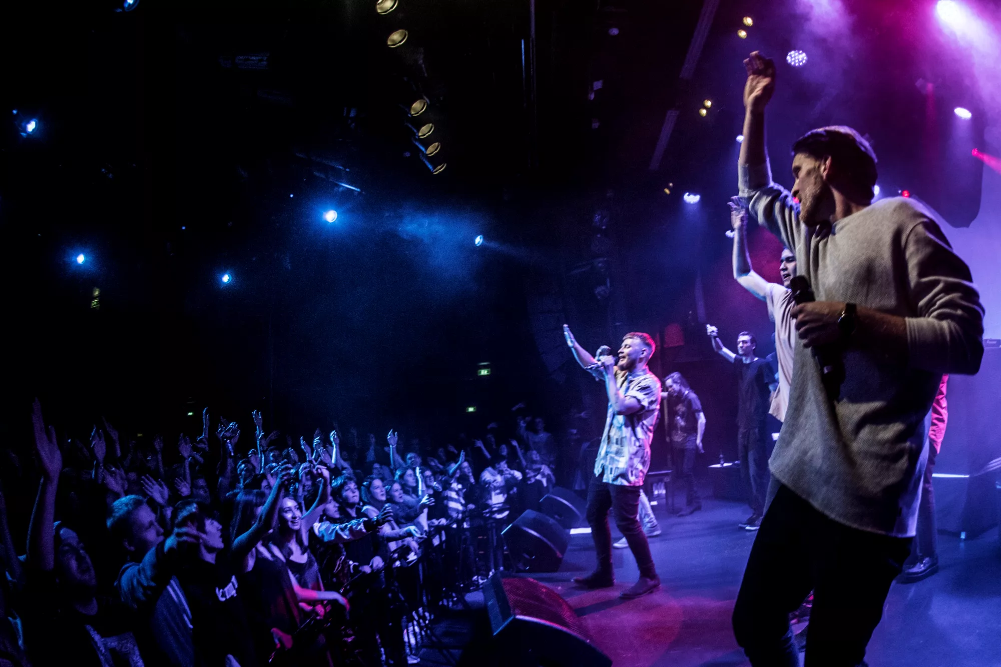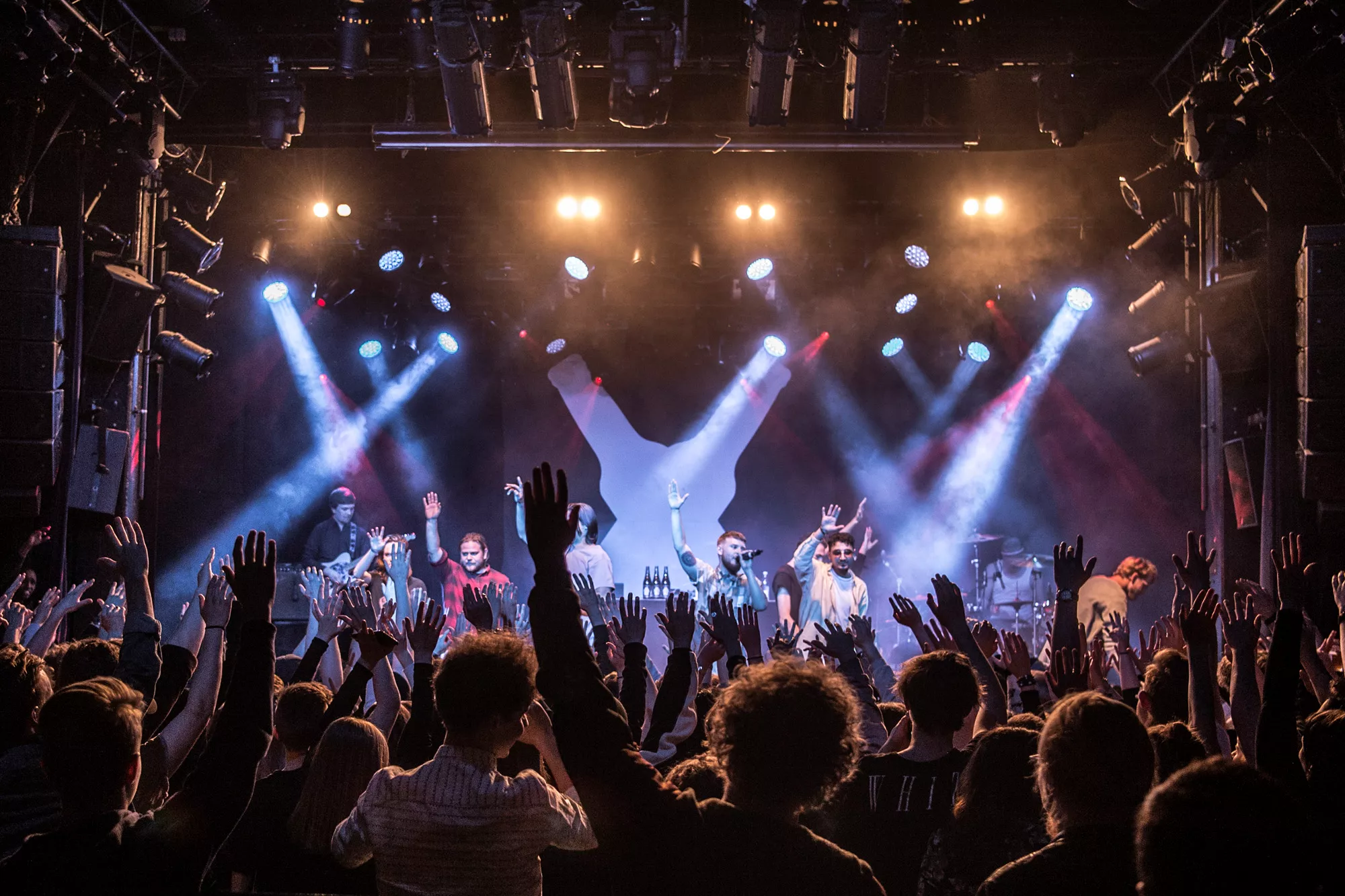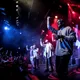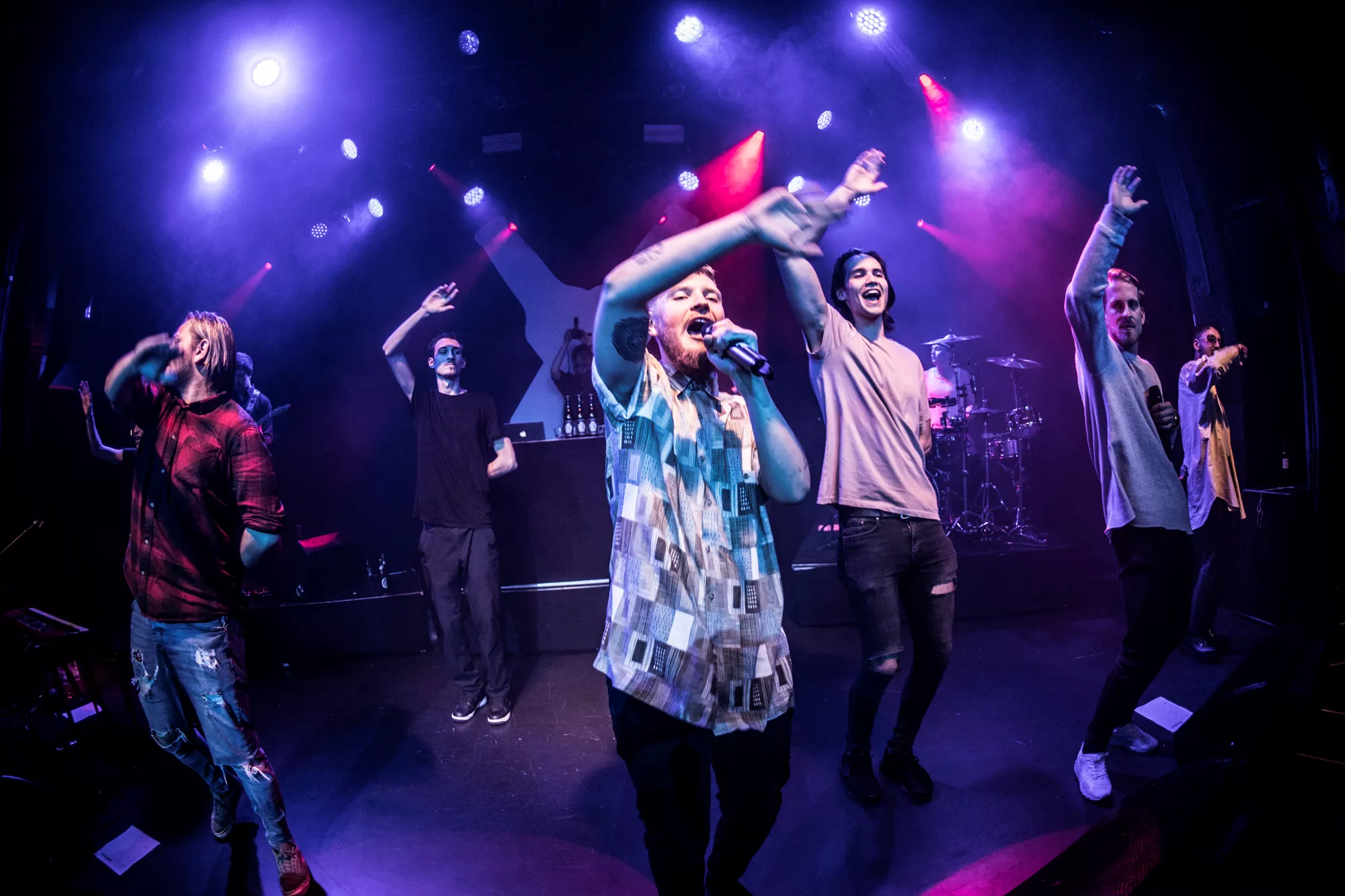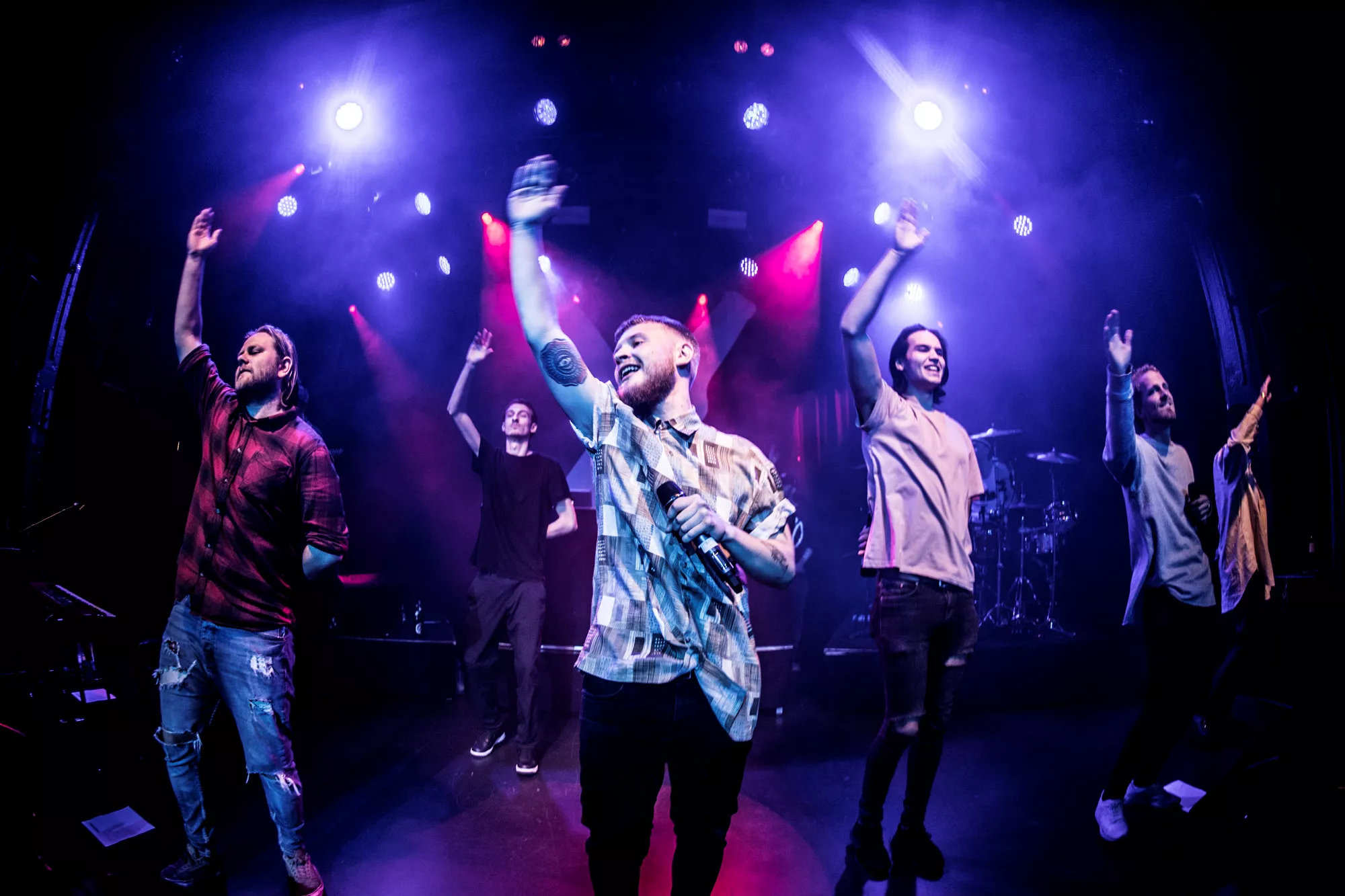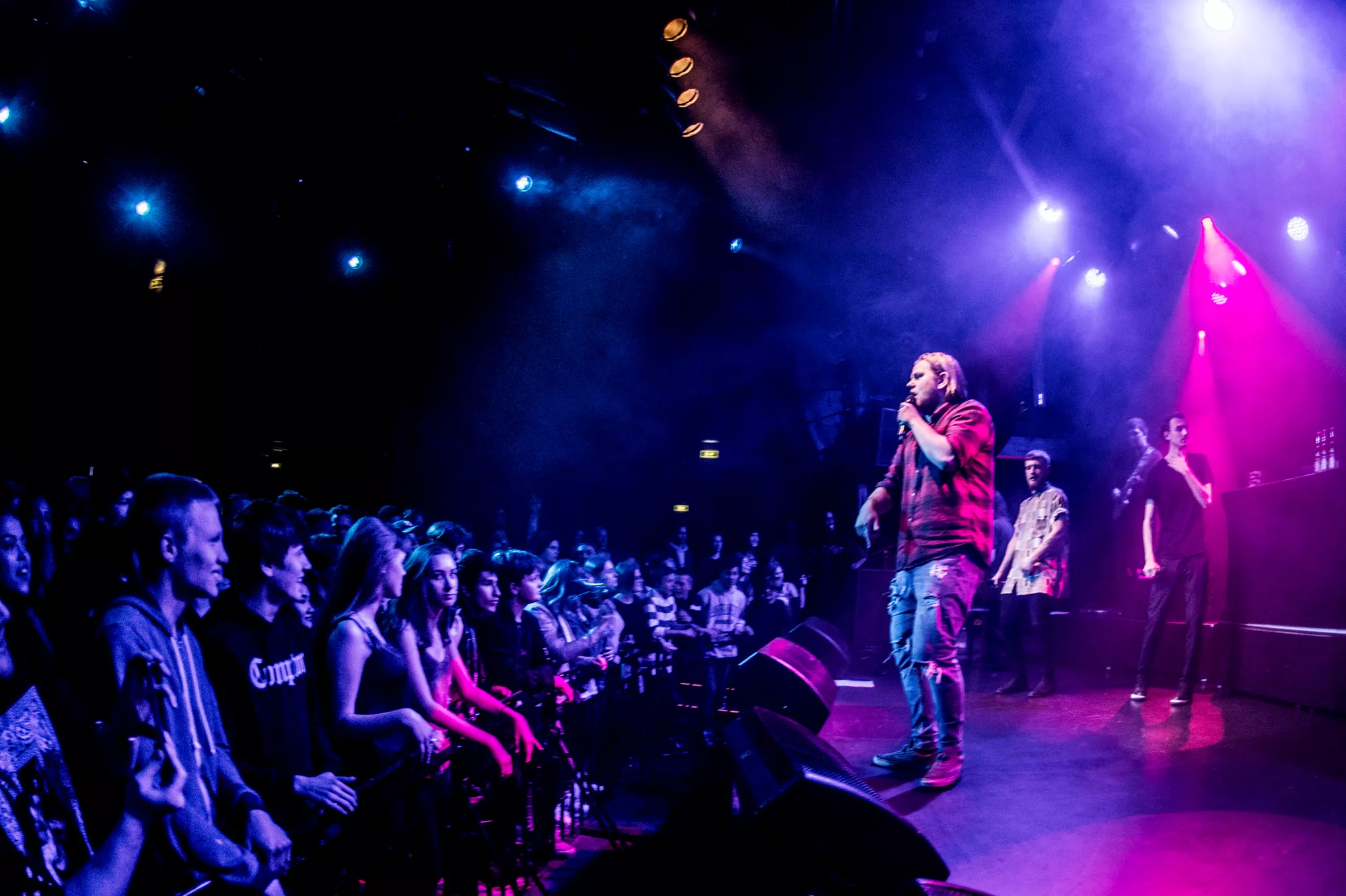 De seks år, det musikalske kollektiv har været samlet, har resulteret i tre studiealbum med dansksproget rap. I aften står de på scenen på Train i Aarhus, hvor de rapper og synger sig igennem tyve numre. Omkring en halv time før showtime fylder en stille og en