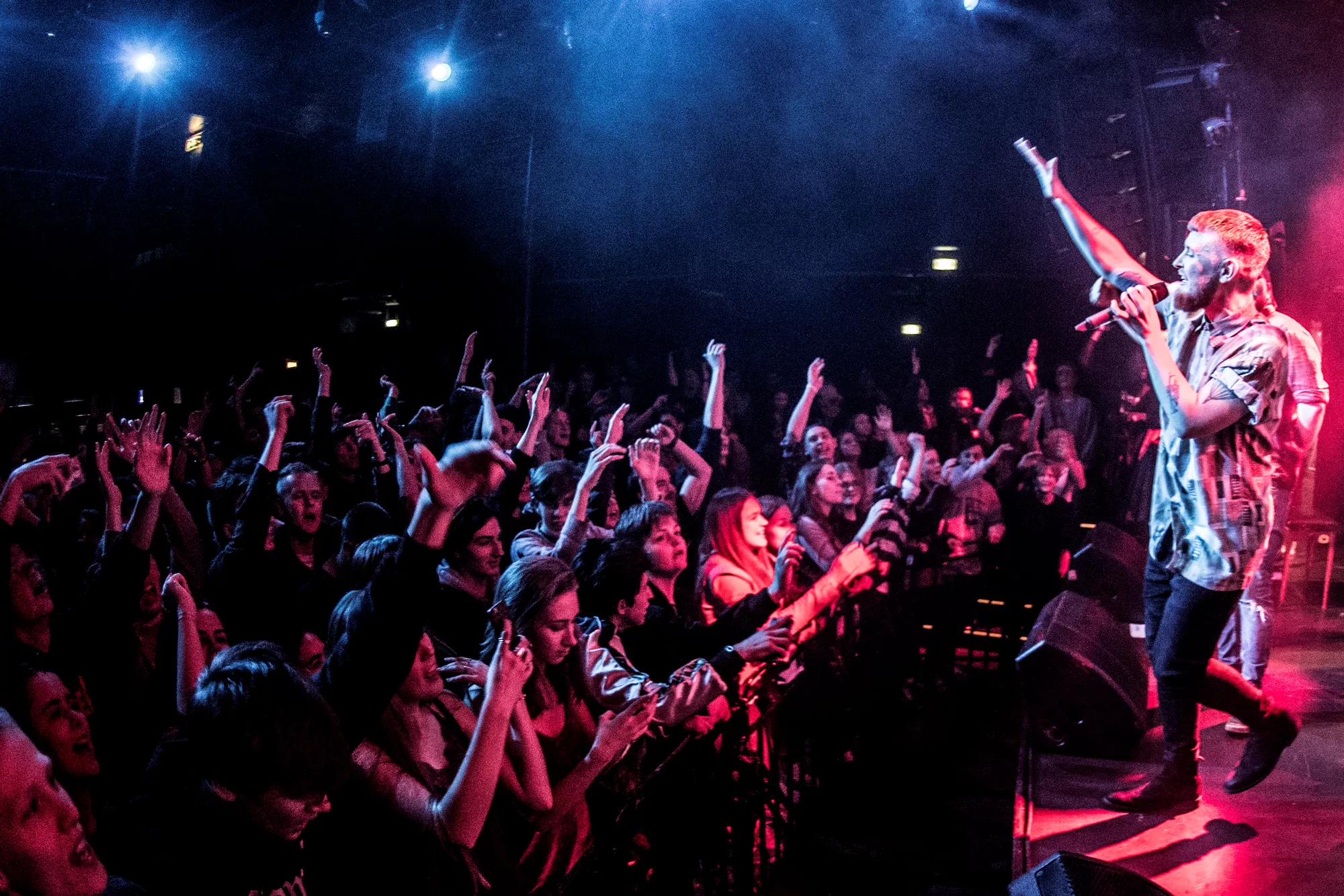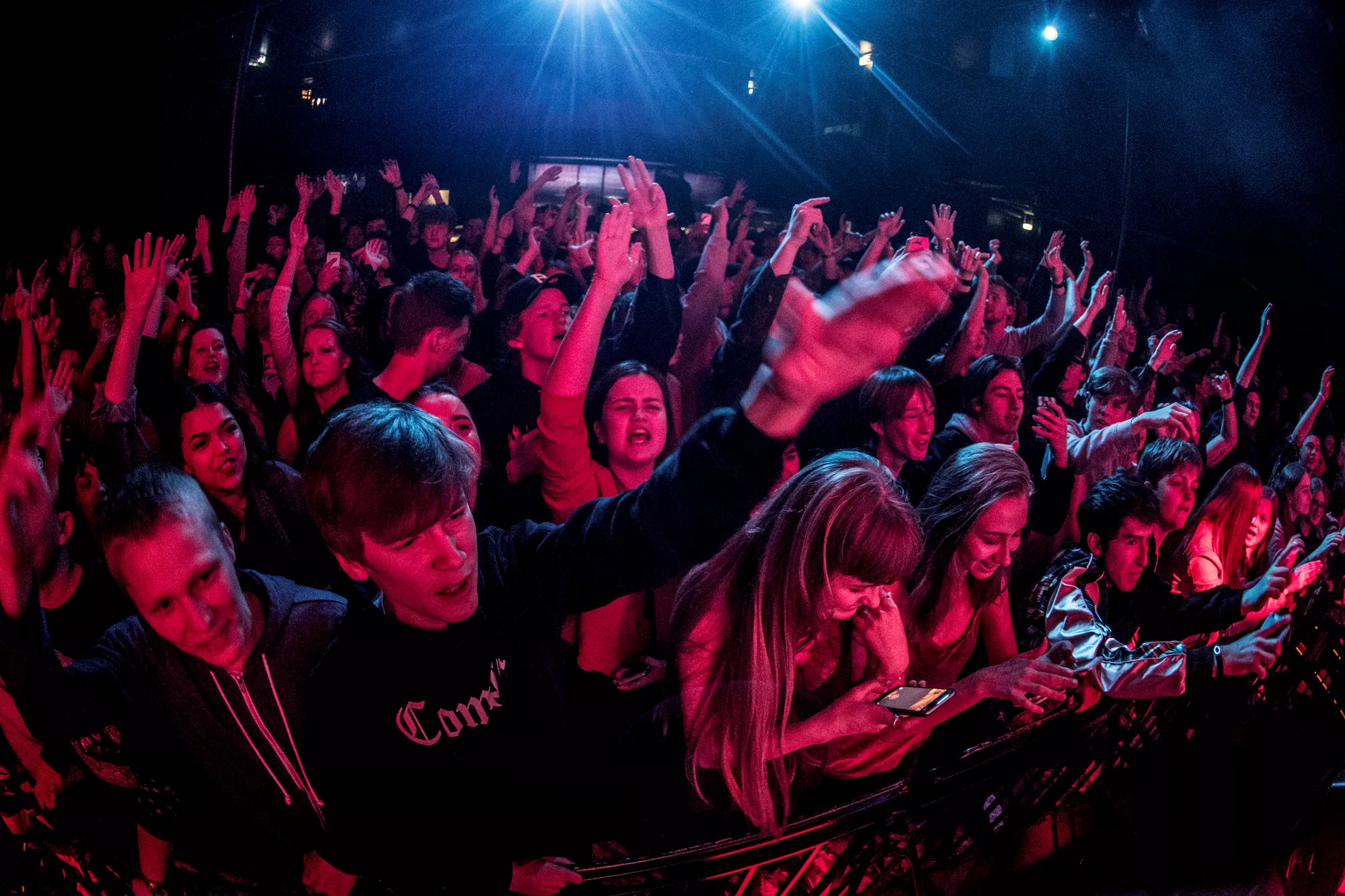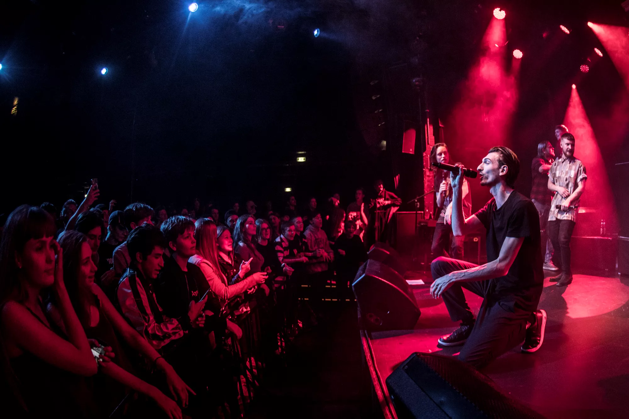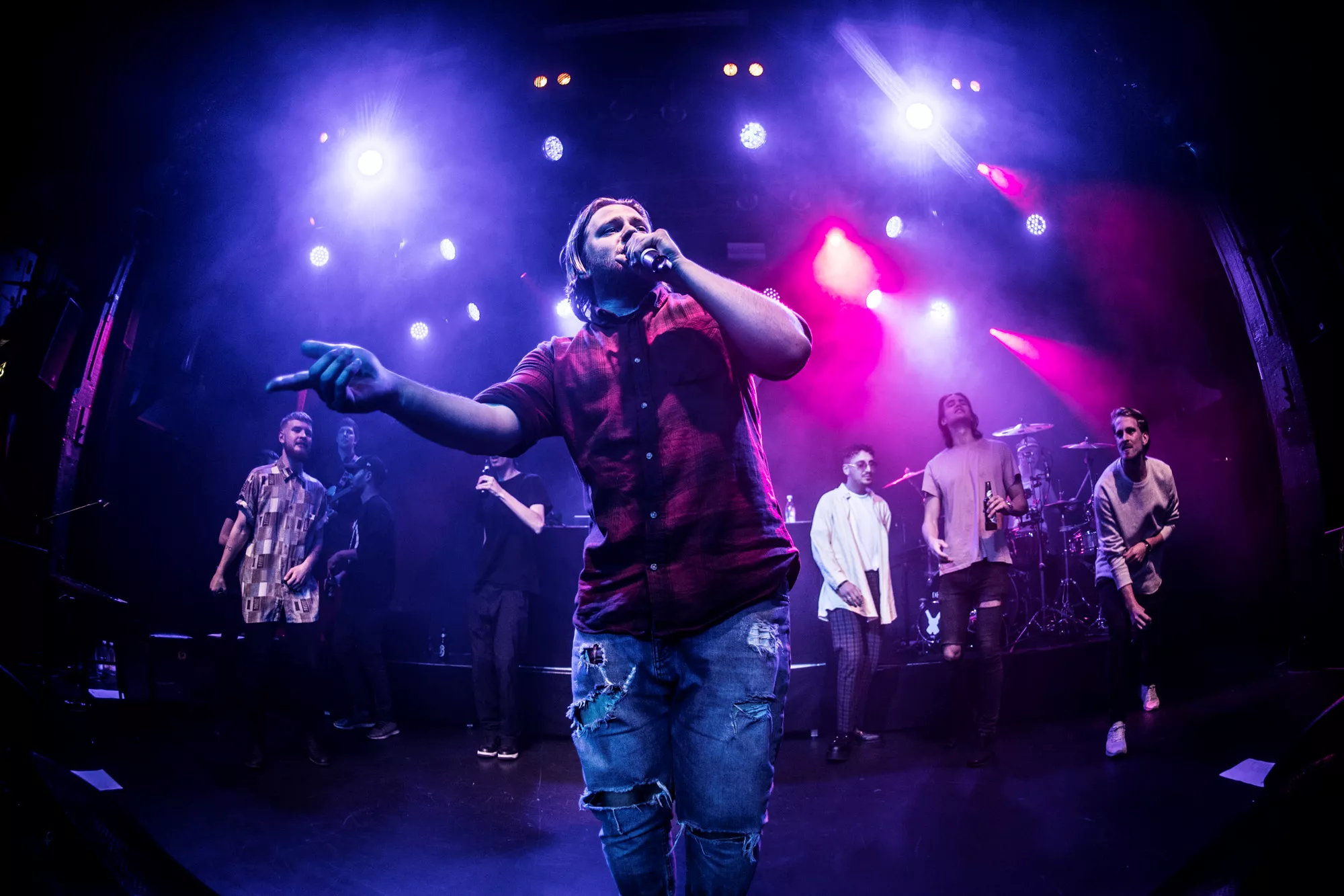De seks år, det musikalske kollektiv har været samlet, har resulteret i tre studiealbum med dansksproget rap. I aften står de på scenen på Train i Aarhus, hvor de rapper og synger sig igennem tyve numre. Omkring en halv time før showtime fylder en stille og en
