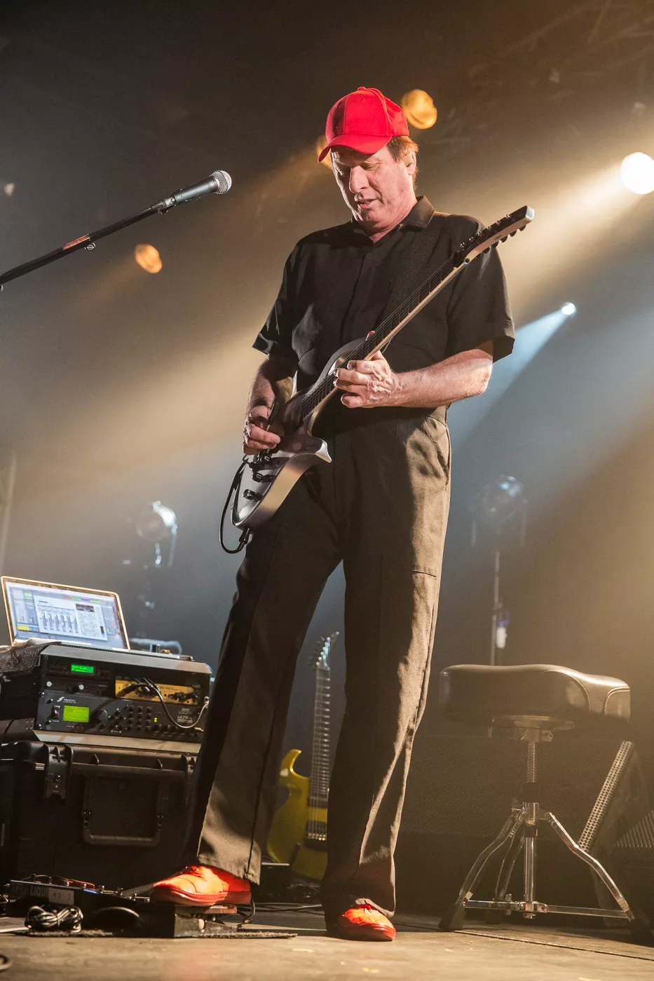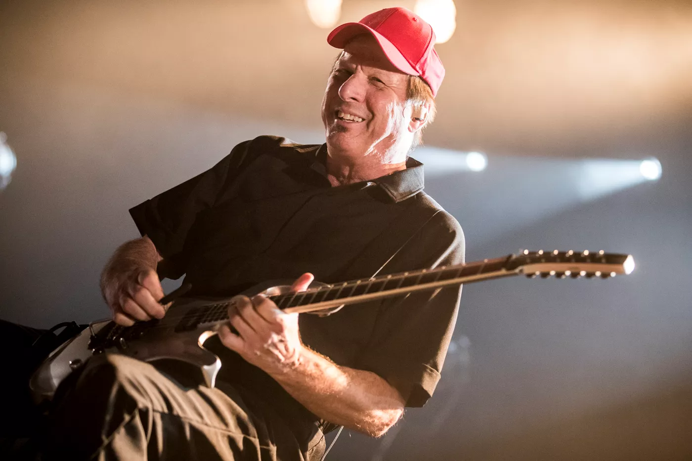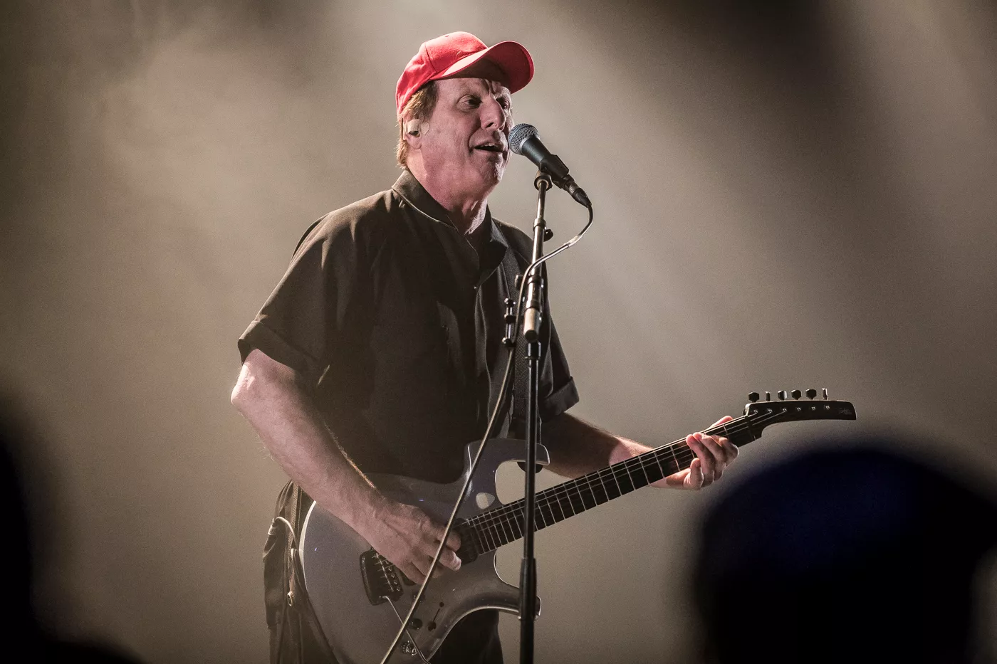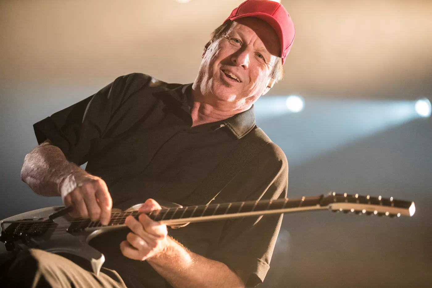 På trods af at Adrian Belew kan skrive tunge navne som Frank Zappa, David Bowie og Talking Heads på sit alenlange, musikalske cv var det kun omkring 70 odenseanske musikentusiaster, der var mødt op på Posten torsdag aften for at opleve den 67-årige amerikanske guitarist,