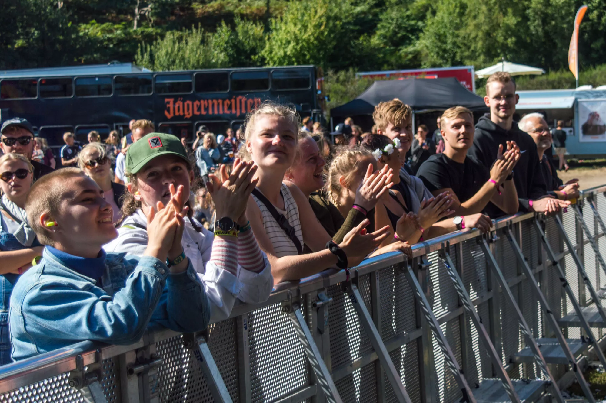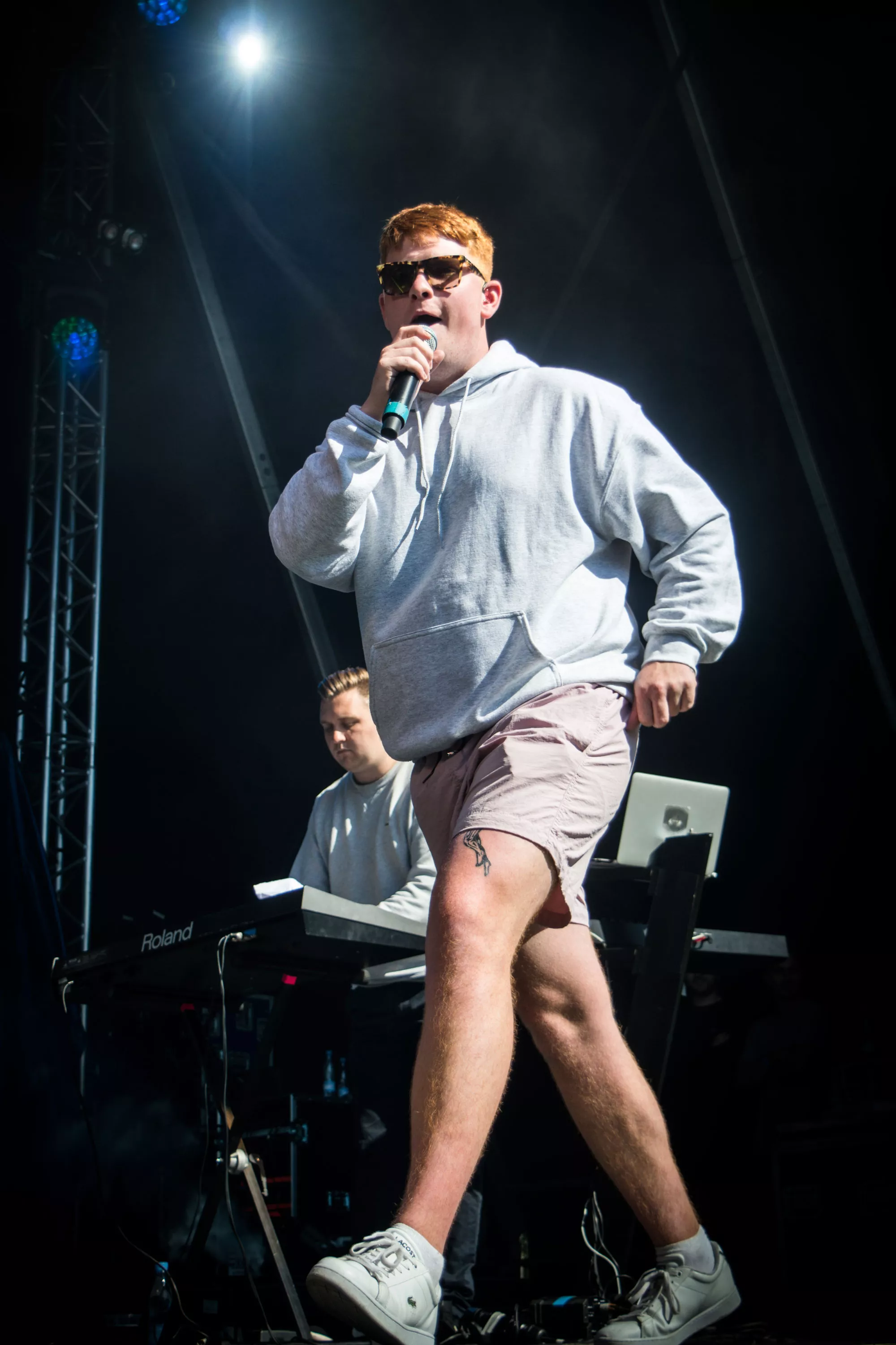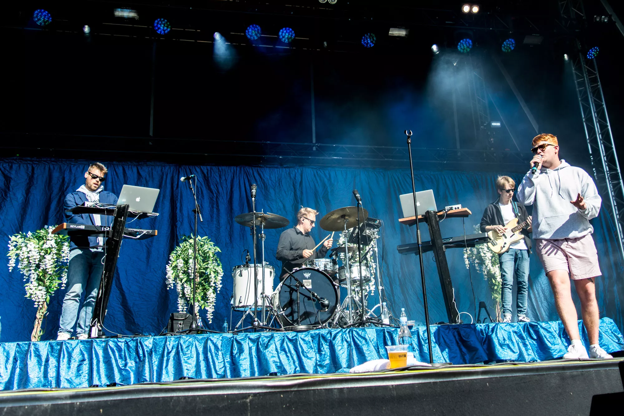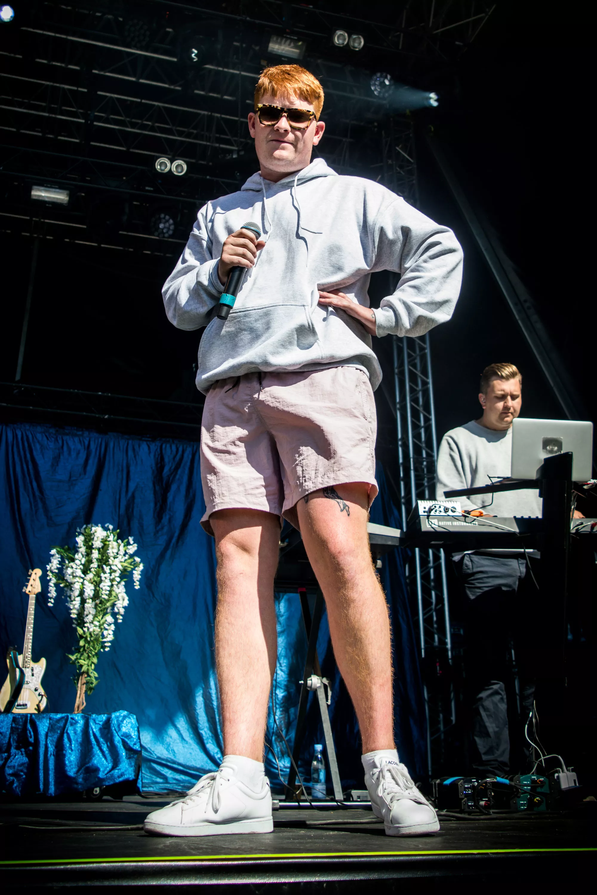 Efter et hektisk regnvejr natten til lørdag står solen højt på himlen, da Karl William træder ind på scenen lørdag klokken 15.30, iført solbriller og shorts, men uden solcreme, som han uden held efterspørger hos publikum. Den aarhusianske
