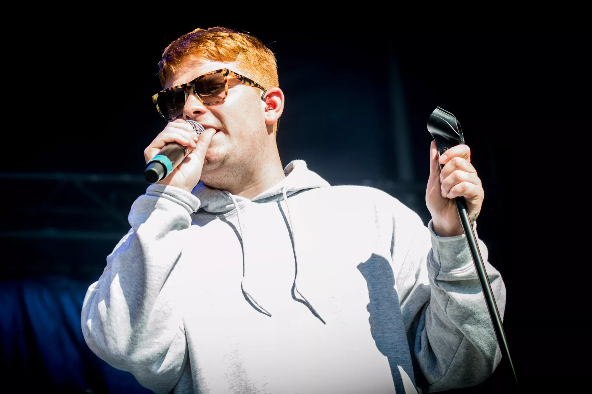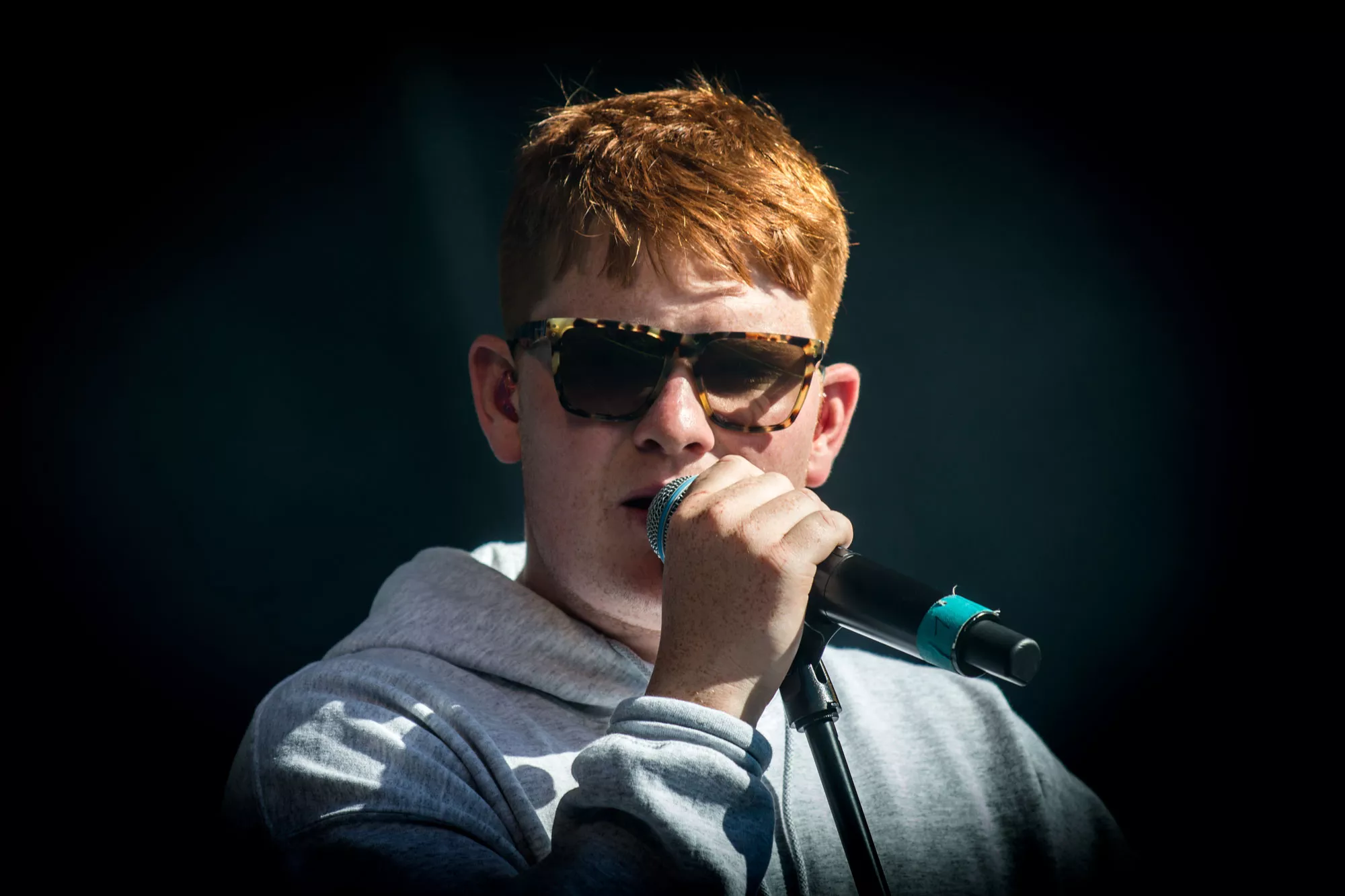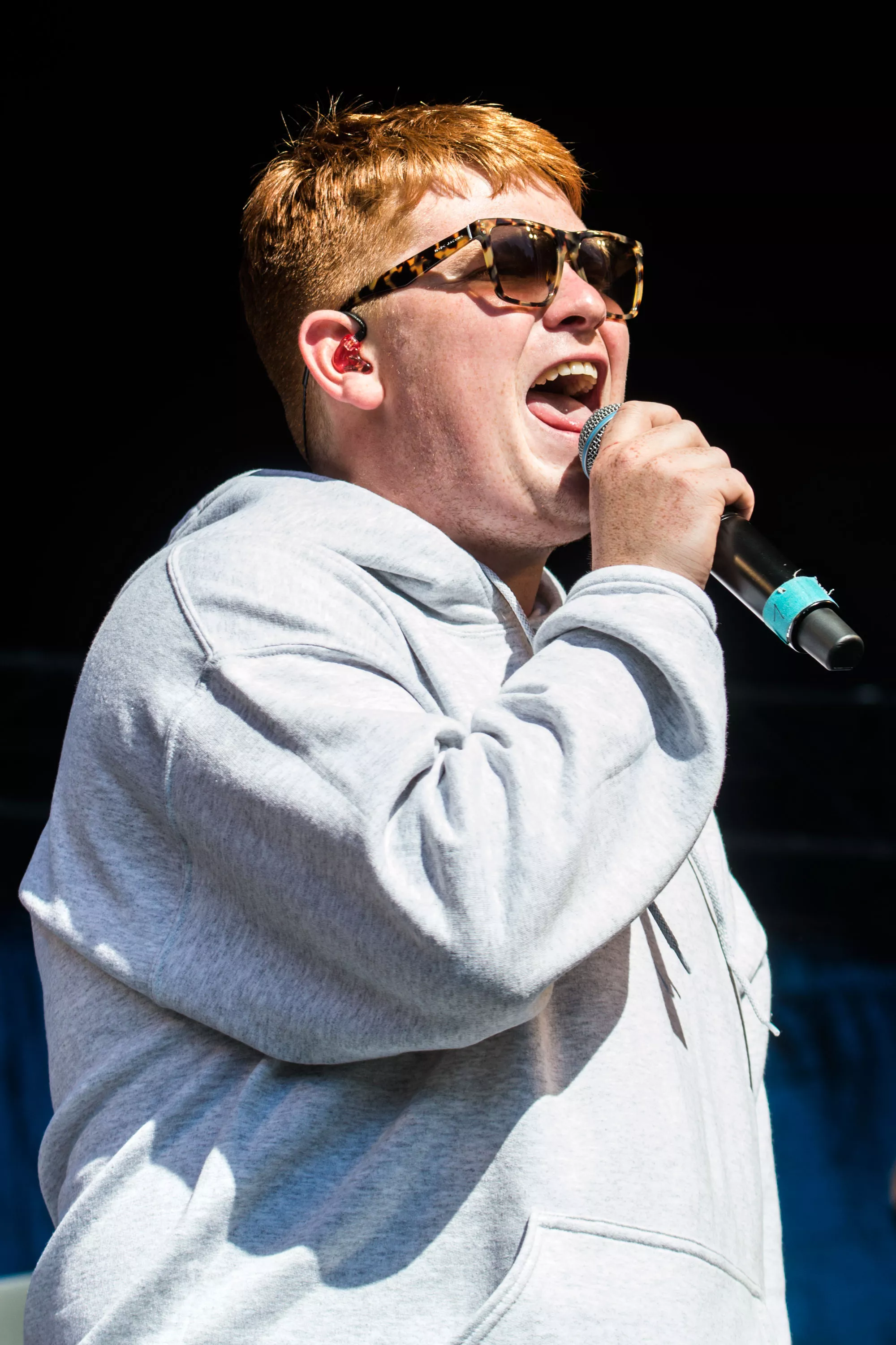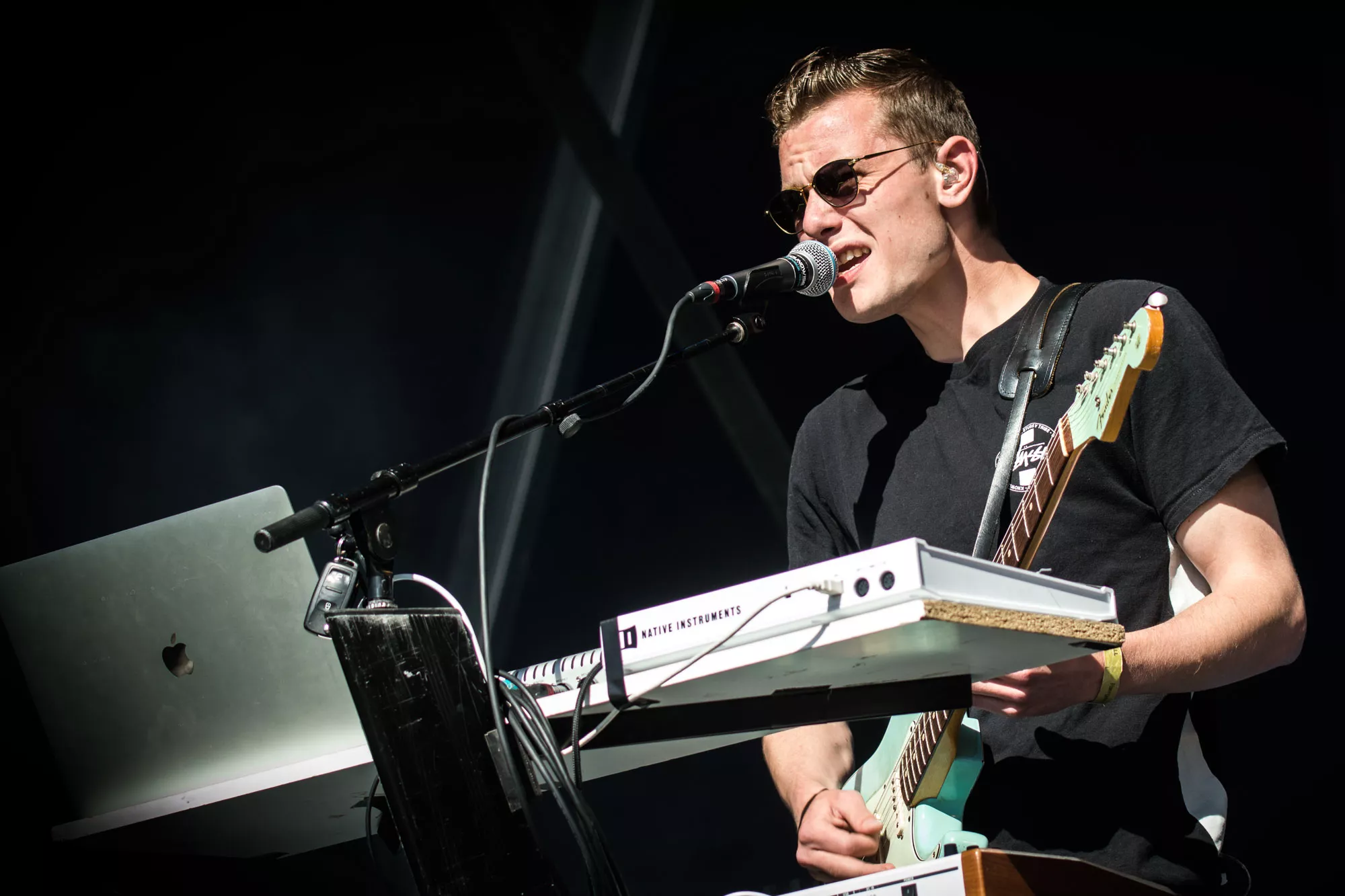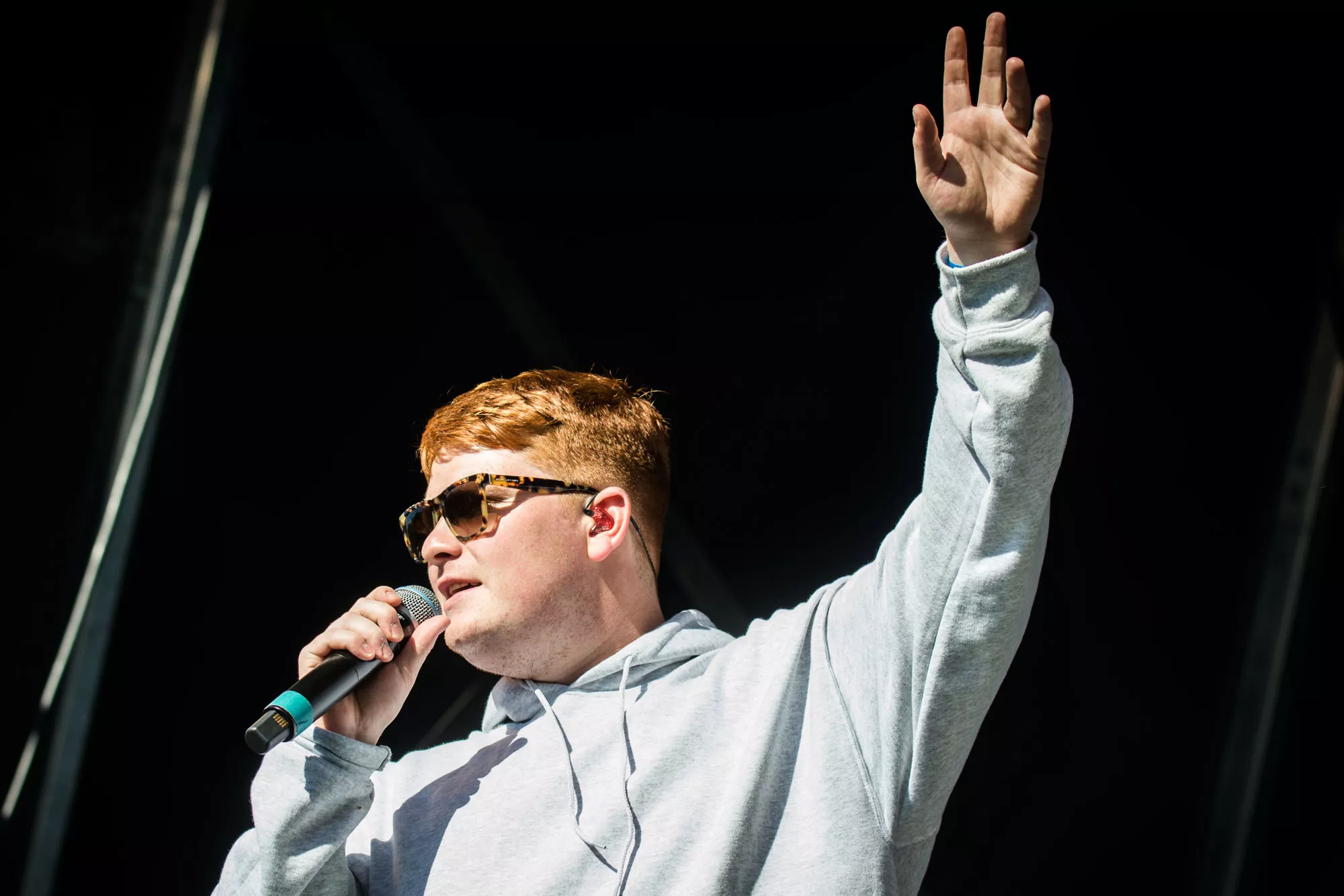 Efter et hektisk regnvejr natten til lørdag står solen højt på himlen, da Karl William træder ind på scenen lørdag klokken 15.30, iført solbriller og shorts, men uden solcreme, som han uden held efterspørger hos publikum. Den aarhusianske