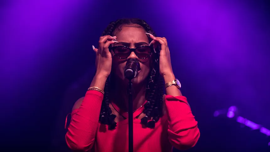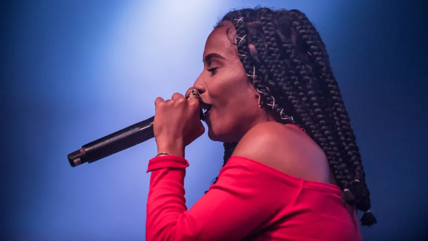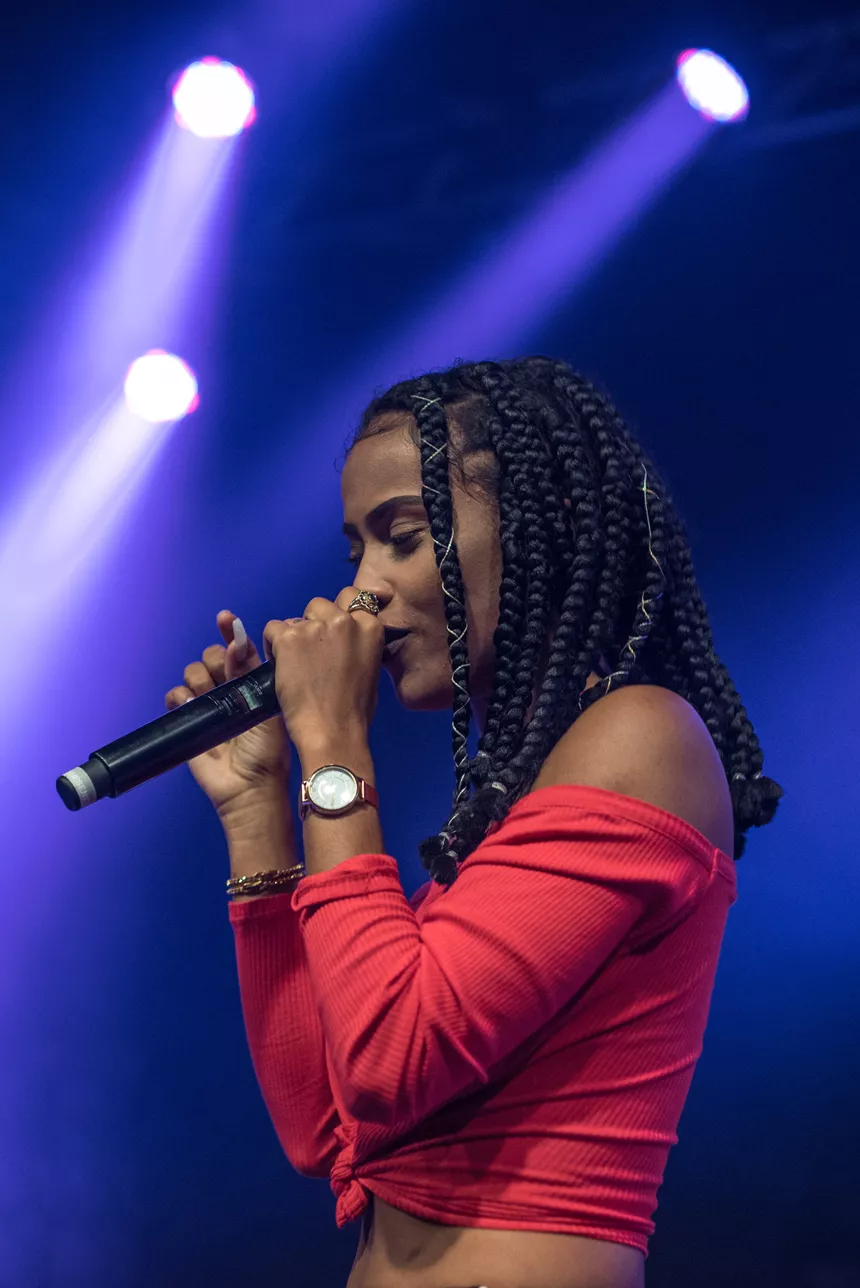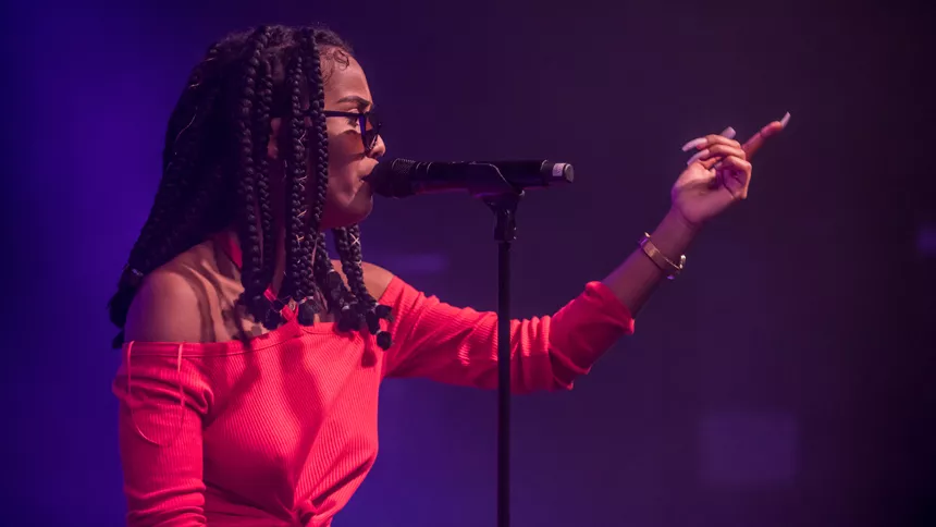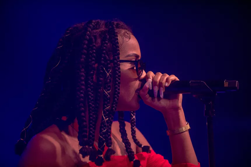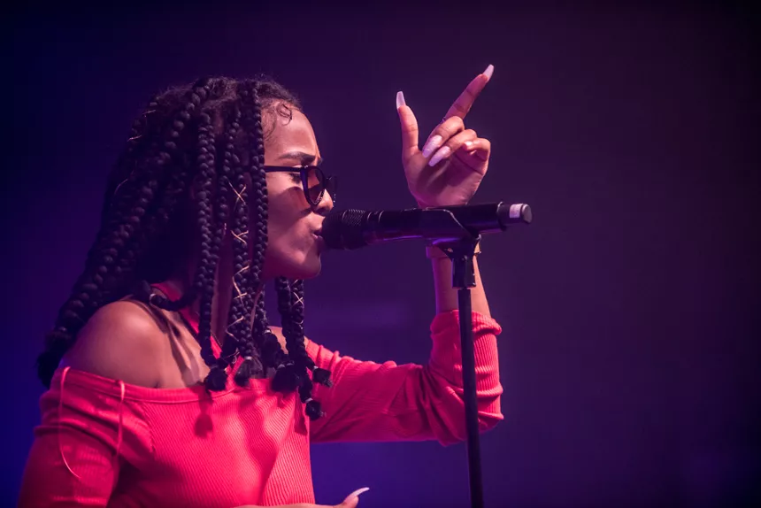 Det er en måske kommende verdensstjerne, der står på scenen denne sludprægede decemberaften på Atlas. Den 21-årige engelske soul/r&b/hiphop-sangerinde/rapper IAMDDB er i hvert fald spået et stort gennembrud af medier som BBC, Mixmag og Noisey, ligesom