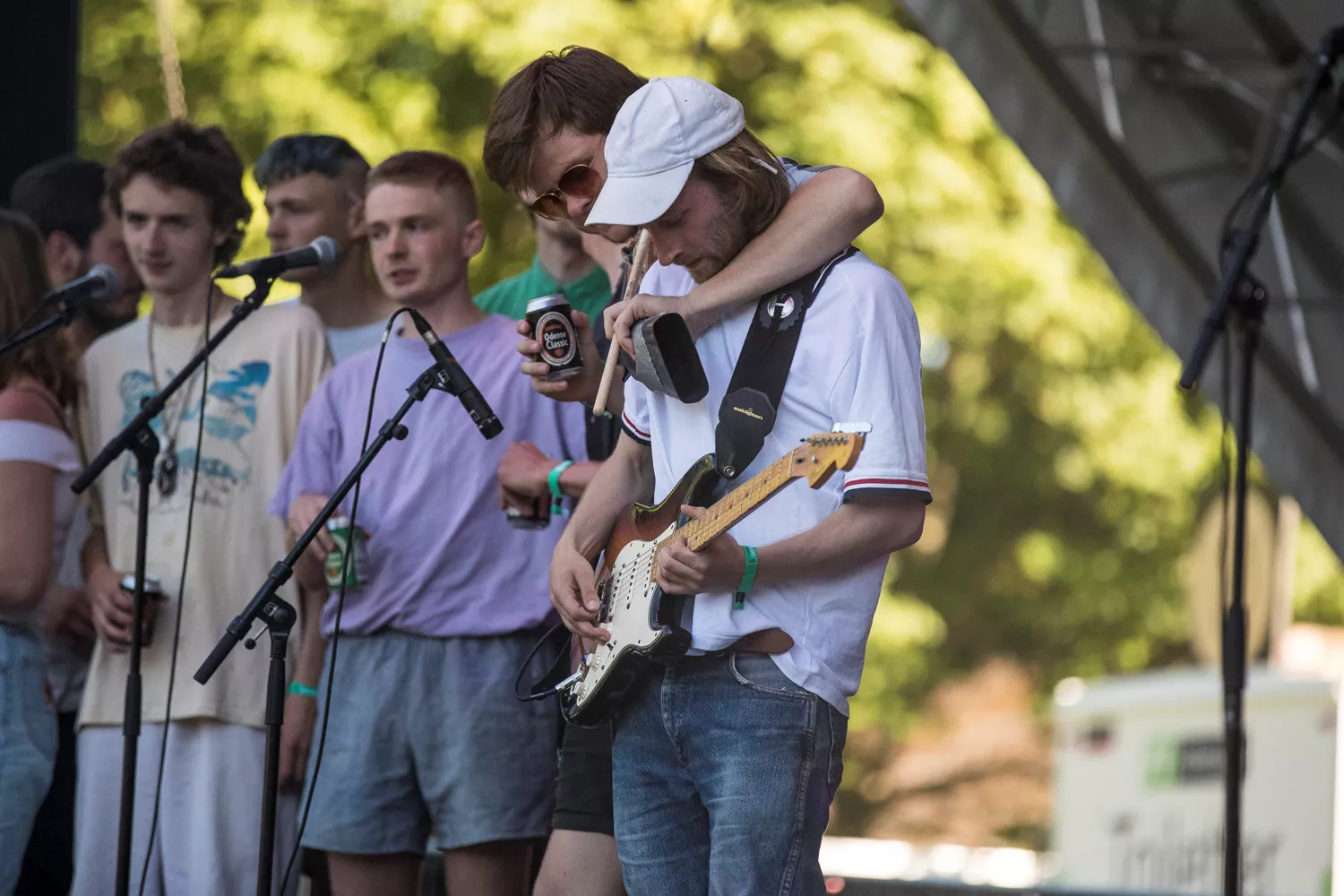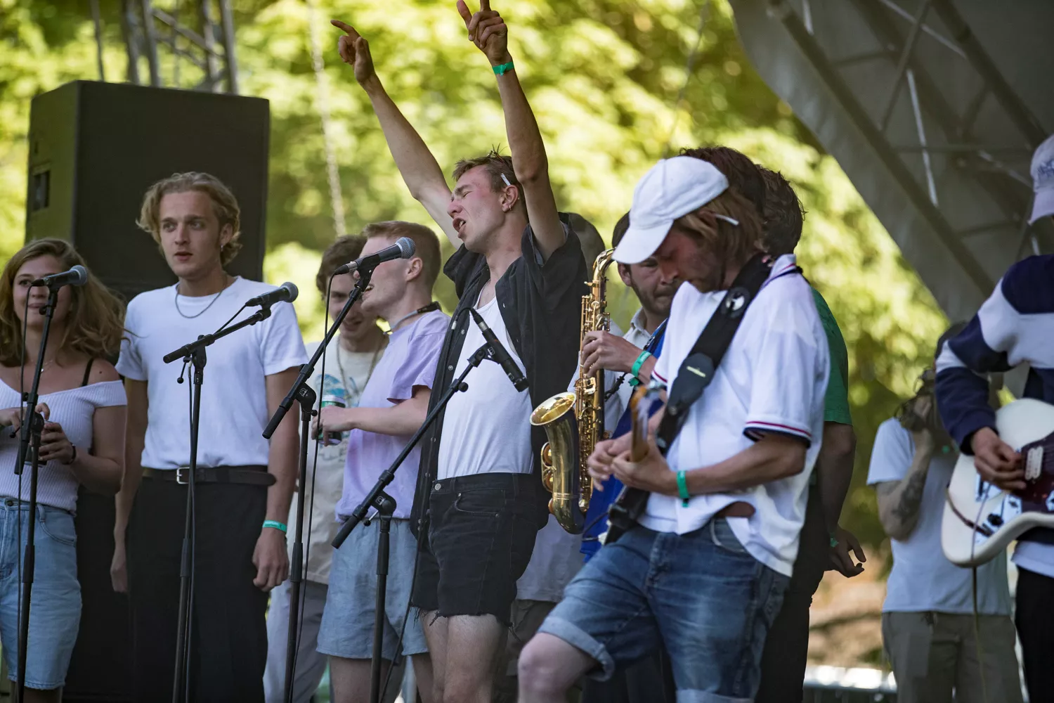 Helt oppe tæt på er der en overvældende glæde og en spillelyst, der kan skæres i tykke skiver. Det vælter ud med unge mennesker iklædt shirts stoppet i shorts på Heartlands lille scene. De rundt regnet 20 mennesker findes i mere eller mindre faste konstellationer