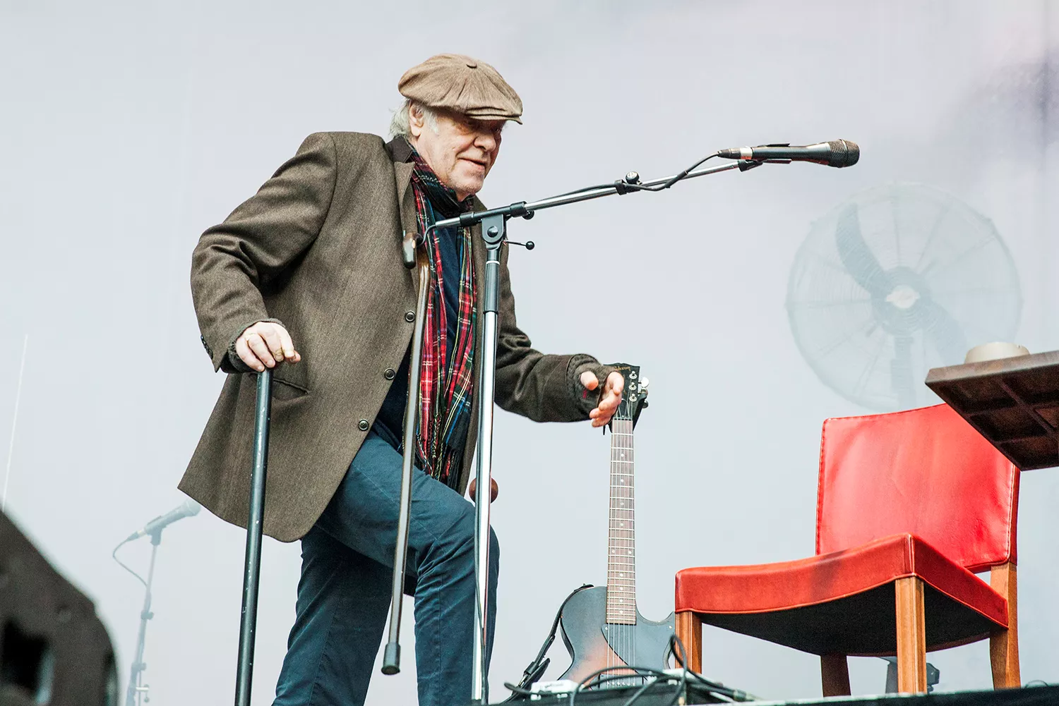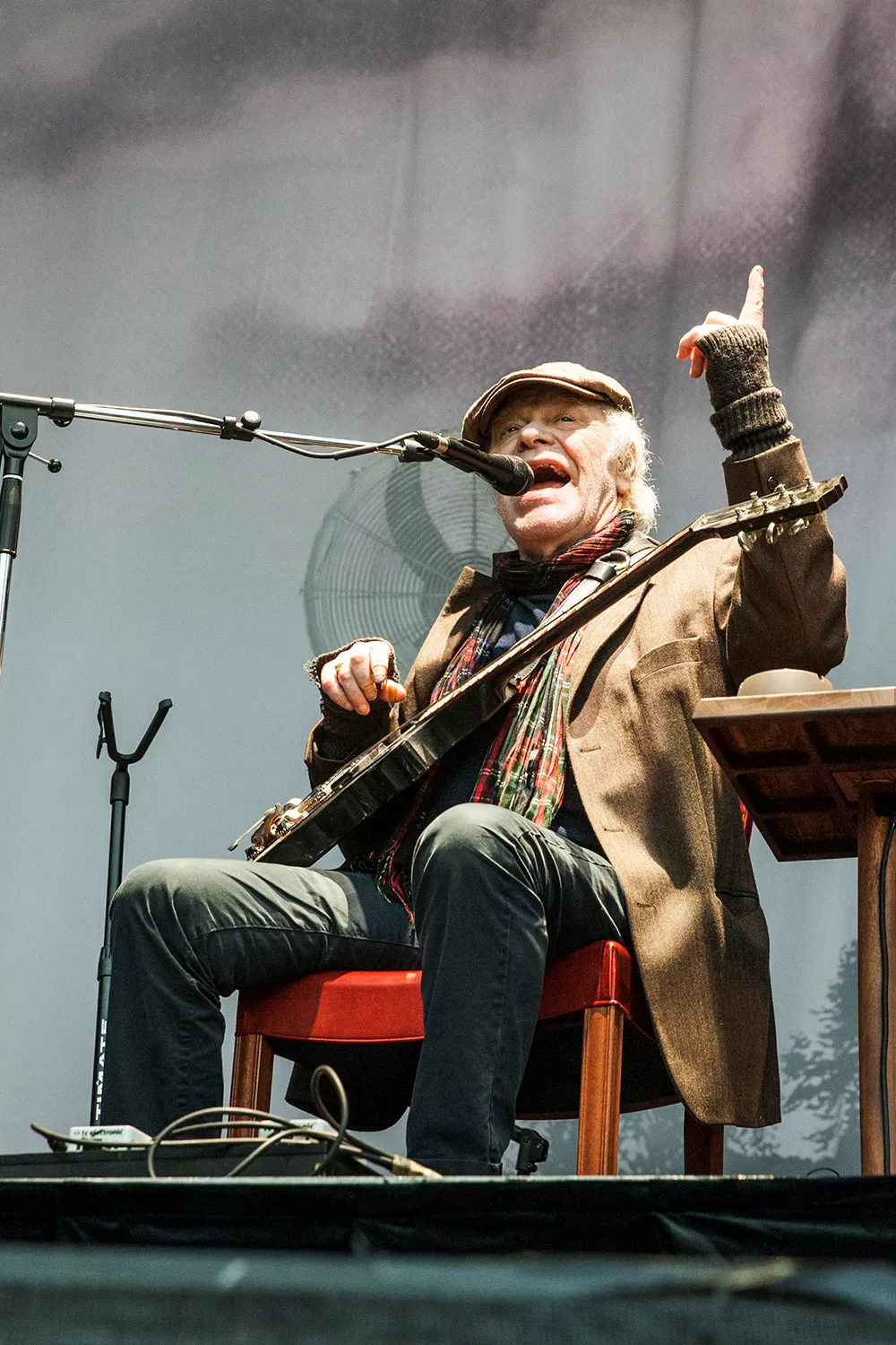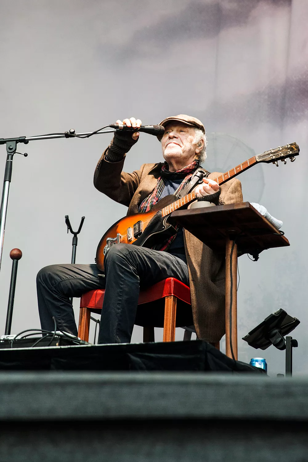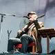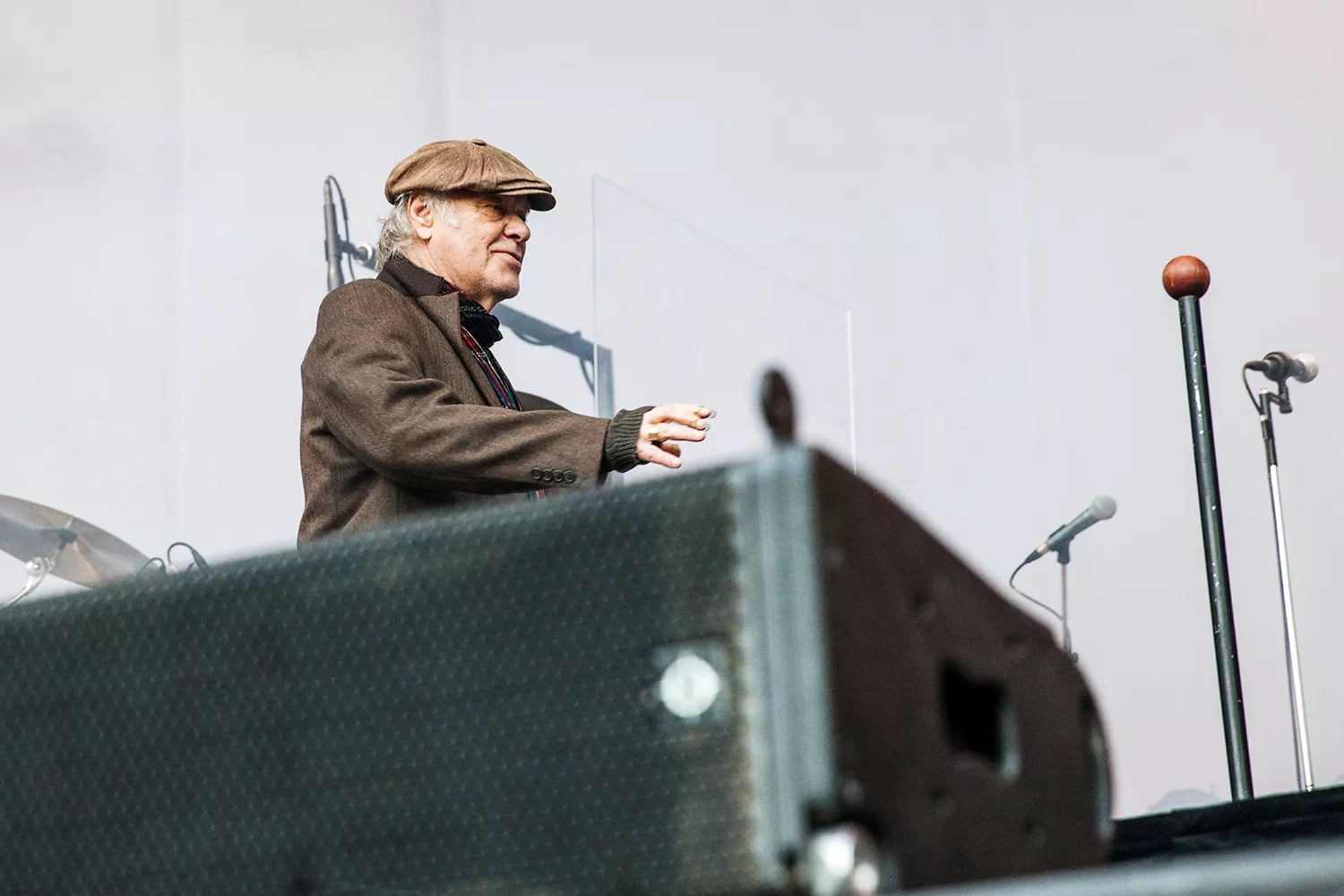 Med daggamle skægstubbe og et veloplagt grin slentrer Kim Larsen ind på scenen, og vi fornemmer, at humøret er højt.