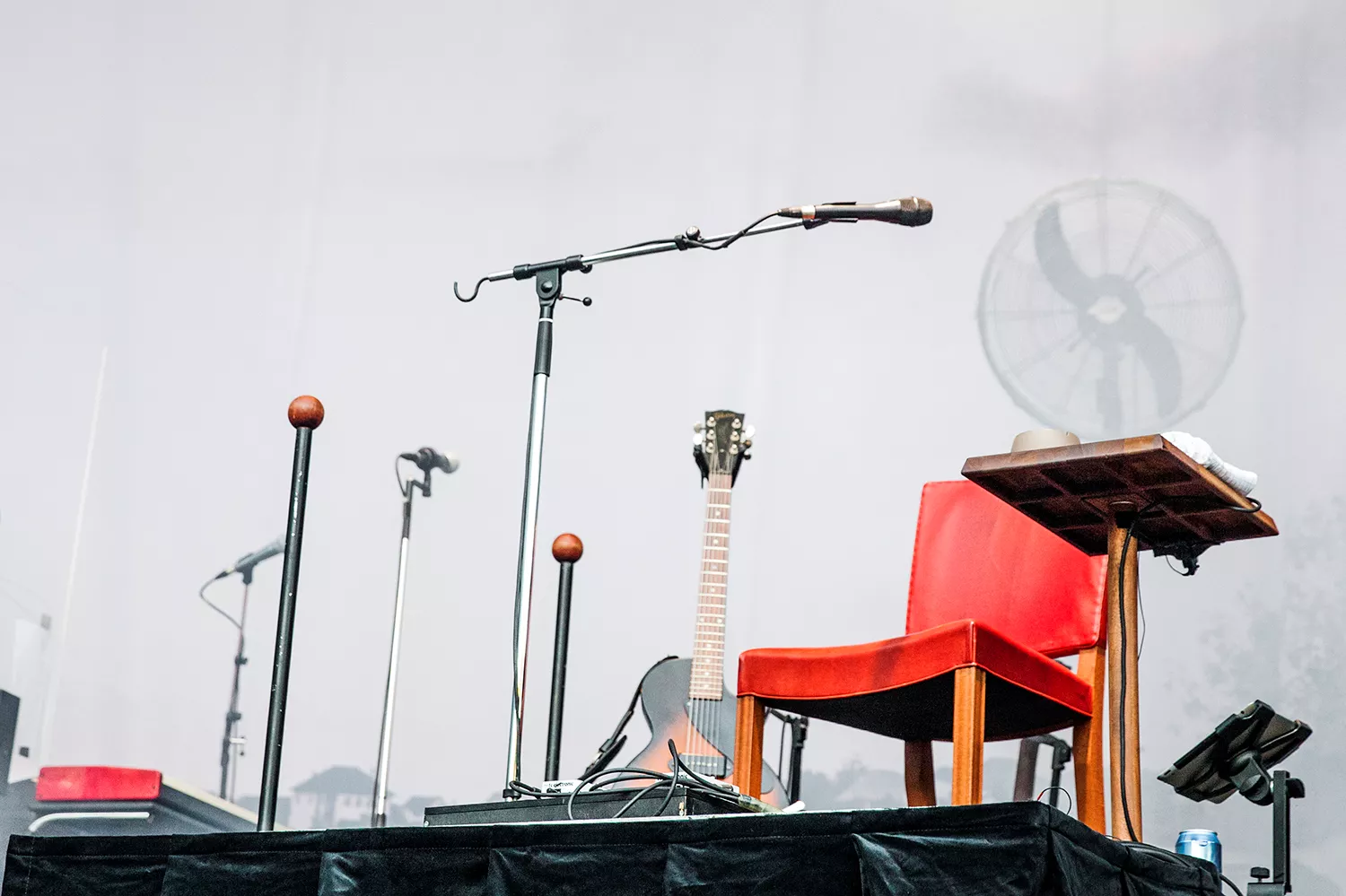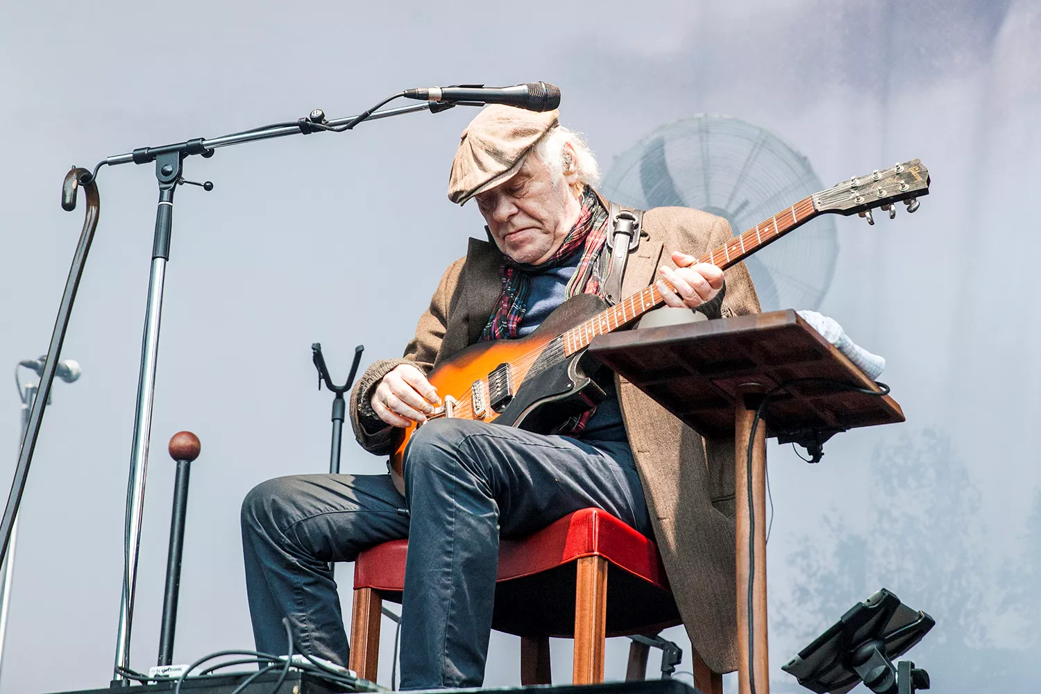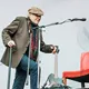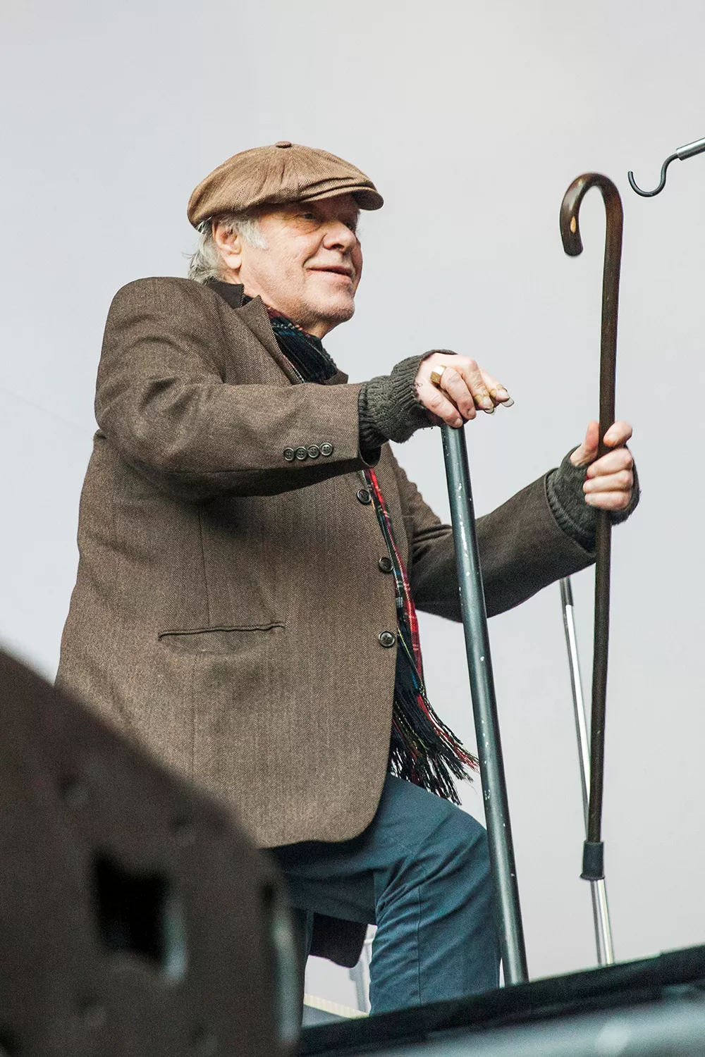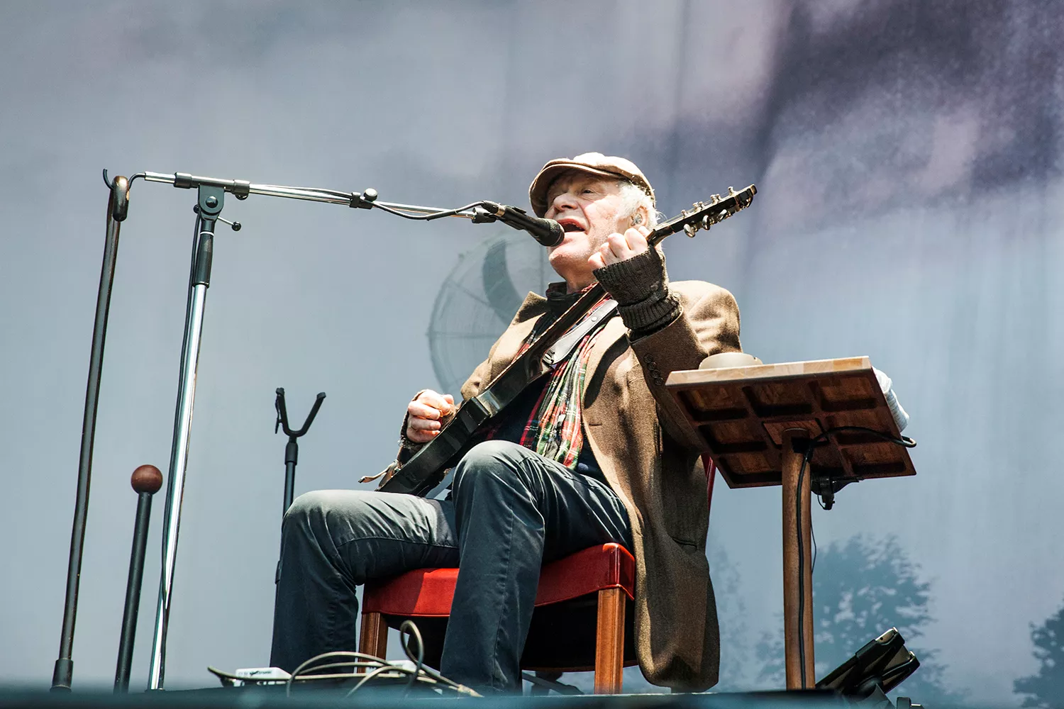 Med daggamle skægstubbe og et veloplagt grin slentrer Kim Larsen ind på scenen, og vi fornemmer, at humøret er højt.