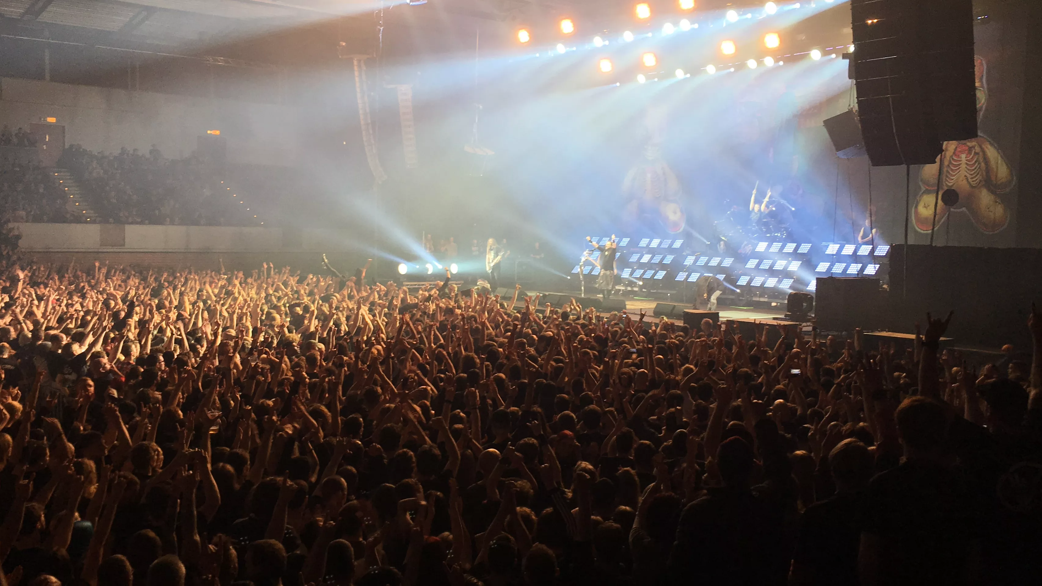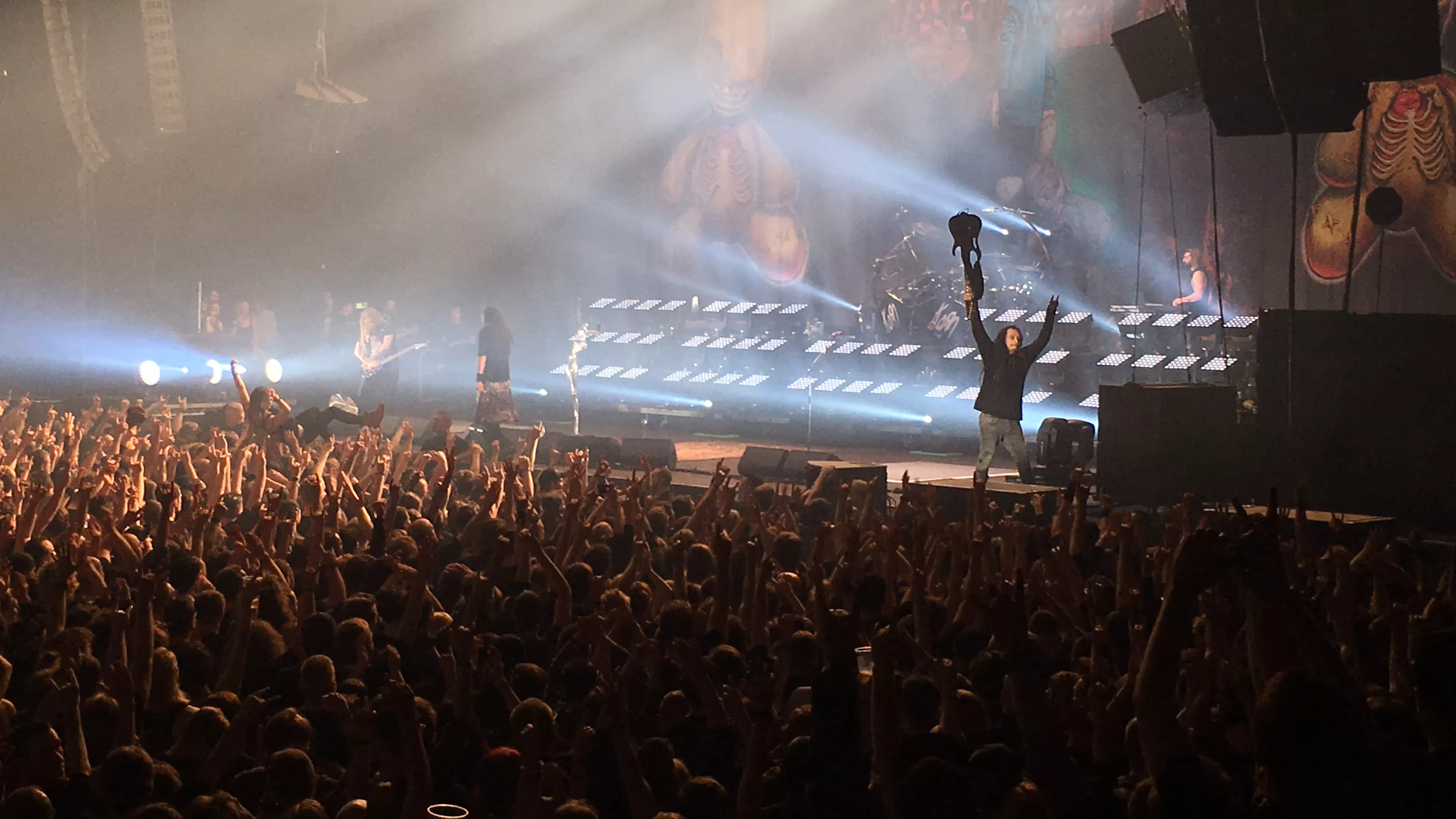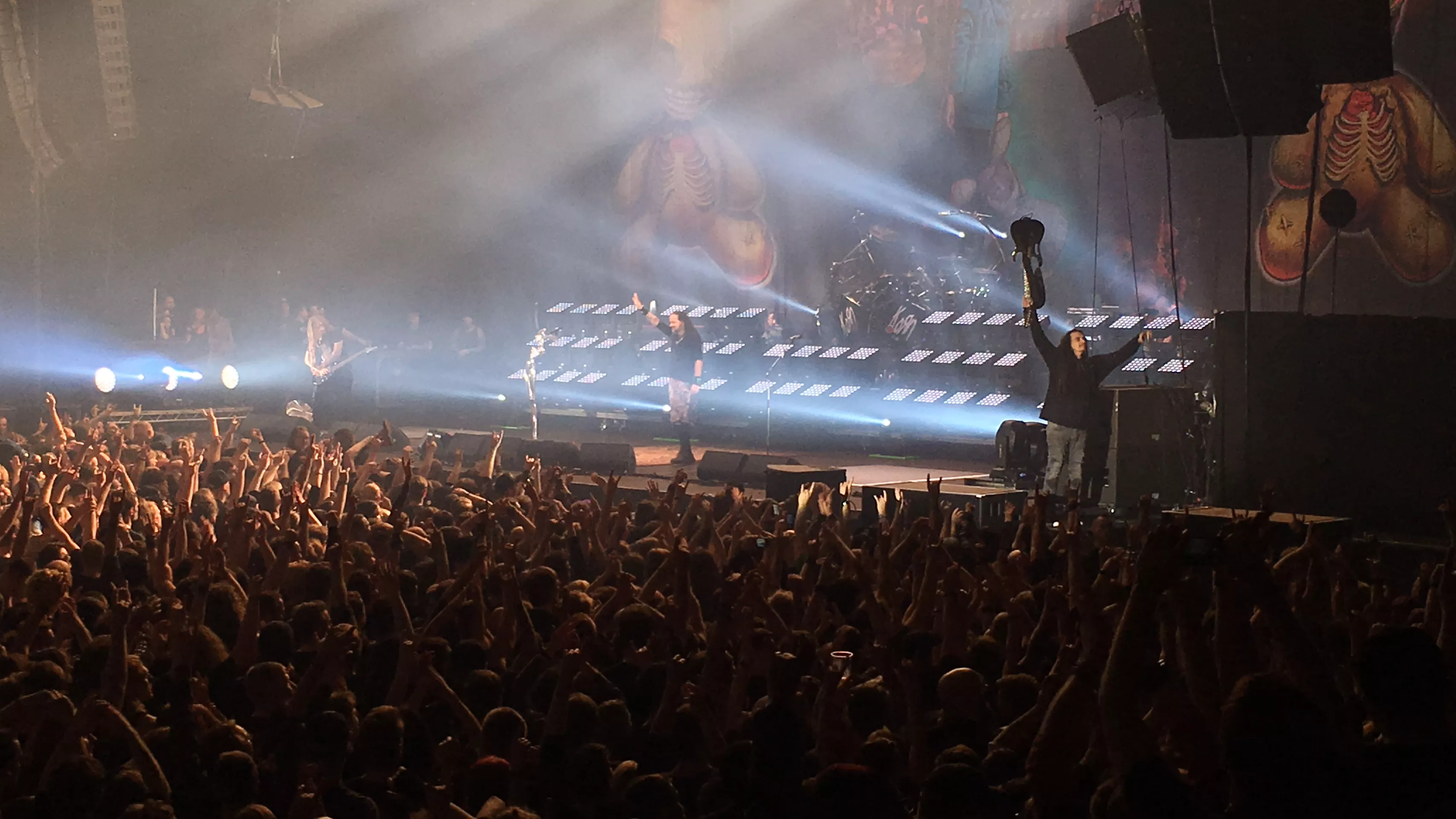 Klokken er 22.10. Lysene bliver slukket og introen til Korns optræden på Alsterdorfer Sporthalle begynder. Koncerten er udsolgt, og de 8.000 fremmødte tager godt imod bandet fra Bakersfield denne mandag aften. Inden Korn så vi to rigtig gode sæt af opvarmningsbandsene Hellyeah og Heaven Shall Burn.
