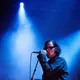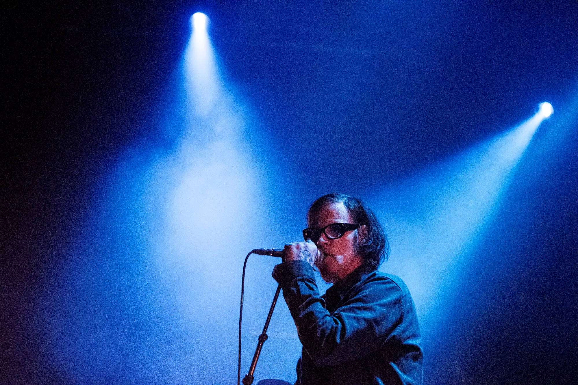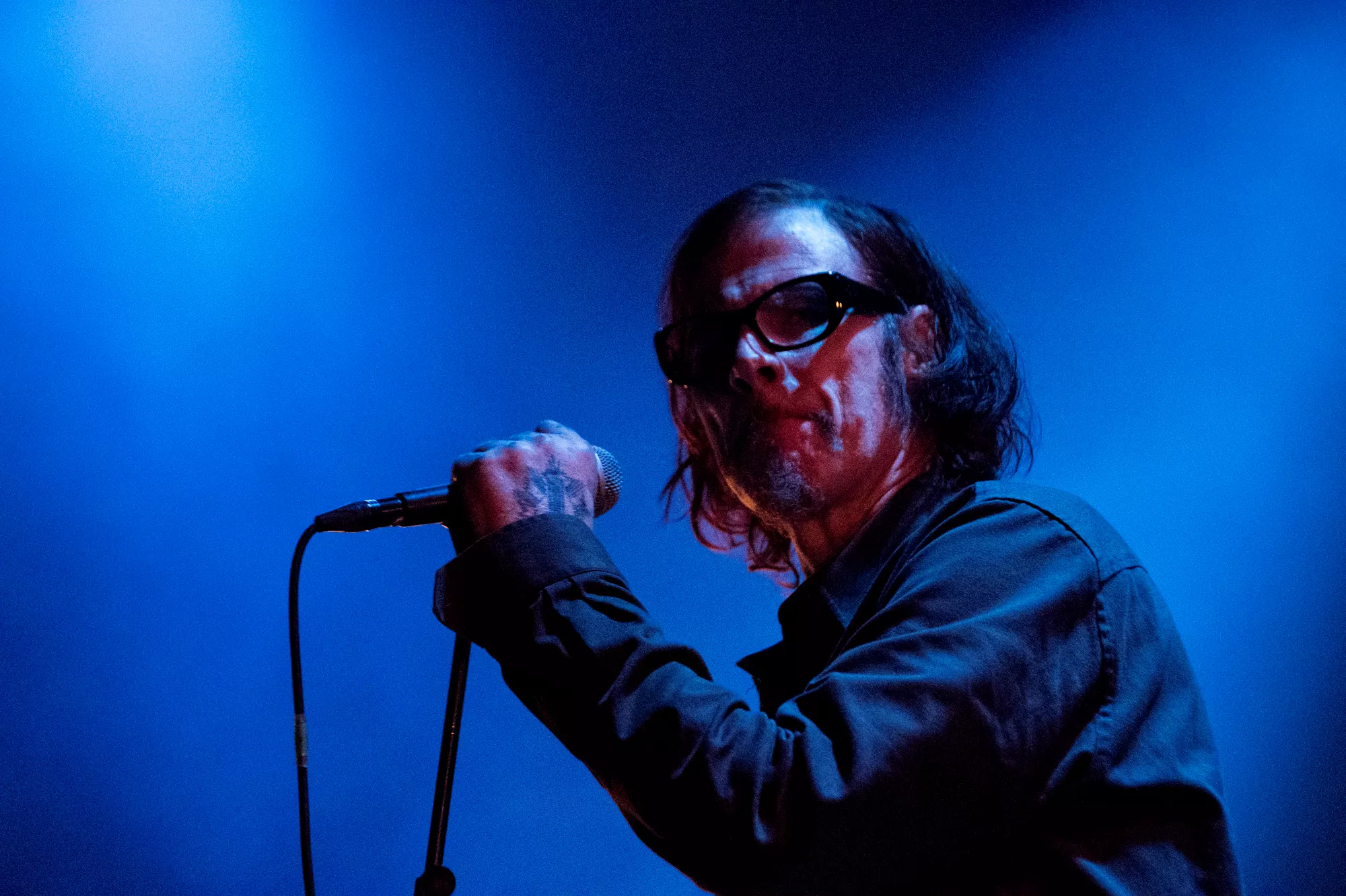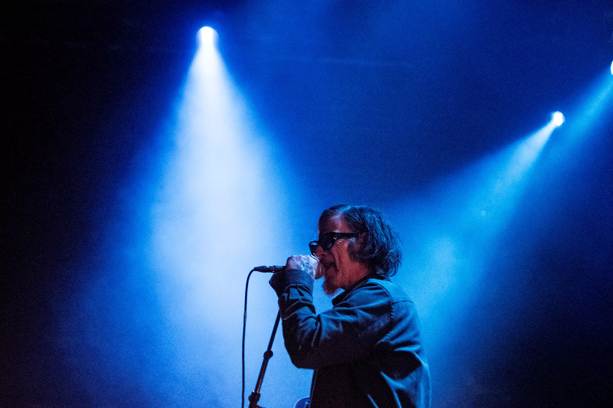 Det blodrøde scenelys er afdæmpet, og Mark Lanegan er nærmest som en silhuet imellem sit medbragte band og deres instrumenter. Stemmen er i centrum – det er det eneste, vi sådan rigtigt lægger mærke til. Han griber sit mikrofonstativ, som var det roden til