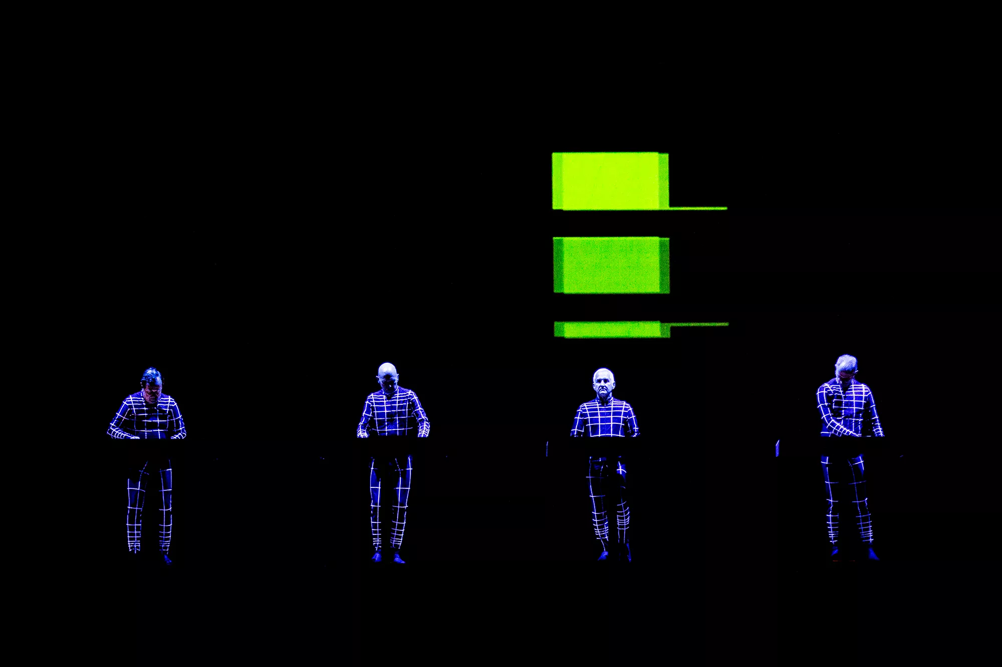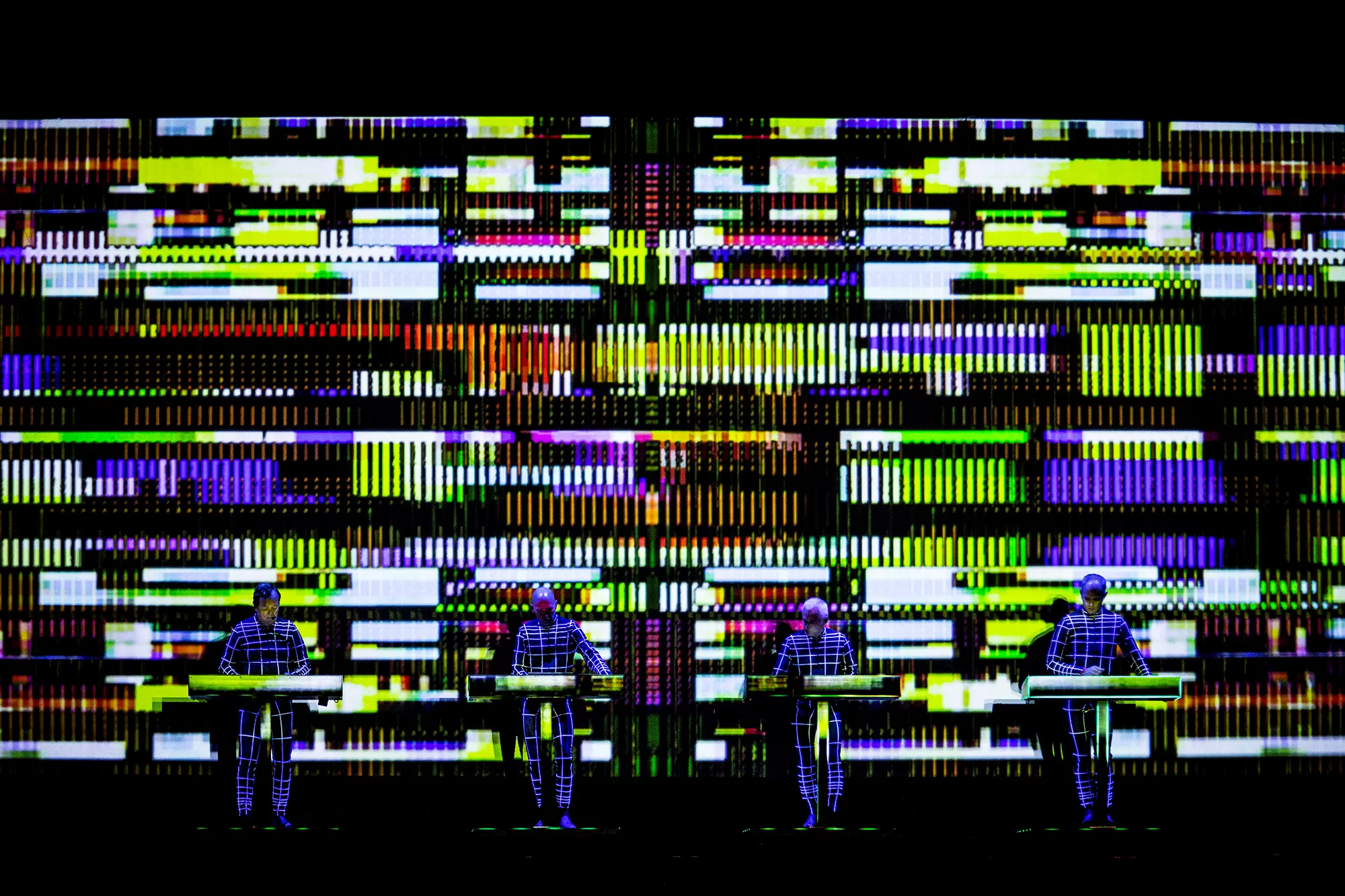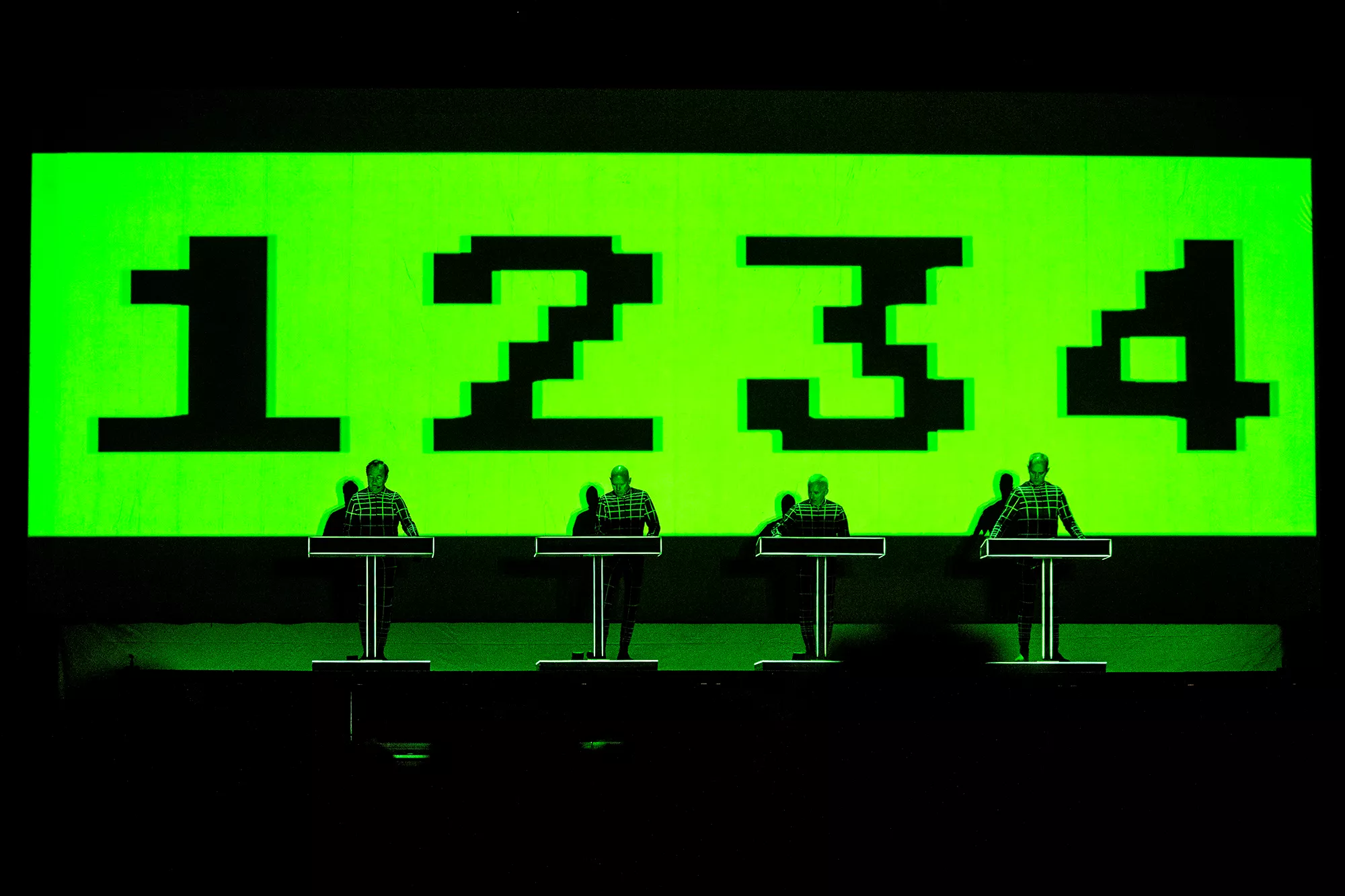 Efter en lang dag med både blæst og regn, hvilket blandt andet undervejs resulterede i at et af festivalens hovednavne, Einstürzende Neubauten, måtte afslutte deres koncert tidligere end forventet, stod landsmændene fra Kraftwerk klar temmelig præcist kl. 22:30,