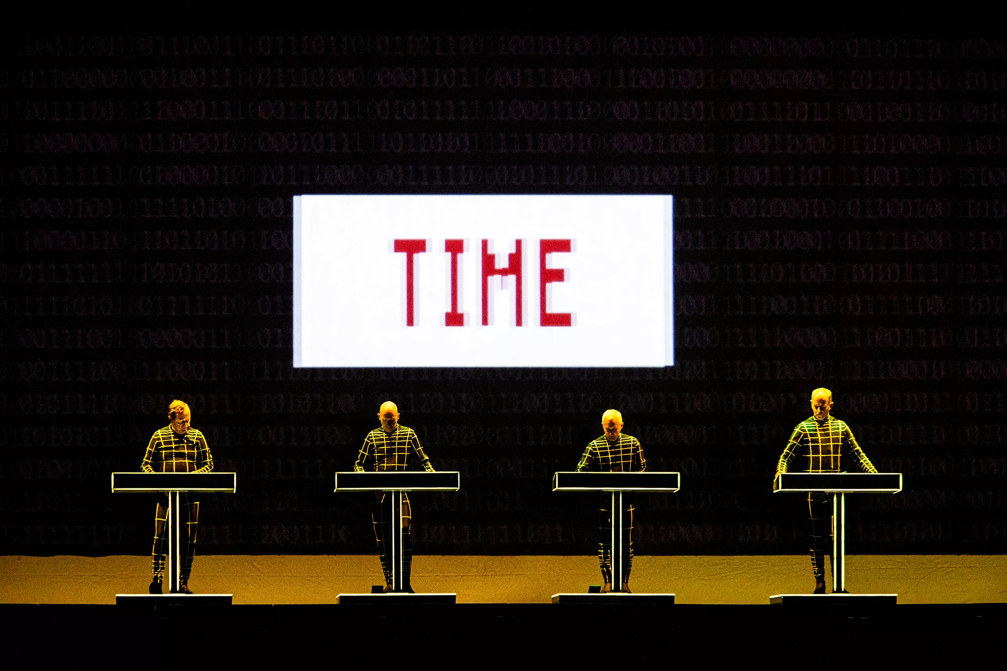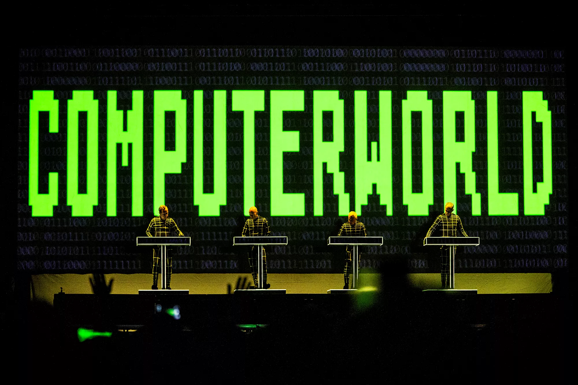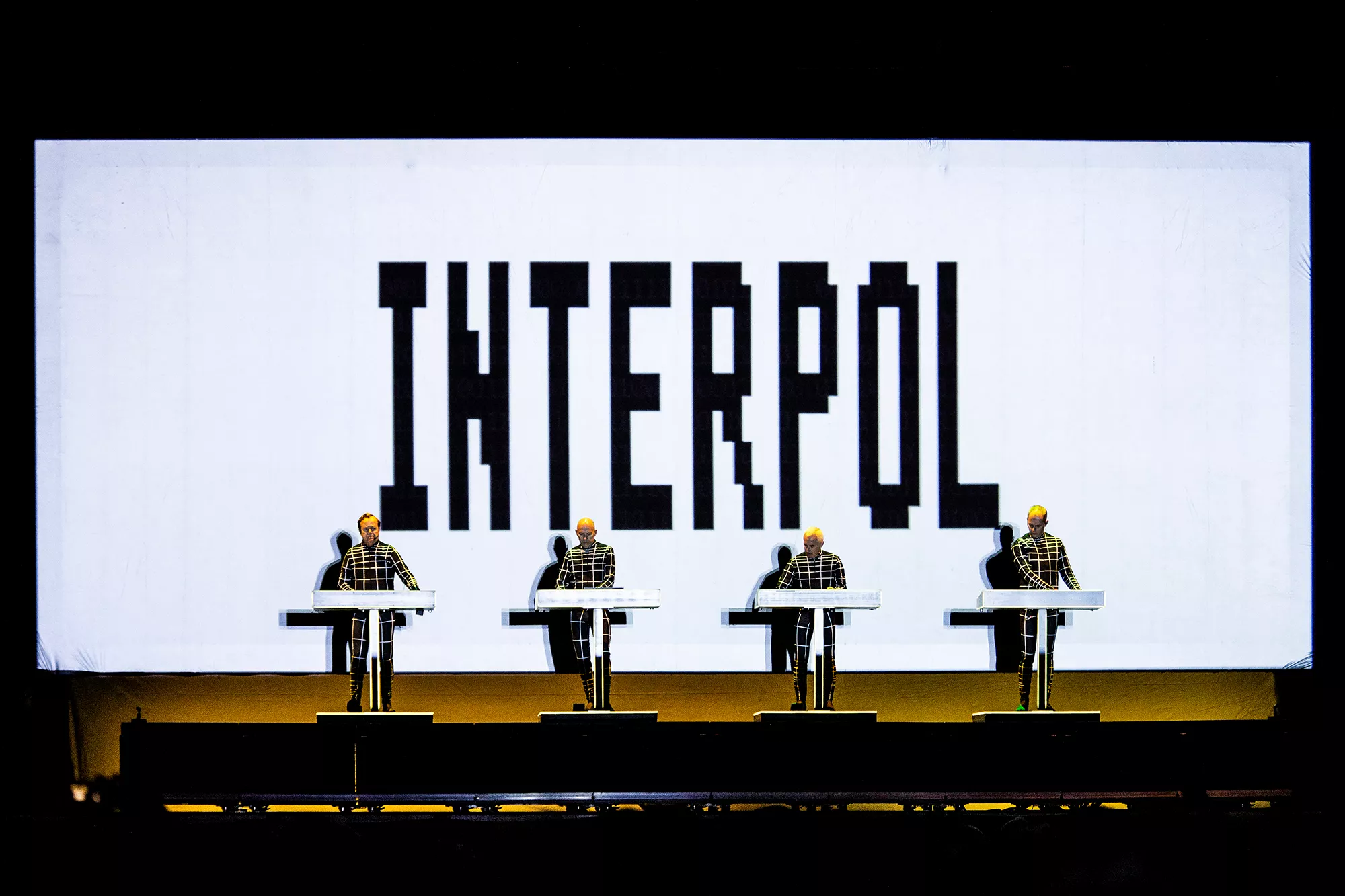 Efter en lang dag med både blæst og regn, hvilket blandt andet undervejs resulterede i at et af festivalens hovednavne, Einstürzende Neubauten, måtte afslutte deres koncert tidligere end forventet, stod landsmændene fra Kraftwerk klar temmelig præcist kl. 22:30,