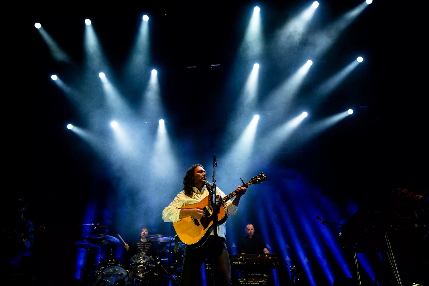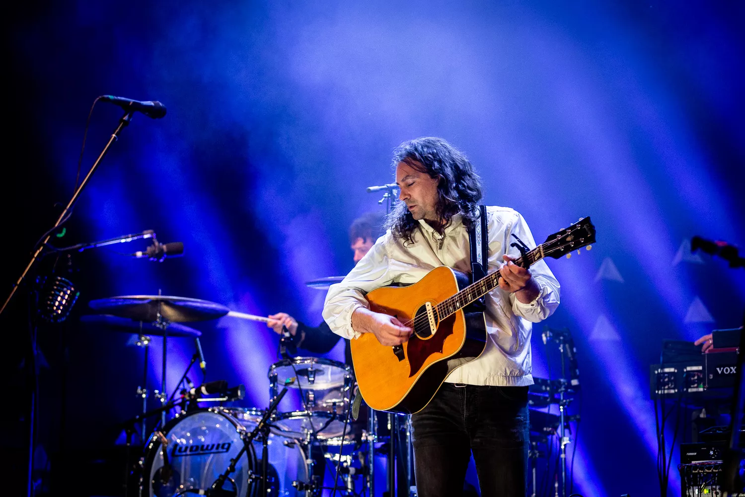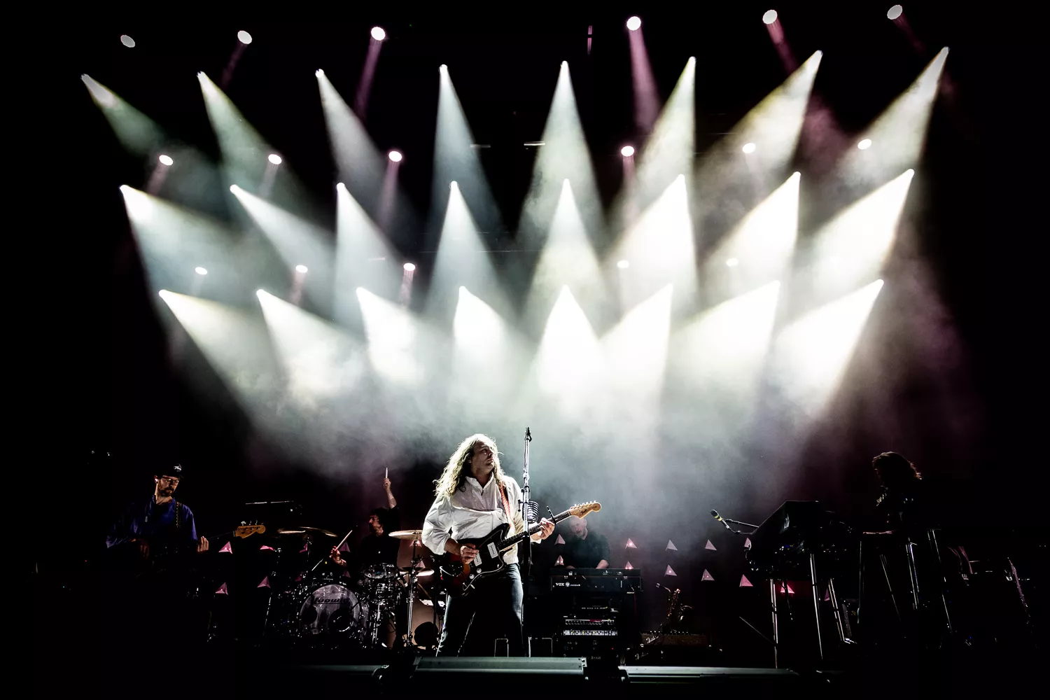 Langsomt stiger en let tåget røg op fra scenen, mens jeg og mange tusinde andre venter spændt på indierock-bandet fra Philadelphia, The War On Drugs. Som cirkusheste, der dufter savsmuld, pifter de forreste rækker, da scenelyset skifter fra hvid til lilla og senere til