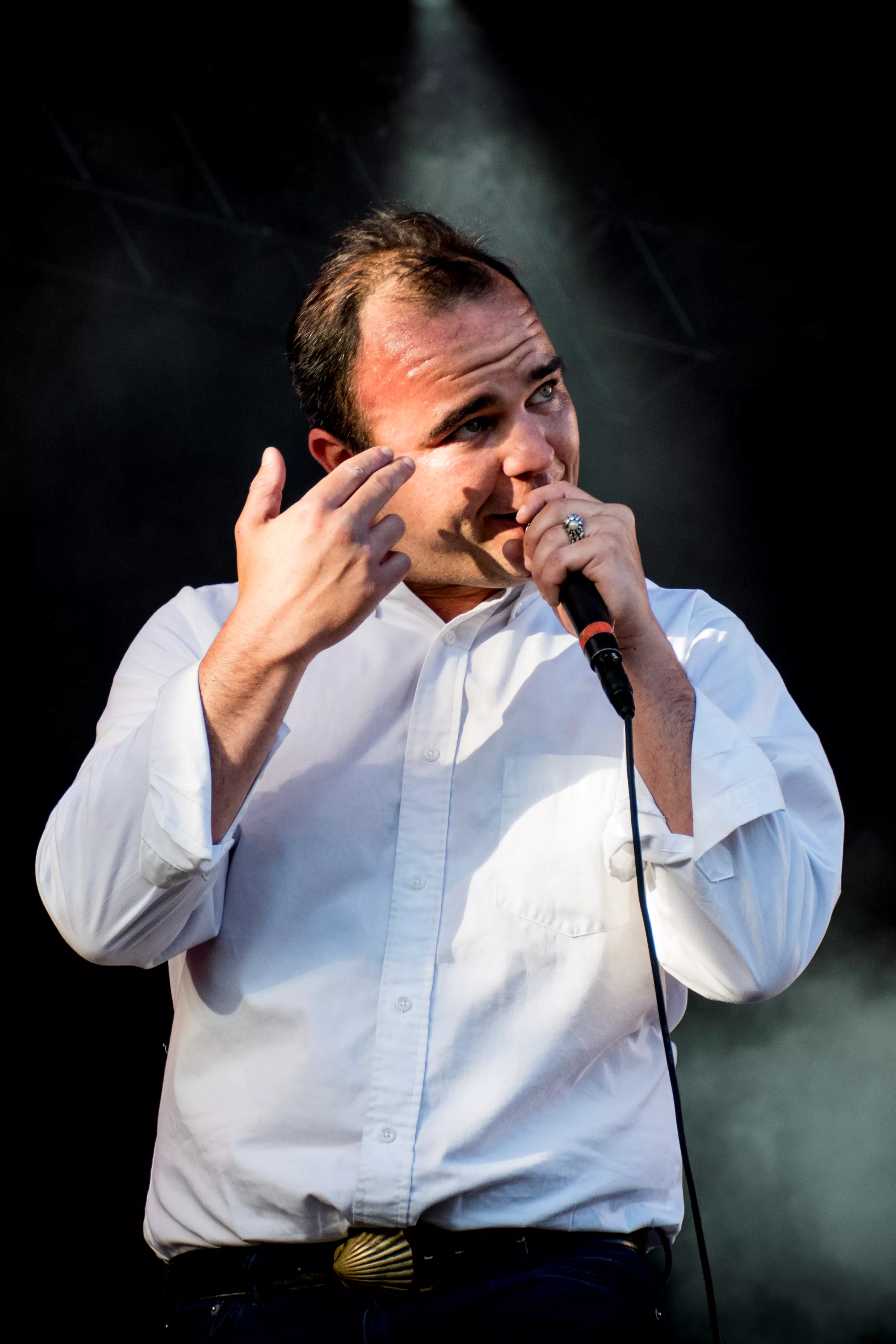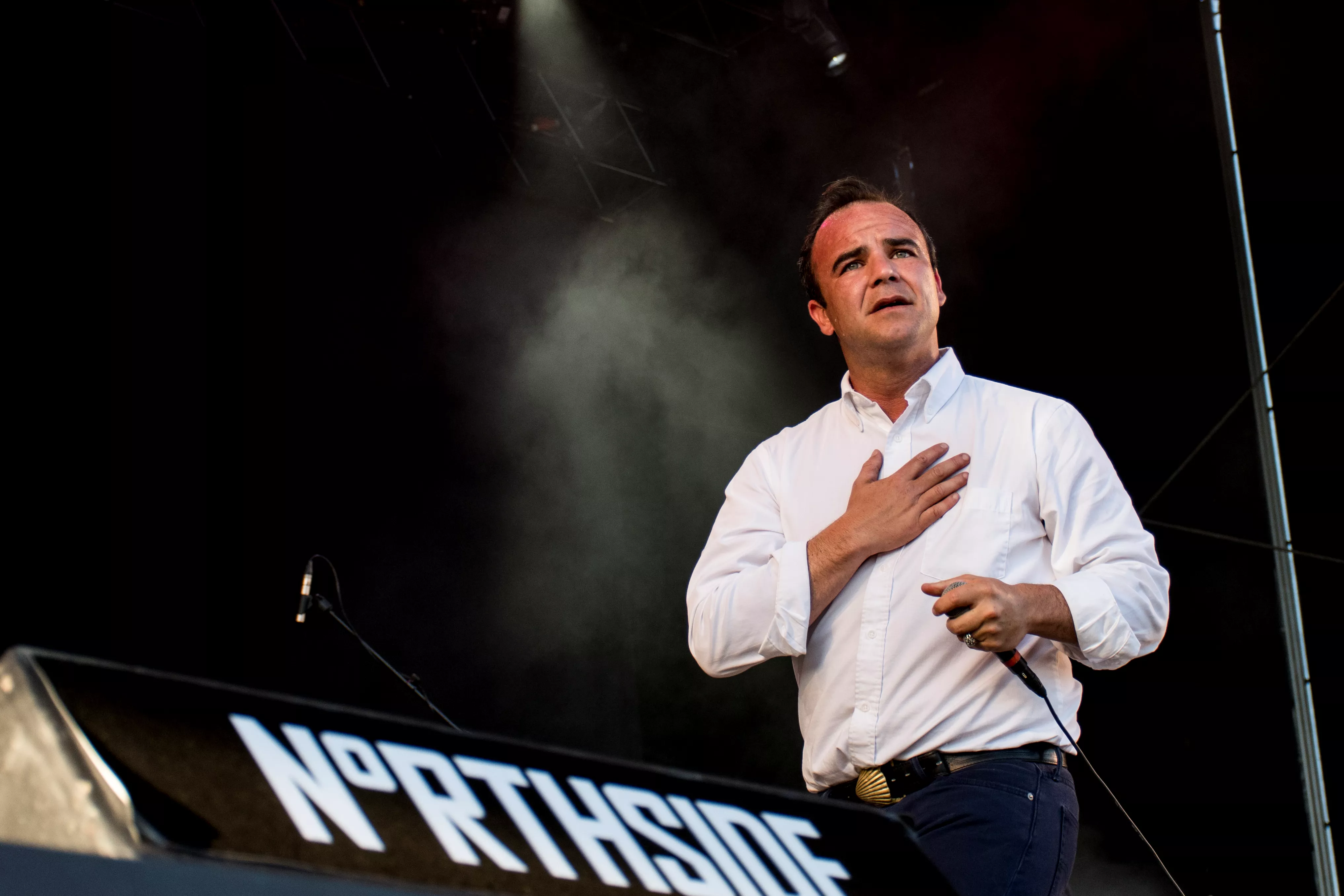 Den hvide skjorte er forslået og gennemvædet af sved. Samuel Herring er gået fra at ligne en revisor i nystrøget hvid skjorte til at være en inkarnation af sangene, han synger. Jeg mærker de følelser, han formidler igennem de 75 minutter, han står foran NorthSide. Jeg kan mærke inderligheden og den