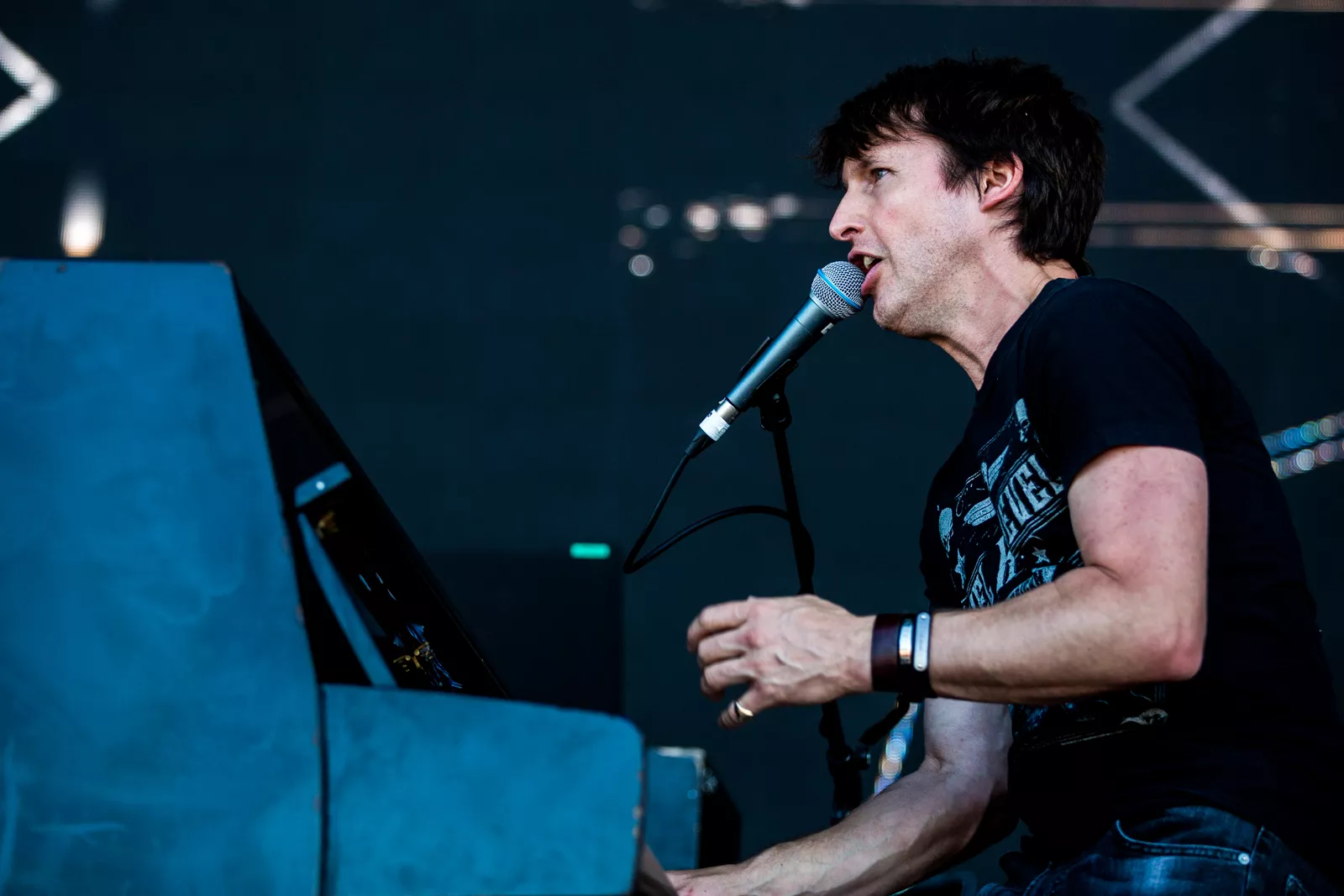Selvom han er syv måneder inde i sin verdensturné, var det en yderst veloplagt James Blunt, der torsdag aften kunne åbne den store scene på Jelling Musikfestival. Anderledes forholdt det sig dog med bandet, der tog den på rutinen.