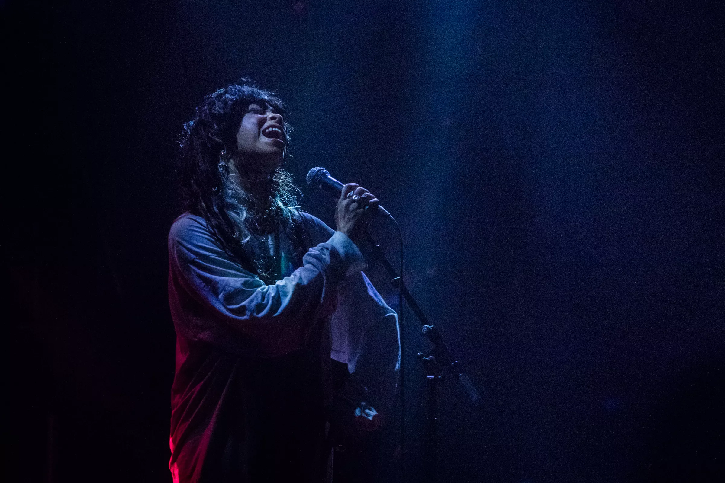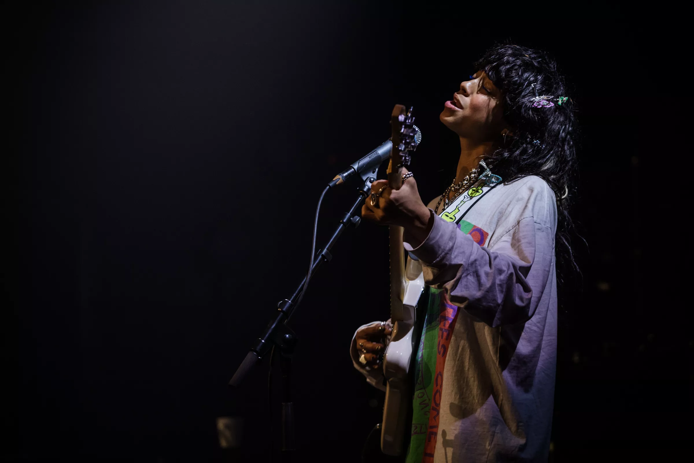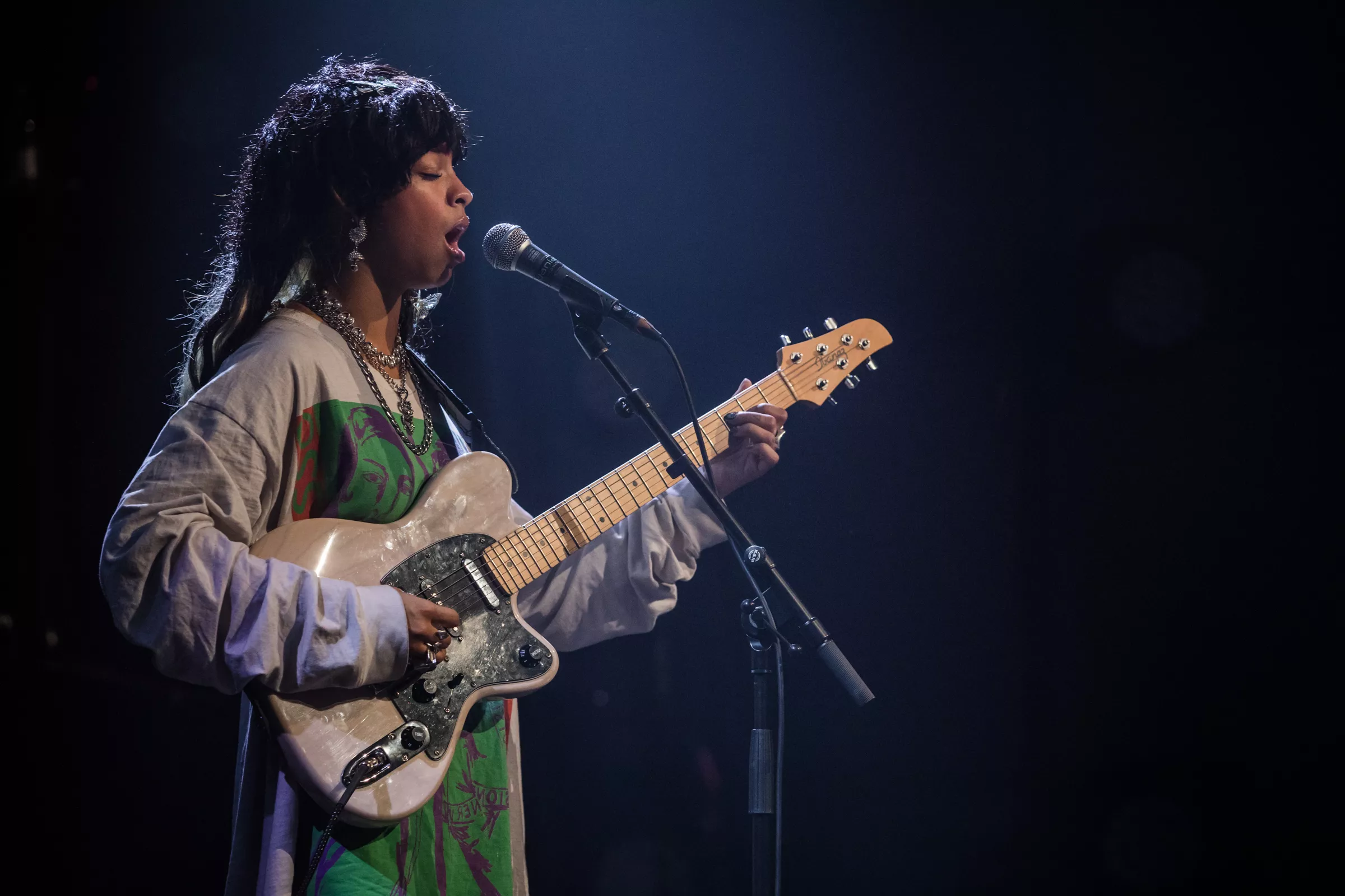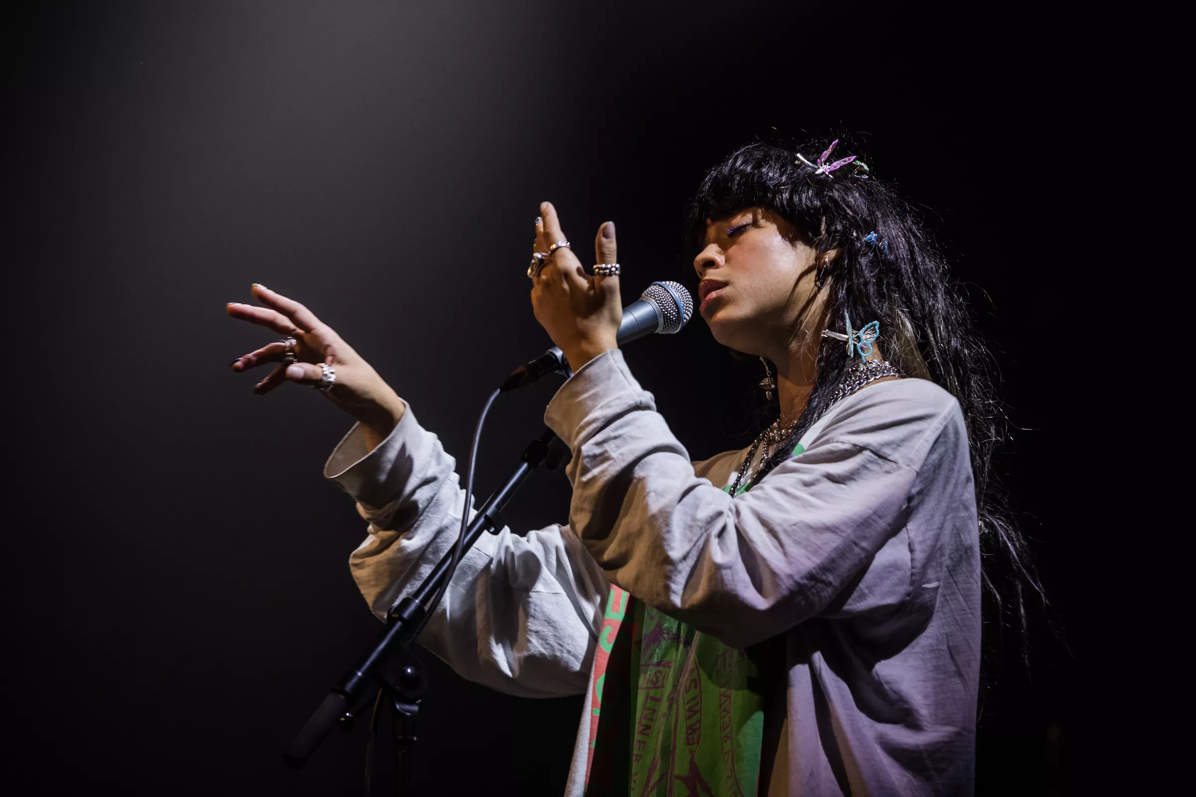 “You asked me what family is / And I think of family as community / I think of the spaces where you don't have to shrink yourself,” udtrykker transpersonen og aktivisten Janet Mock på “Family”, der spiller fra højtalerne ved siden af den kulsorte scene. Nummeret