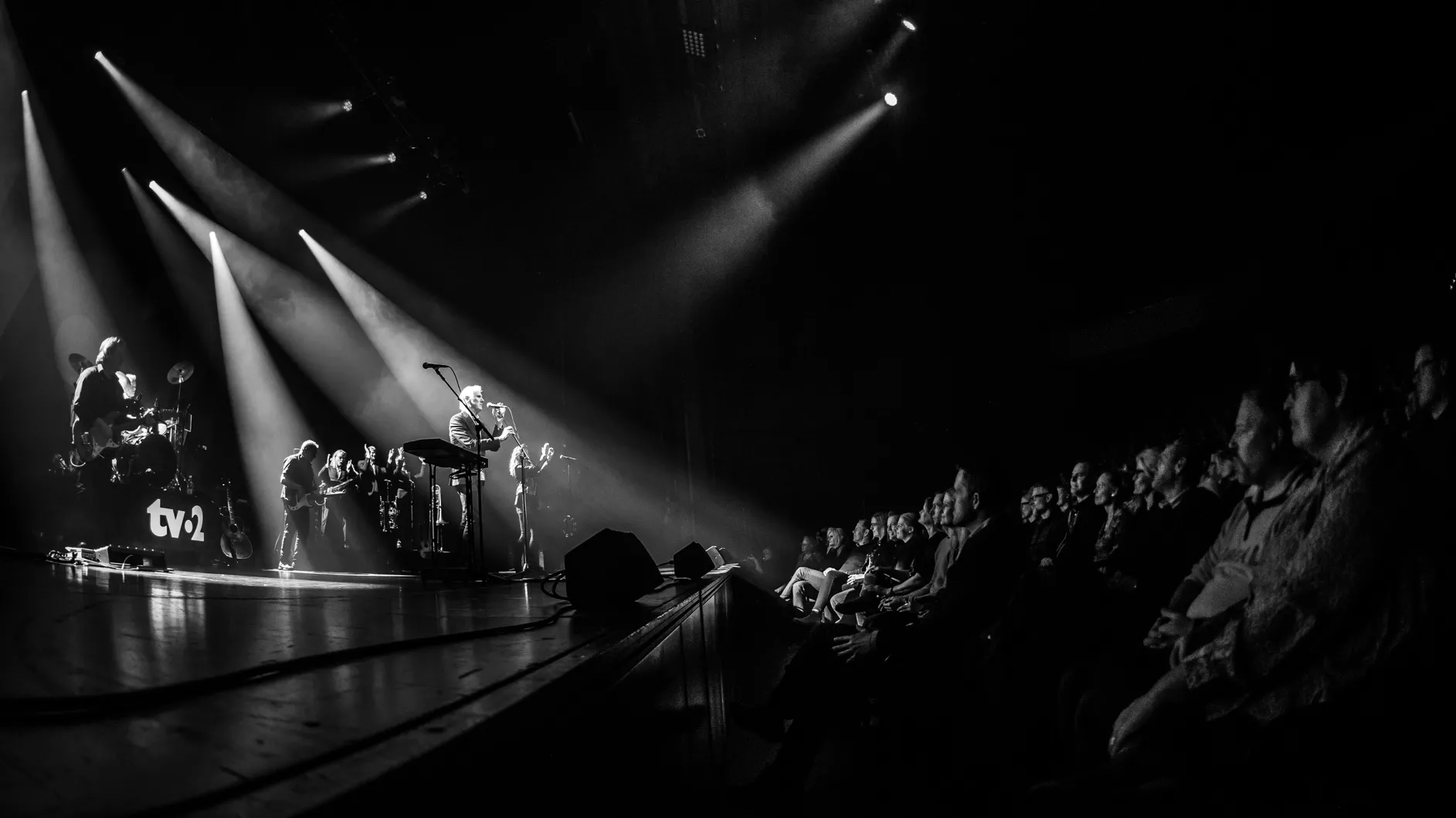 Aftenens koncert er delt op i to sæt. Et akustisk og et elektrisk med indlagt pause imellem. Således kommer vi omkring to modpoler til TV-2’s musik, og hvor andet sæt kunne få publikum op af stolene i en hæsblæsende hitparade (mere herom senere), blev der