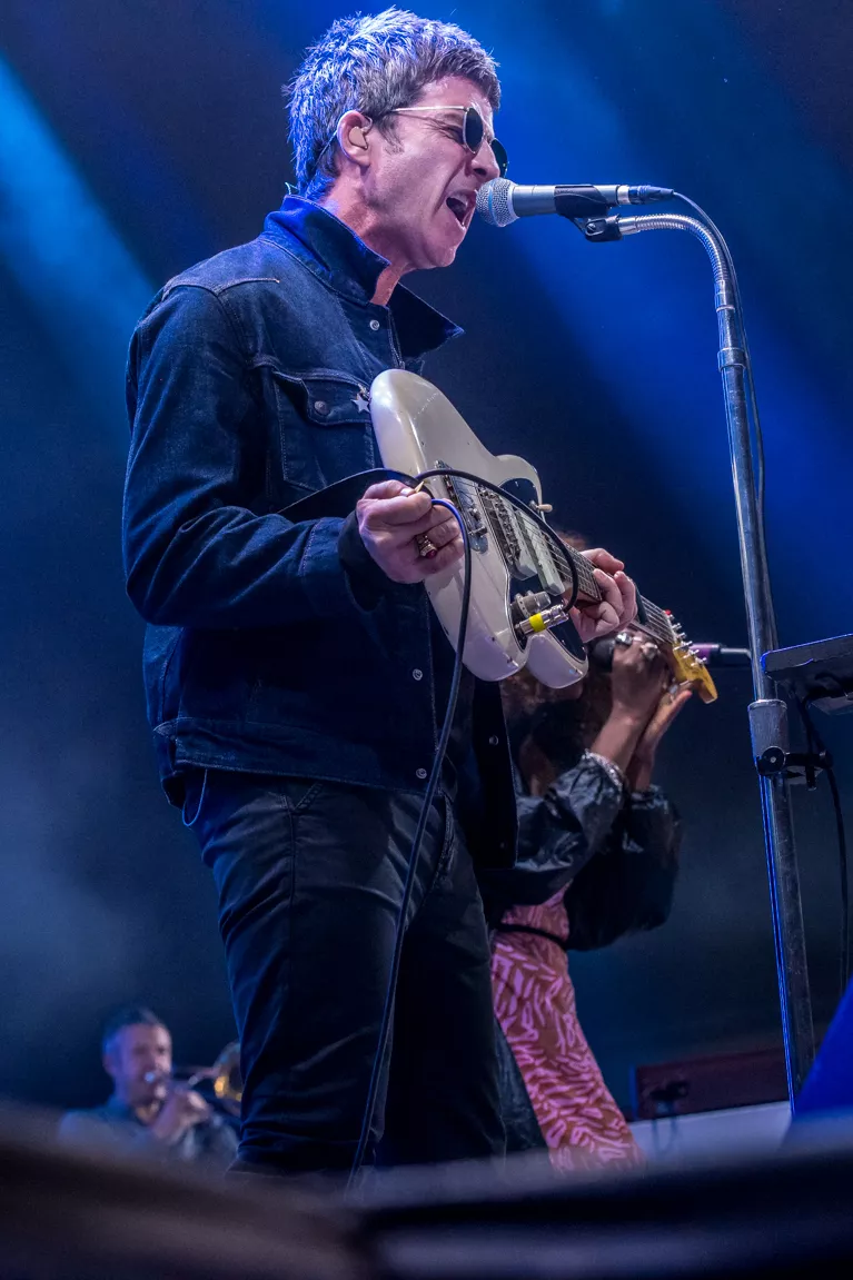 Noel Gallagher virkede til gengæld ikke splittet mellem de to musikalske verdener. Han så fra starten tilpas bister ud bag solbrillerne og gik målrettet til værks. Koncerten blev da også indledt med sange fra hans solokarriere. Og det er en storladne powerrock, der blev