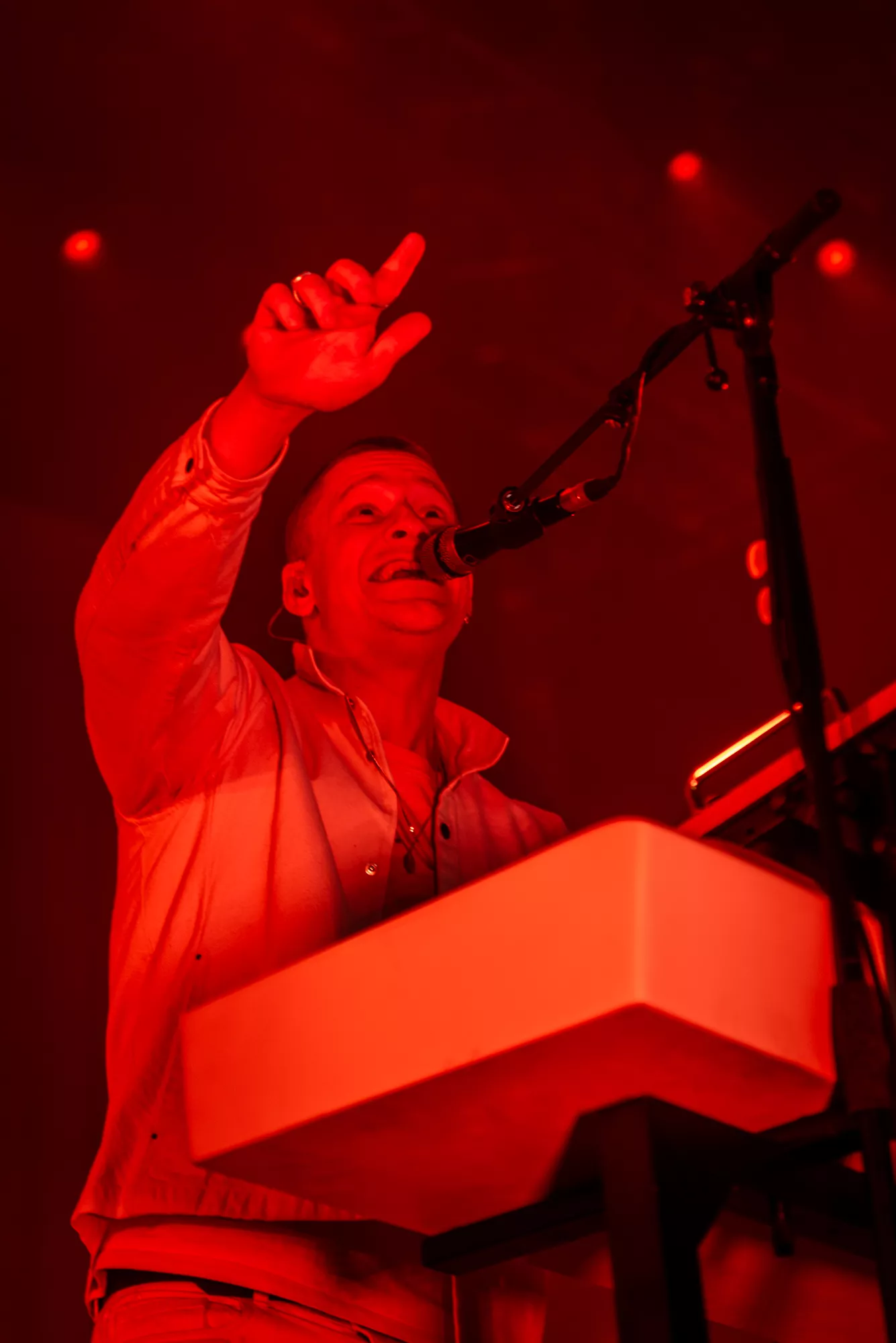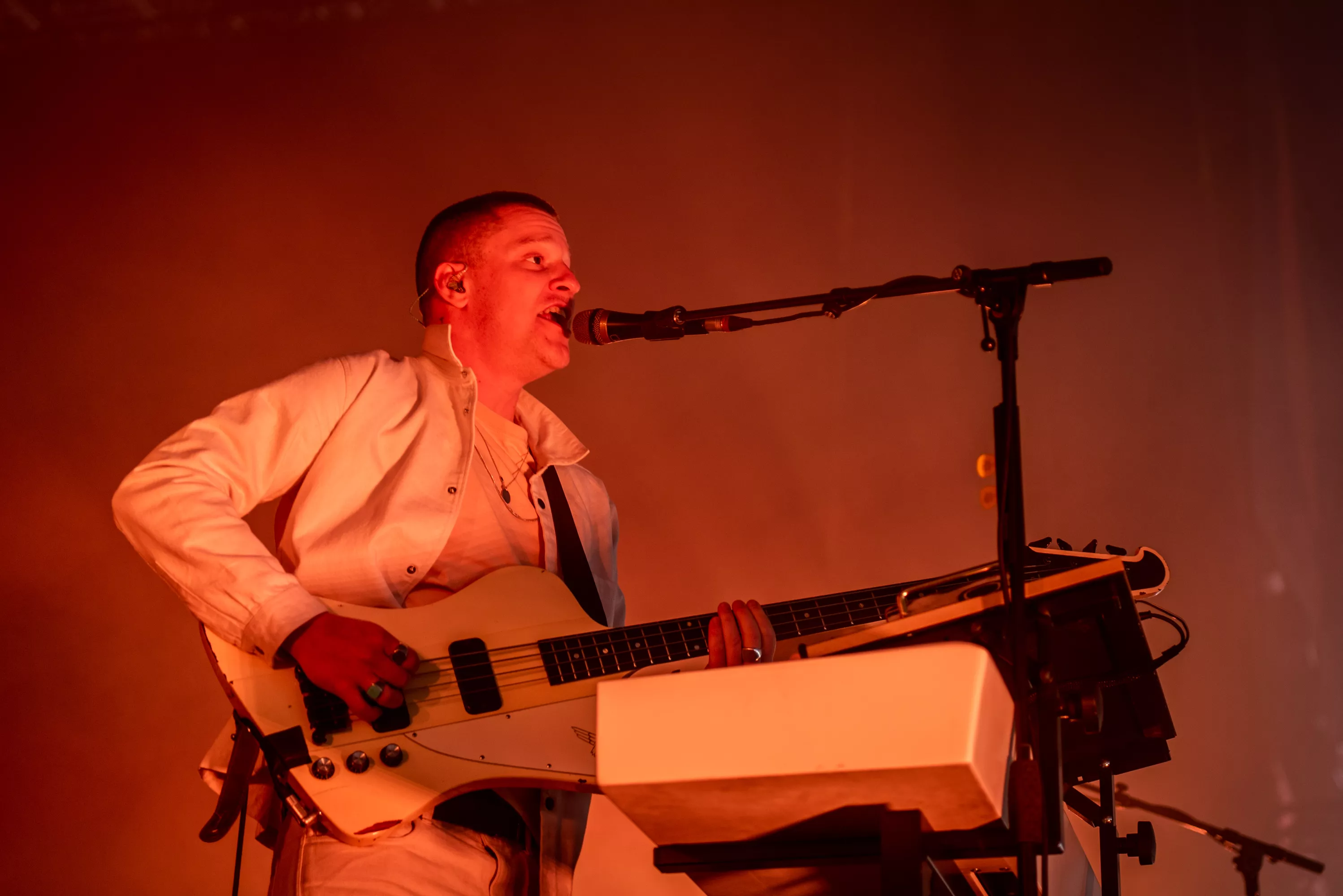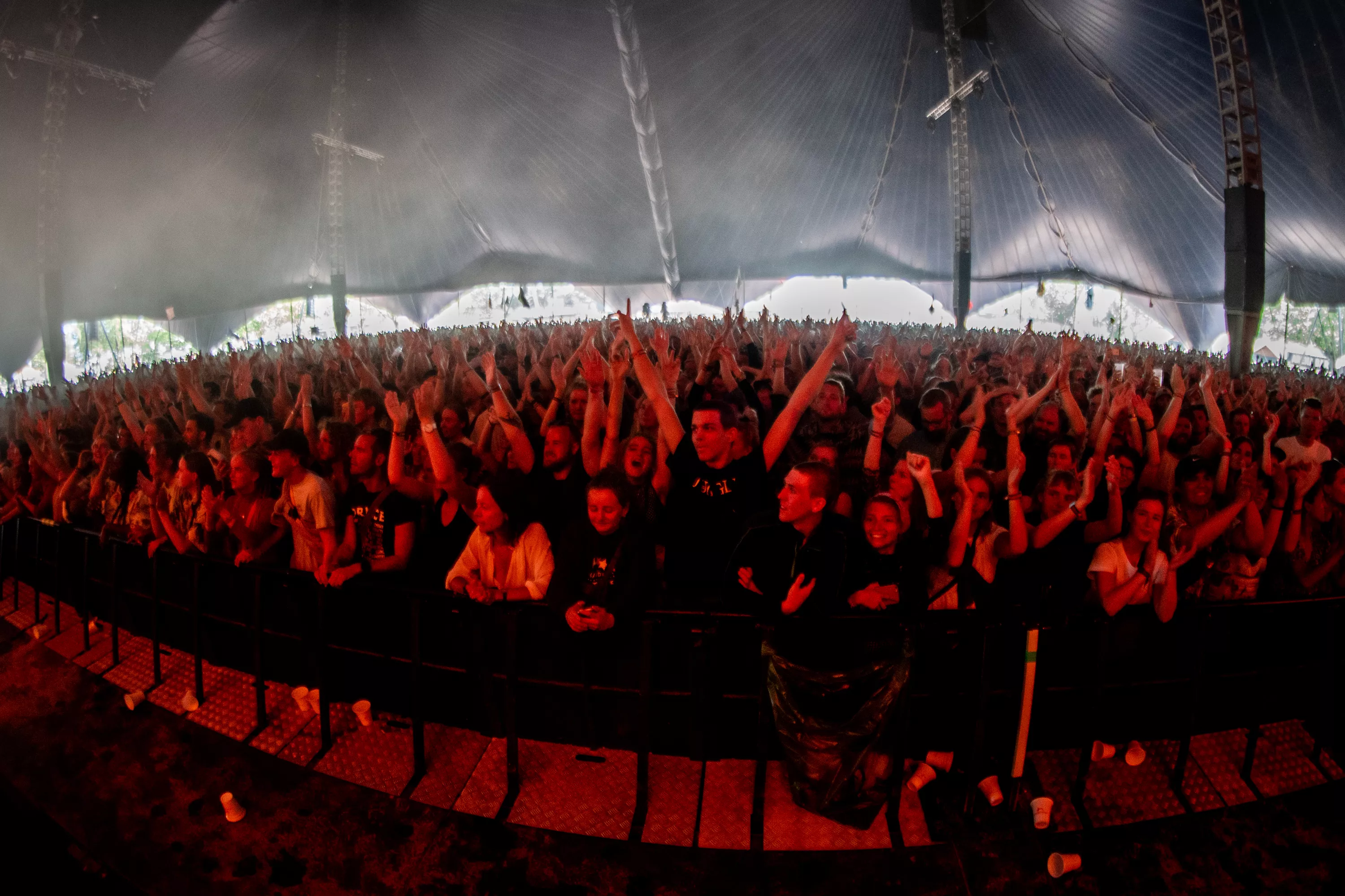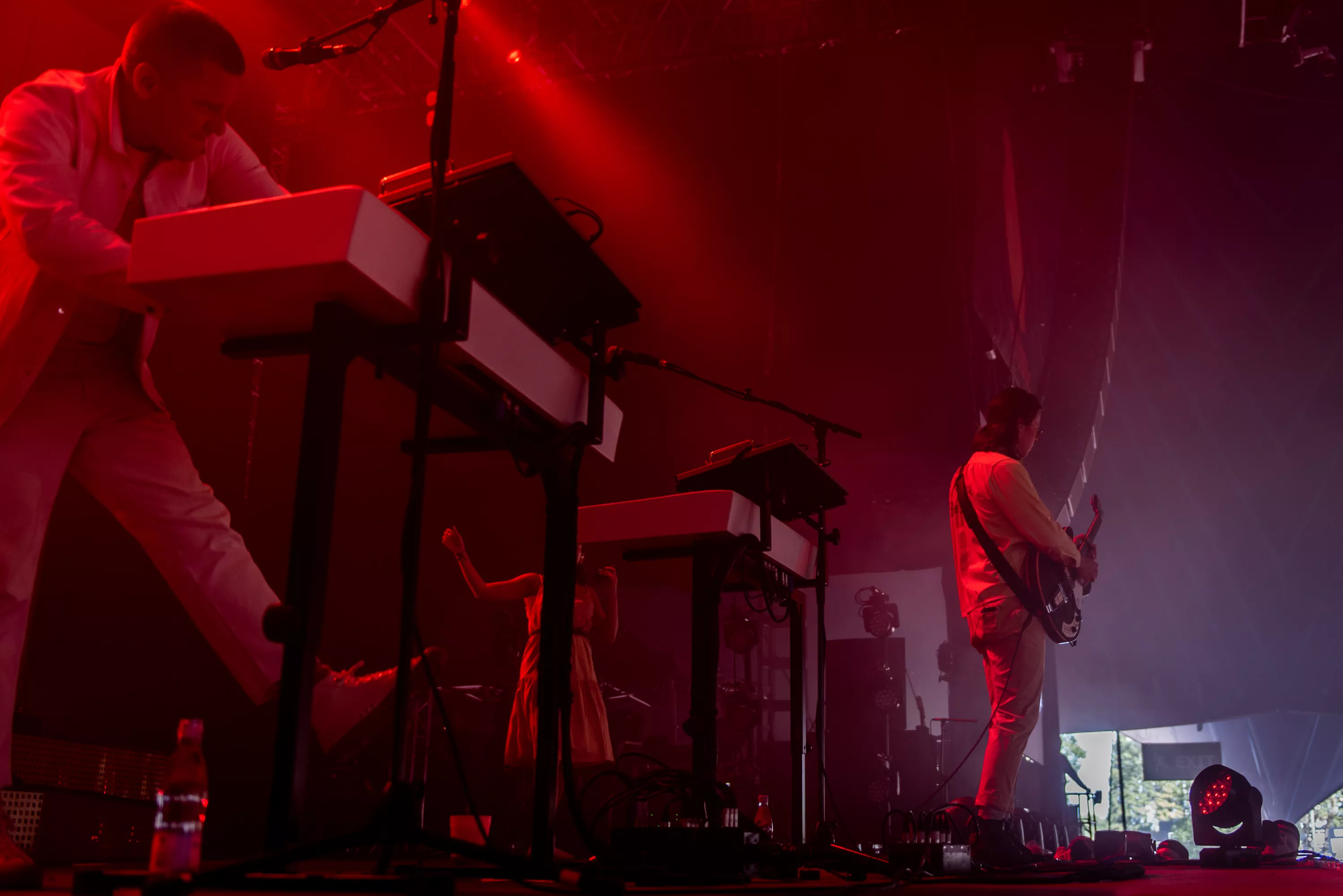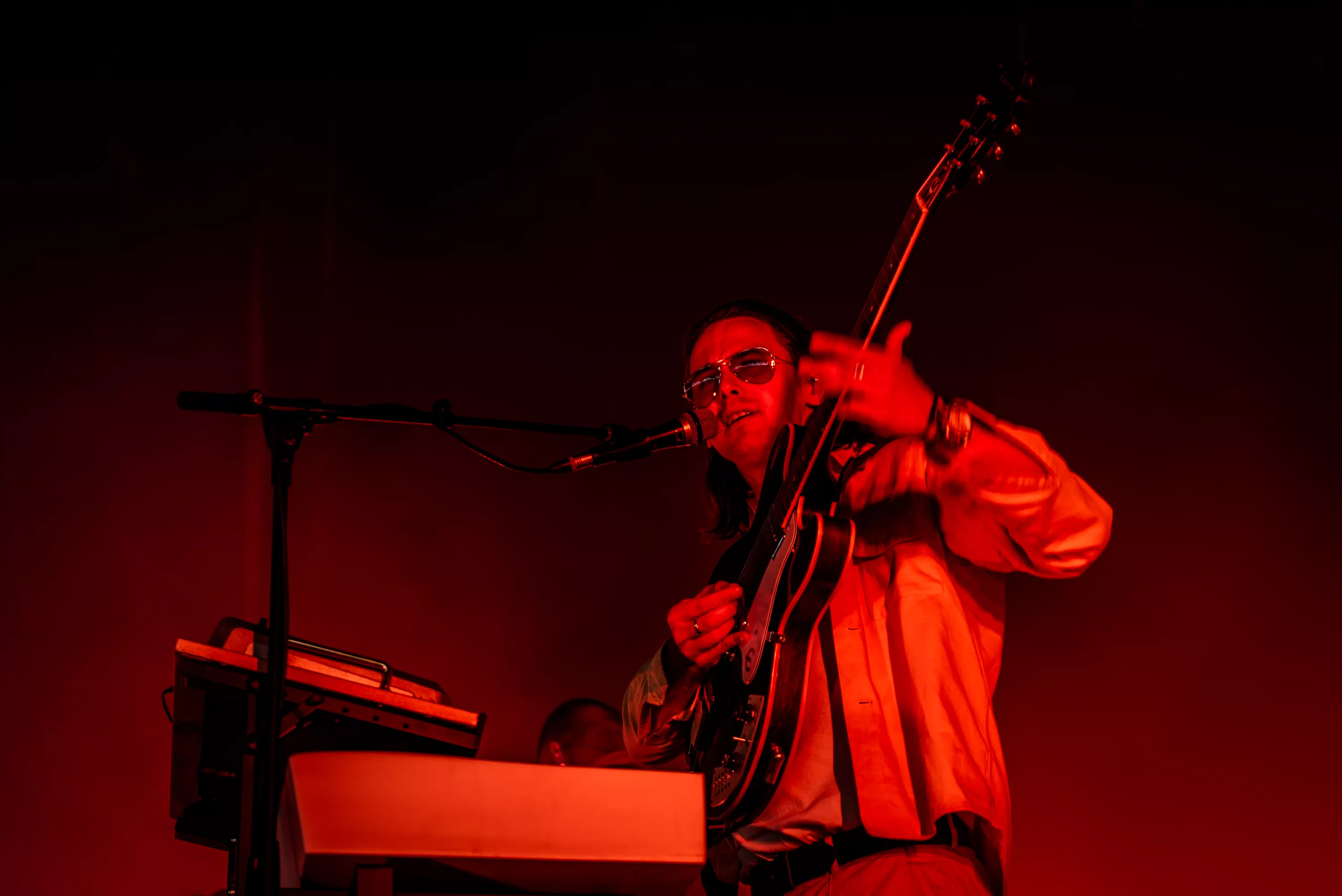 Det er blevet fredag, og solen skinner igen over Roskilde Festival. Det kunne i den grad mærkes på festivalpublikummet, som igen havde fundet shorts og korte ærmer frem, op til Jungles ventede koncert på Arena. Støven hvirvlede ubarmhjertigt
