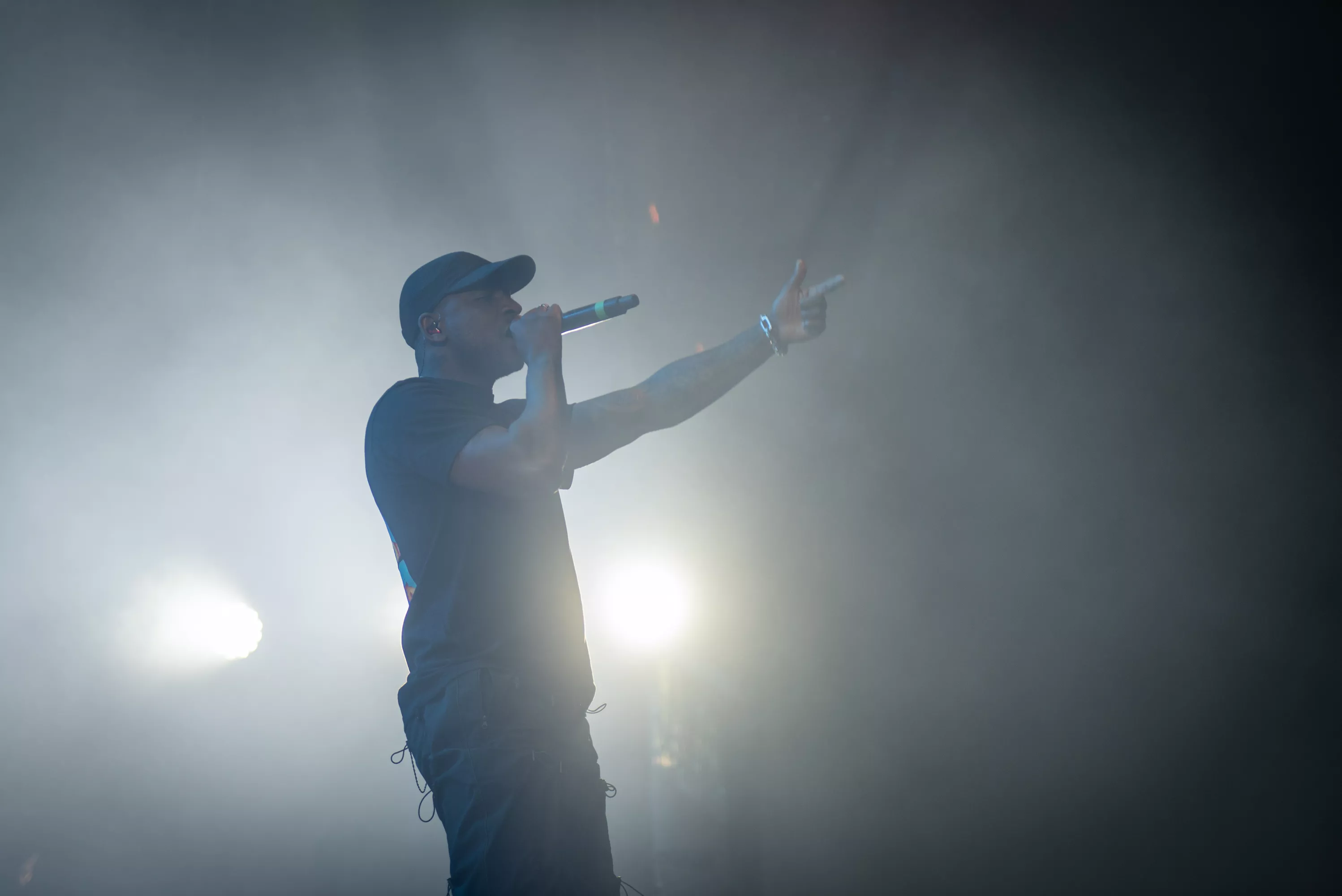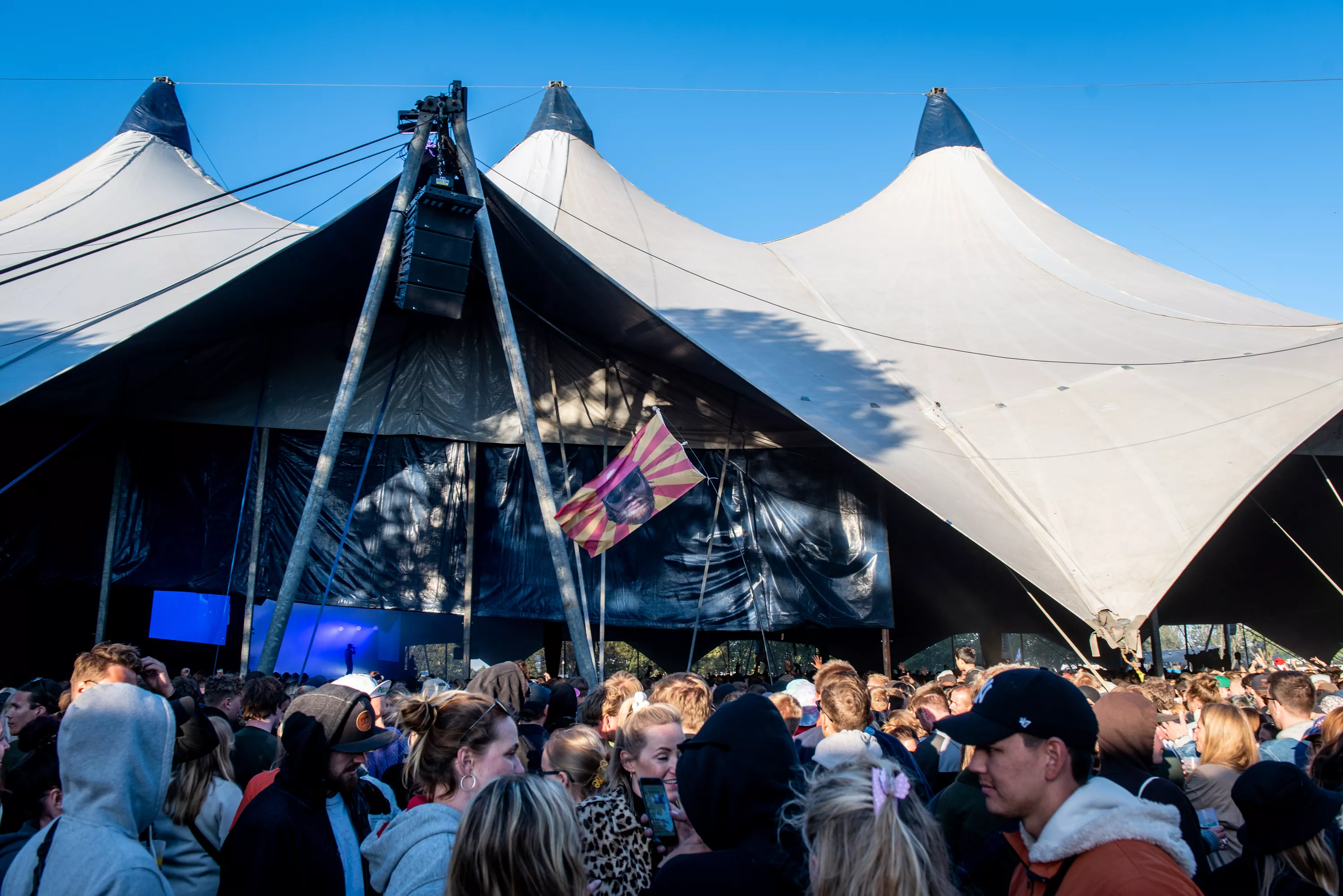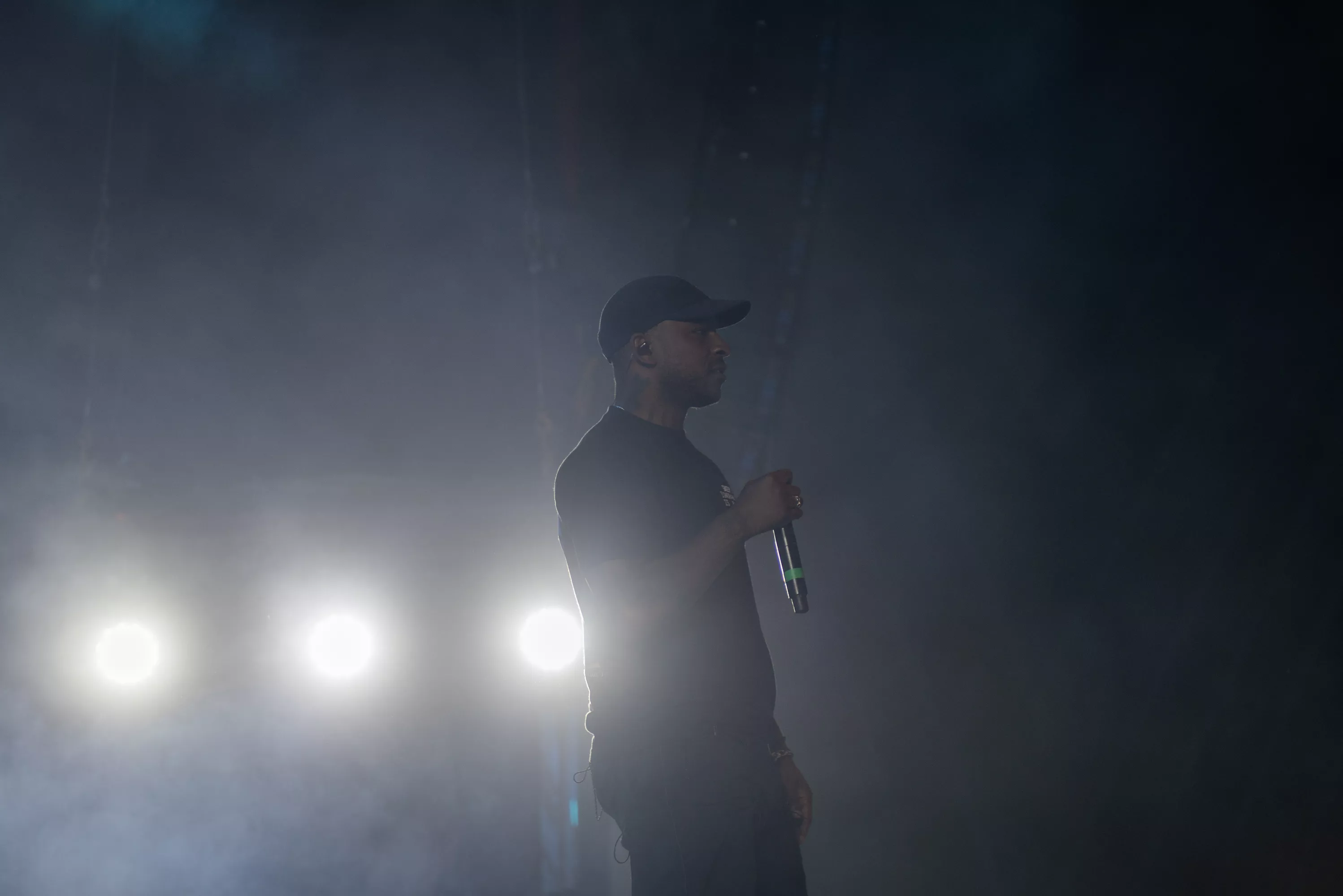 Til nummeret “That’s Not Me” gik britiske Skepta på scenen fem minutter tidligere end den programsatte tid, hvilket medførte, at undertegnede stadig var ilende fra presseområdet over til det blå kæmpetelt på festivalens