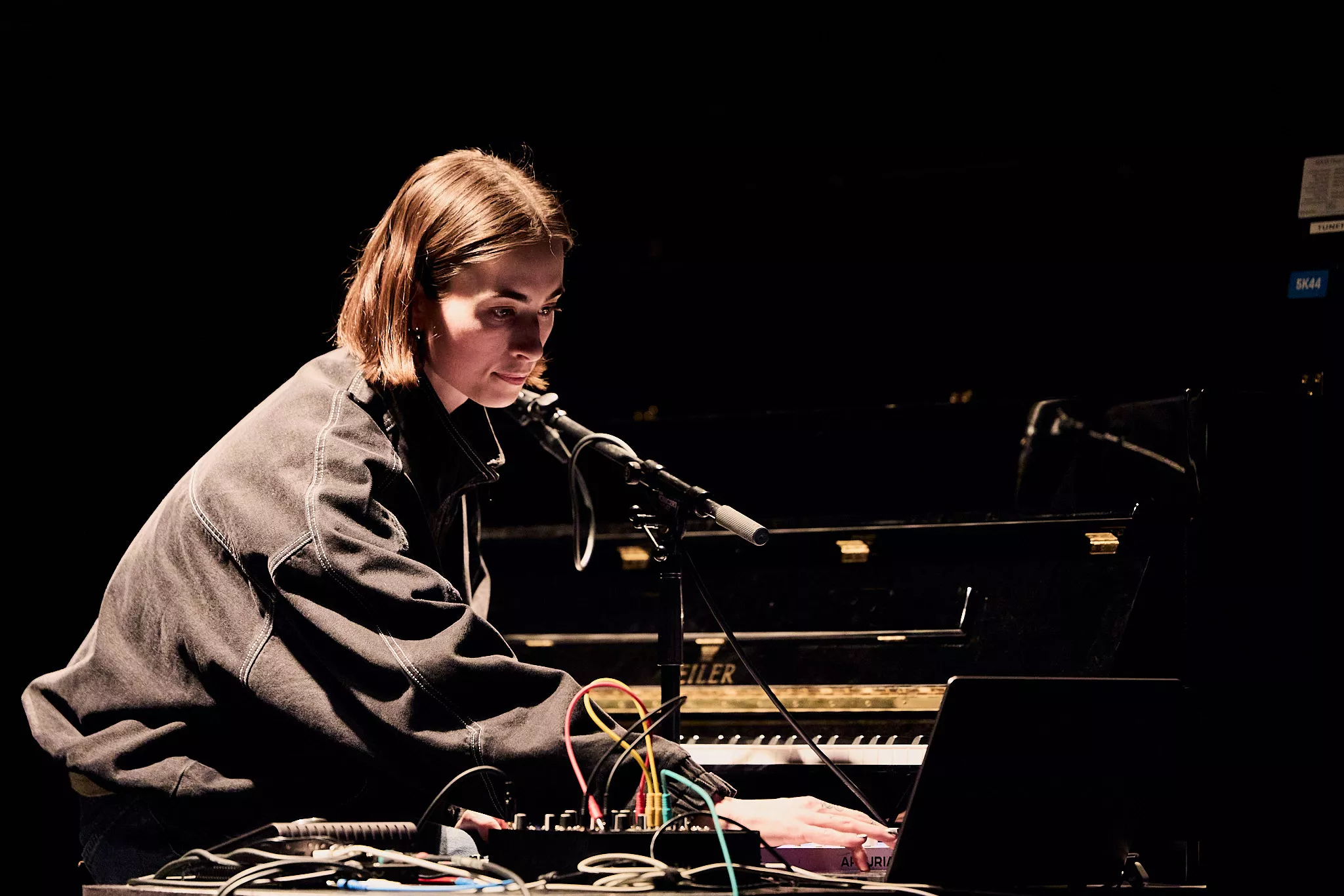 Otte aflange spejle med lysstofrør på bagsiden pryder scenen sammen med fire sølv-scenetæpper blafrende i vinden. Scenen er sat, og foran alt dette står det rigtige lir: tre mikrofoner indstillet i forskellige effekter, midi-key og den laptop, der dominerer det sporadiske