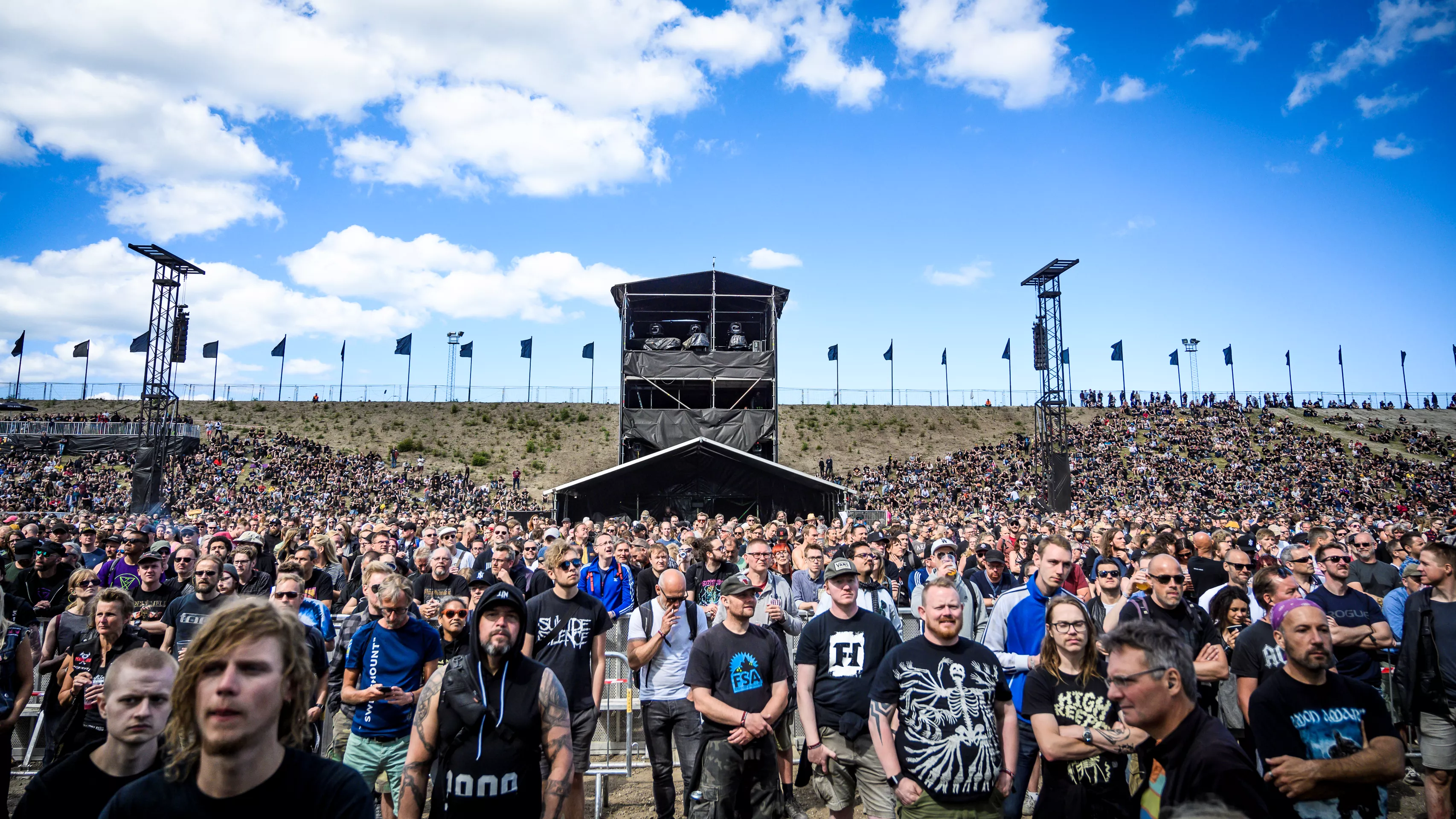 Sort er den altdominerende farve på Copenhell, når vi taler beklædning. Hvis det gælder personerne, der bærer tøjet, er langt hovedparten dog hvide som de kranier, man ser rundt om på pladsen, og det er uanset, om vi taler publikum eller musikere. Metal har