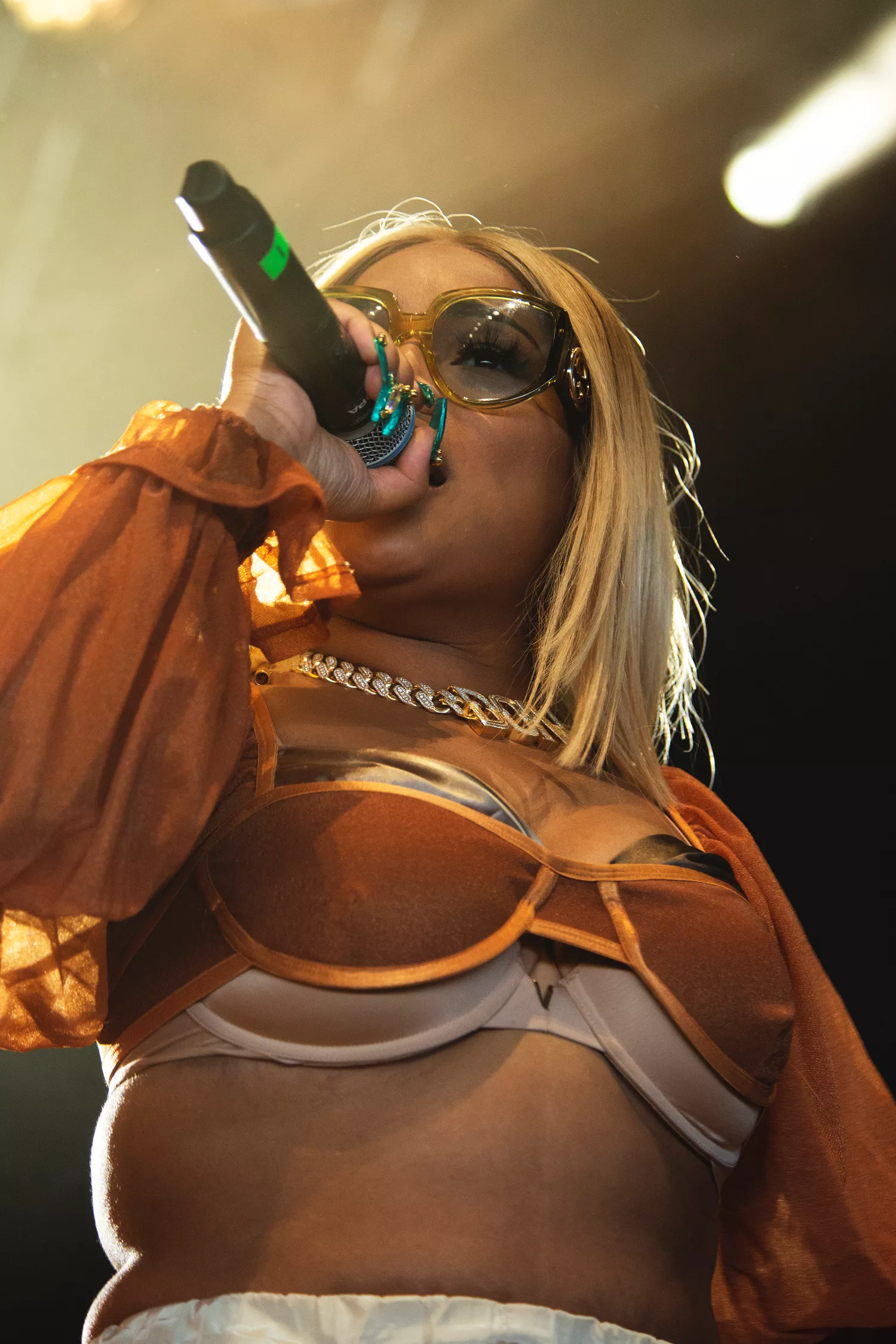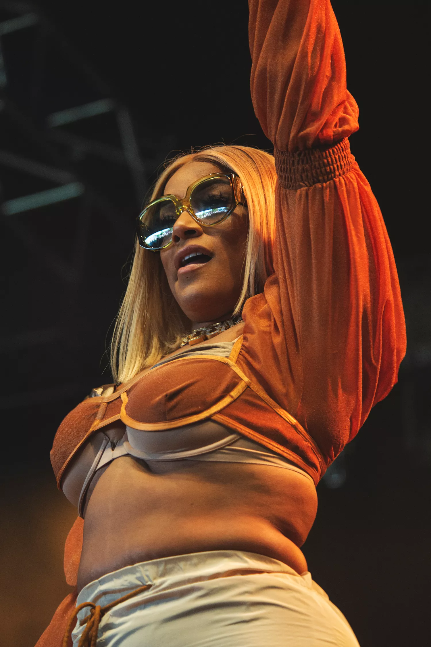 Små 40 minutter tog det for Stephanie Victoria Allen at sætte skabet og teltscenen solidt på plads. Det smager meget af Roskilde at lade Stefflon Don stå imod Minds of 99, der lige har spillet årets Tinderbox-folkefest på den solrøde scene. Sådan var