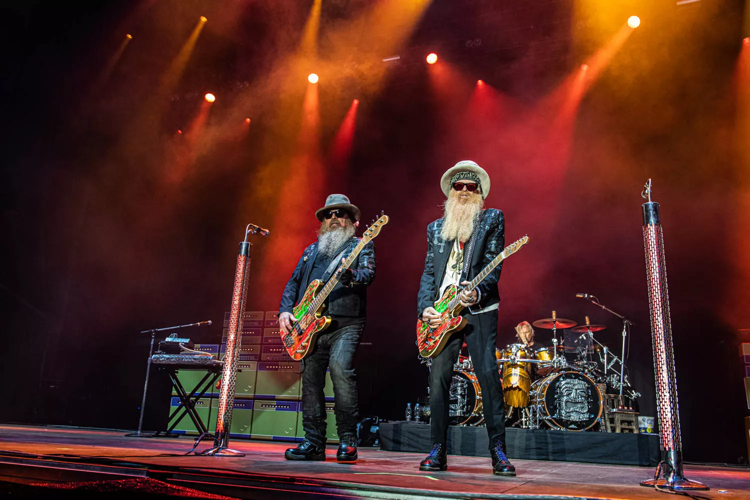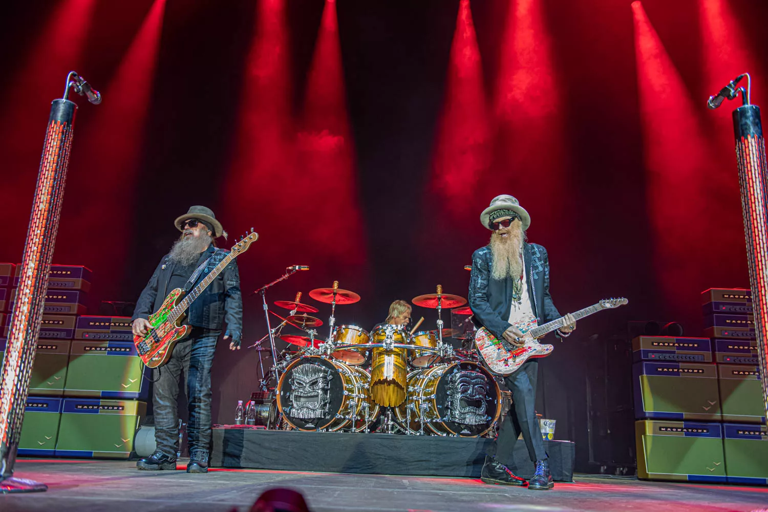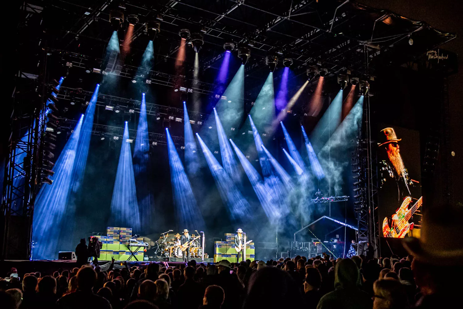 Klokken 23.55 sharp trådte "The Little Big Band from Texas", ZZ Top, op på scenen foran et forventningsfuldt publikum. Bandet debuterede tilbage 1969 og har således 50 år på bagen. Det kunne høres, og ja: bandet er ved at være noget slidt i kanterne. Særligt