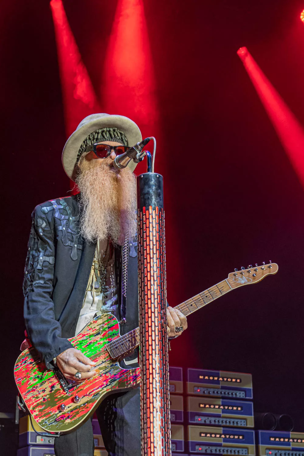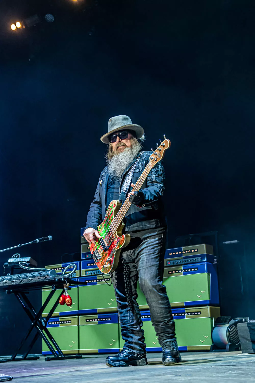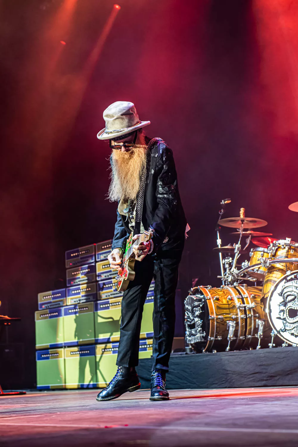 Klokken 23.55 sharp trådte "The Little Big Band from Texas", ZZ Top, op på scenen foran et forventningsfuldt publikum. Bandet debuterede tilbage 1969 og har således 50 år på bagen. Det kunne høres, og ja: bandet er ved at være noget slidt i kanterne. Særligt