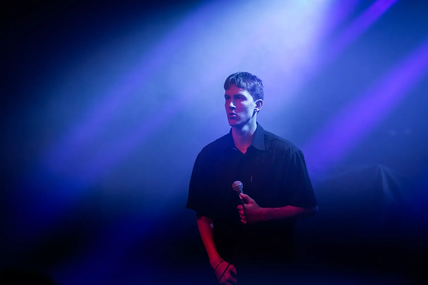 ”Hvis du skubber mig ud over kanten, så får jeg svært ved at lande den,” synger Jacob Aksglæde med et af sine finurlige rim i den let funky ”To takter fra tinnitus” tidligt i aftenens koncert. Den charmerende popsanger og -sangskriver har dog ikke nogen