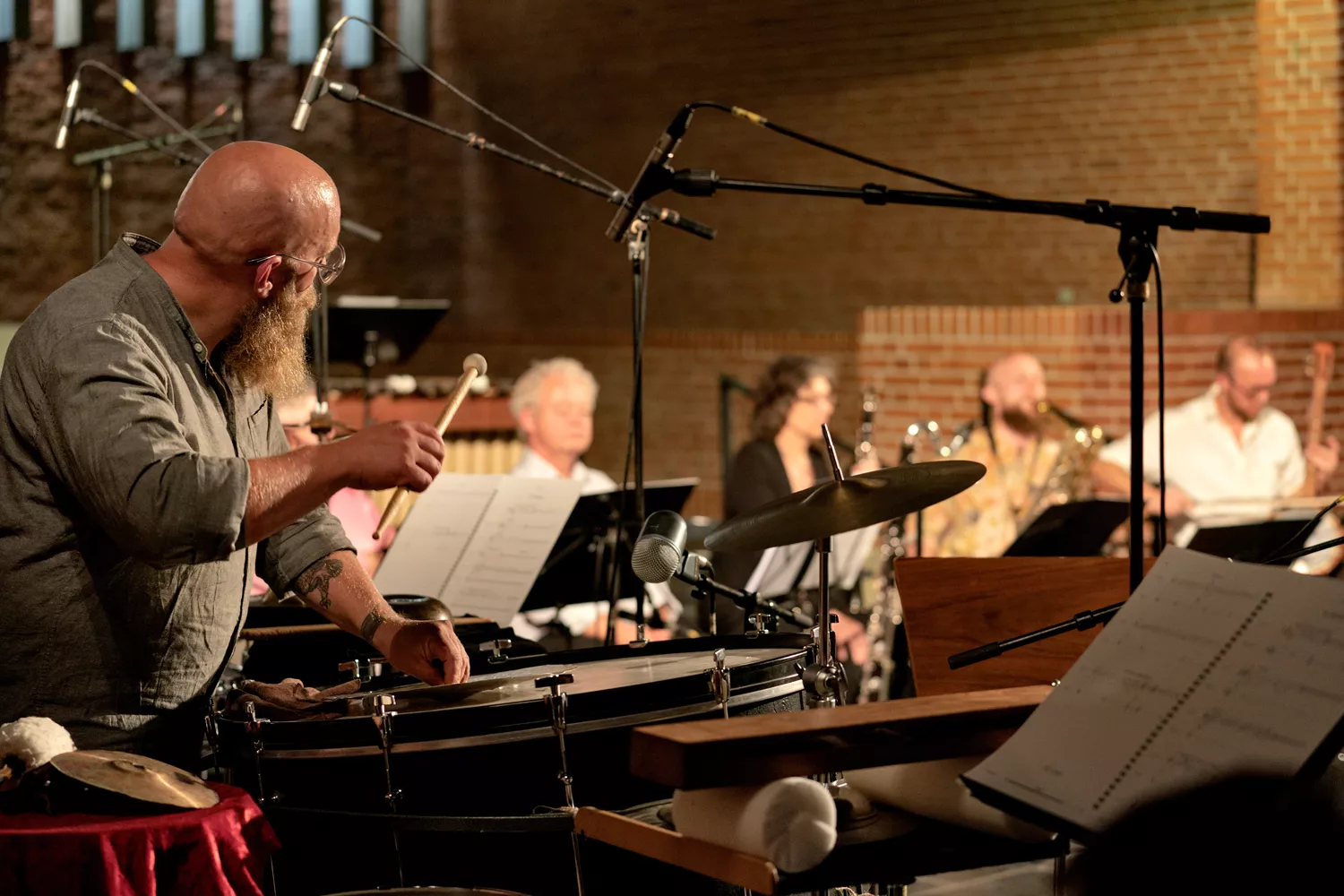 Det er en ganske særlig koncert, der finder sted i Langenæskirken i aften. Den københavnske avantgarderocktrio Svin har sat ni musikere fra det aarhusianske orkester Aarhus Sinfonietta stævne. Aarhus Sinfonietta spiller moderne klassisk musik, og sammen fremfører de