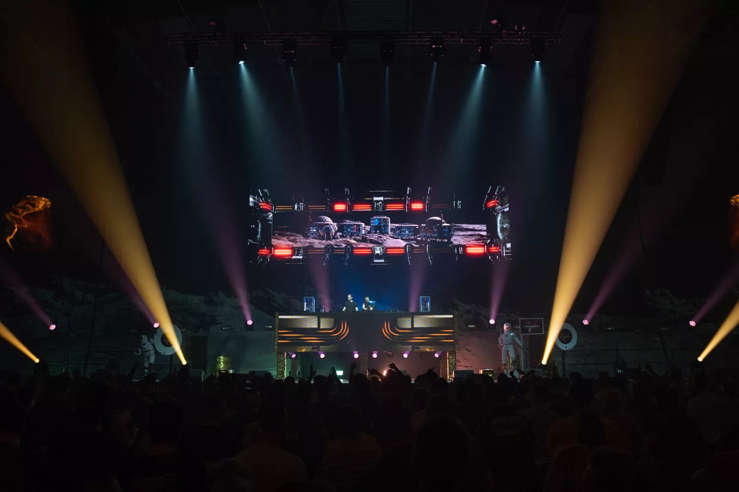 Med stor cinematisk effekt brager månelandingskonspirationerne ud af Aairports informationsanlæg inden Bass Modulators' éntre. For hvad foregår der egentlig på den mørke side af Månen, ud over hvad Waters og Gilmour har hintet til? Svaret må stå