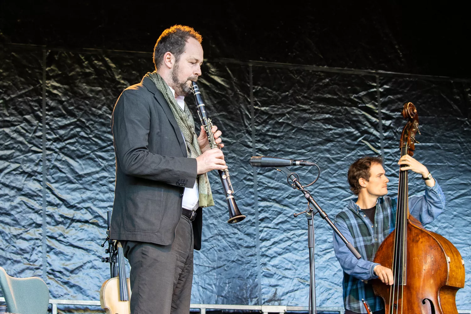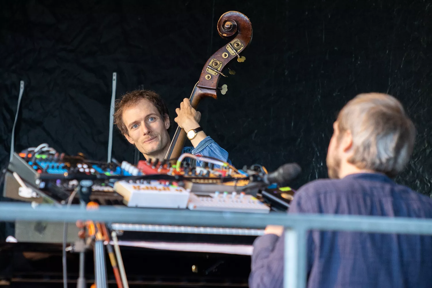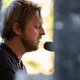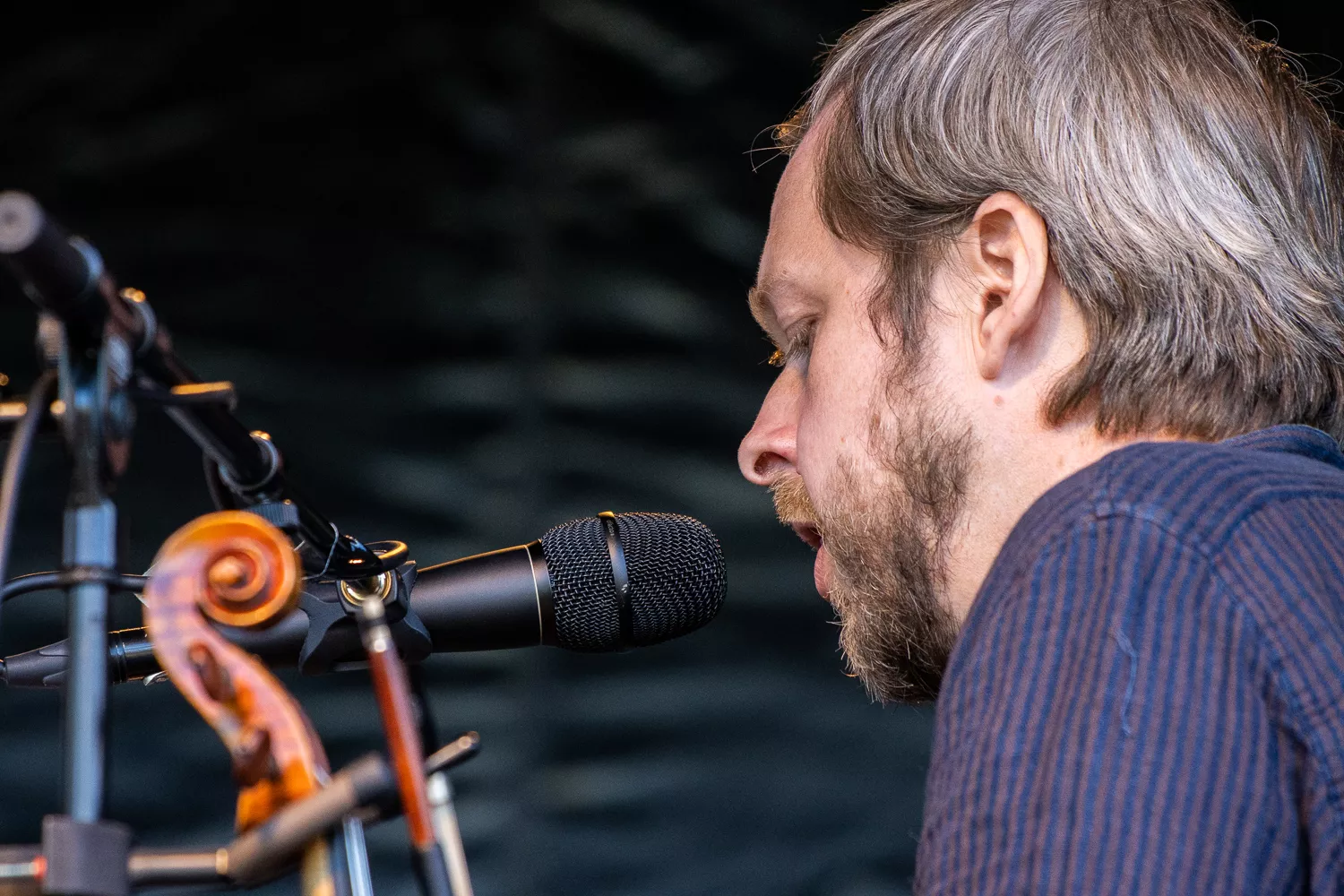 Troubadouren med de færøske rødder indtog scenen flankeret af Jeppe Skovbakke på bas og Gustaf Ljunggren på diverse blæseinstrumenter, guitar, slideguitar, violin m.m. og det netop, som solen afløste regnen. Publikum var ellers fornuftigt klædt på,