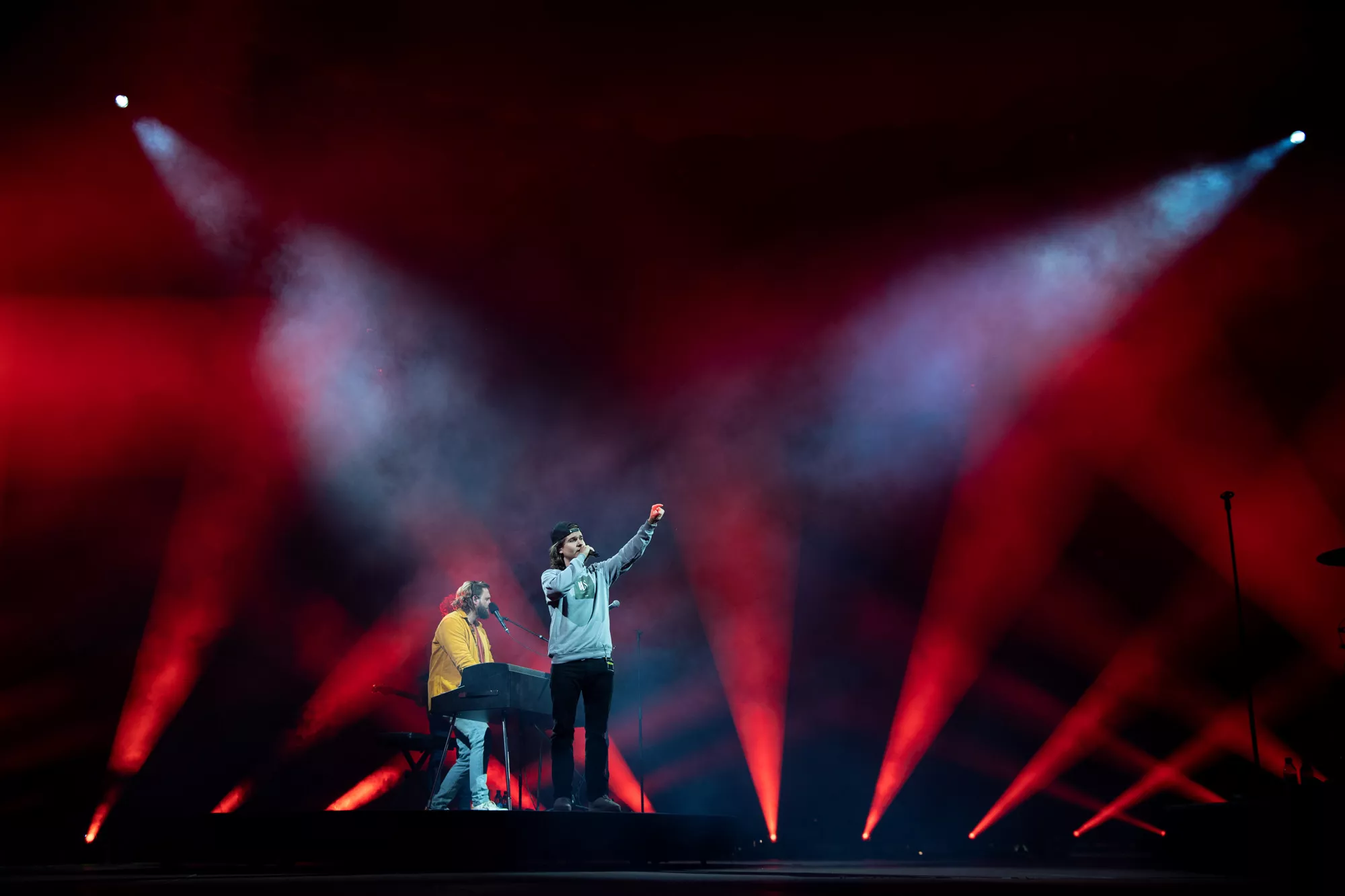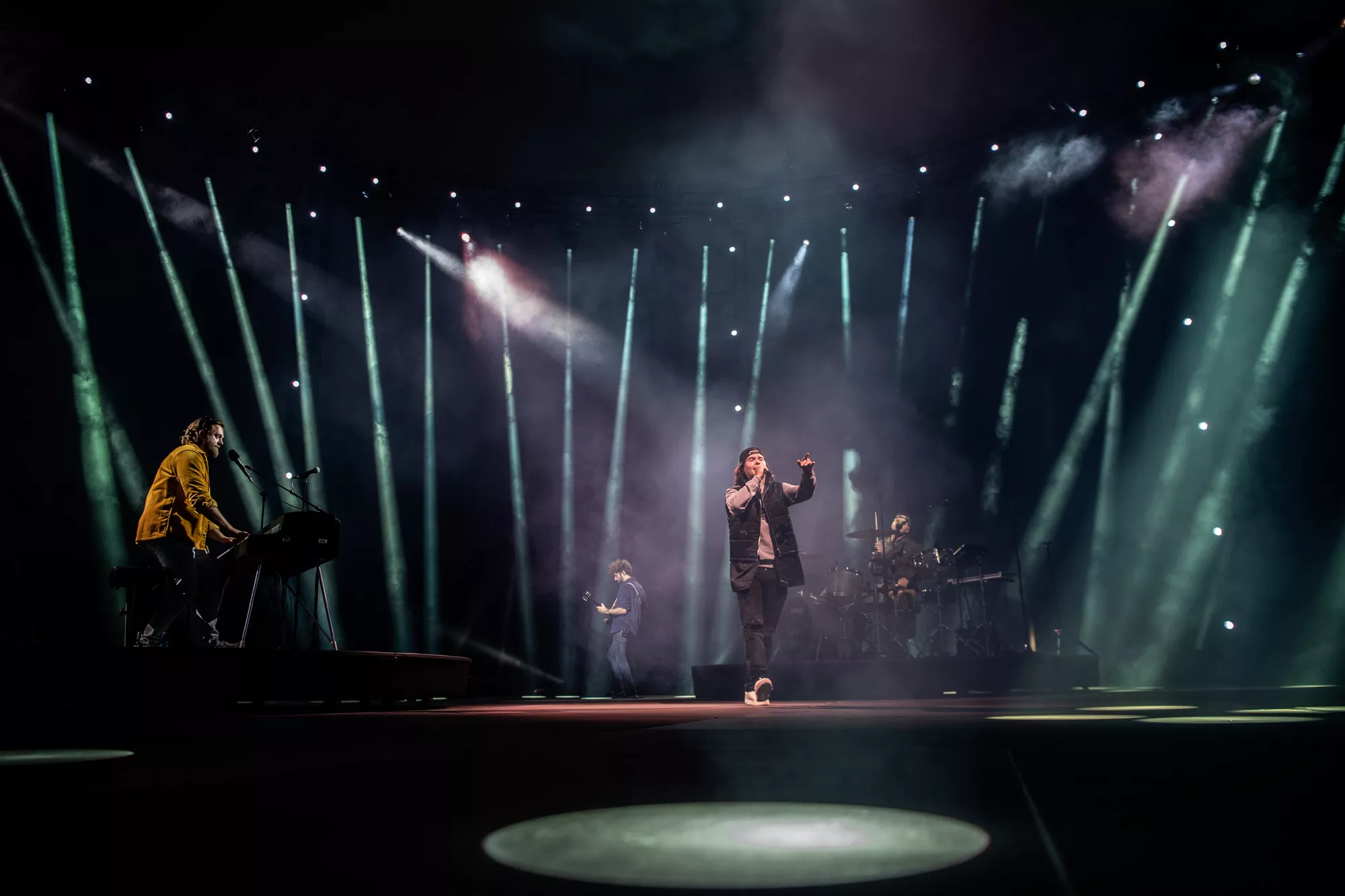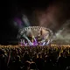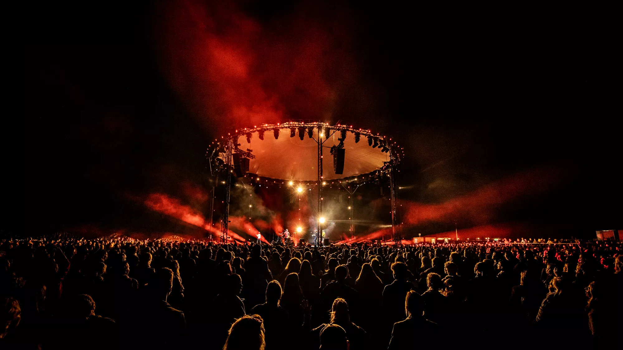 Små 10.000 stemmebånd har de sidste par uger været forvisset om denne aftens voldsomme fællessangpres på fimrehårene. Det fem mand store band entrerer den roterende 360 graders amfiscene. Menneskebrølet er ikke til at tage fejl af. Det er et kald, som kun