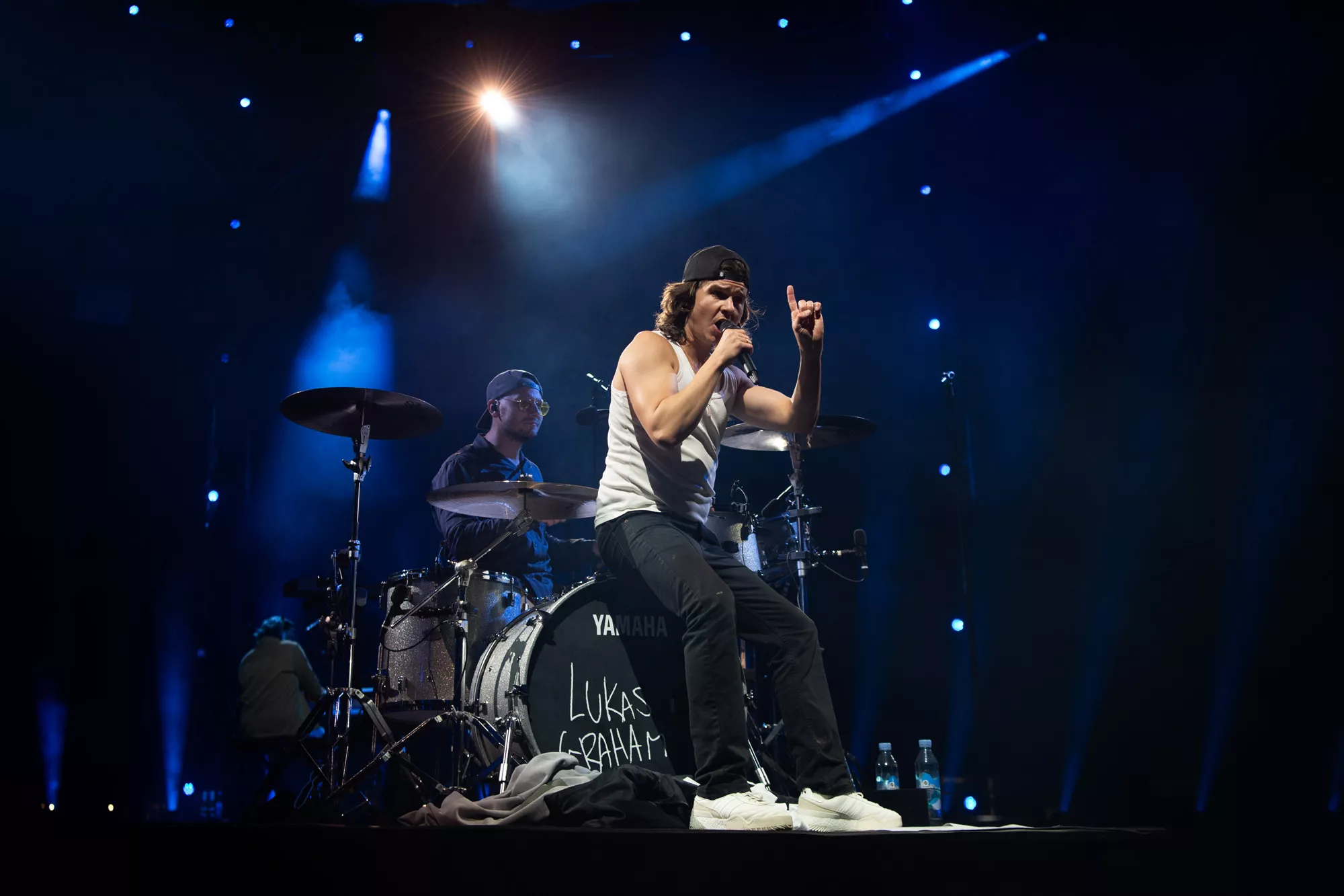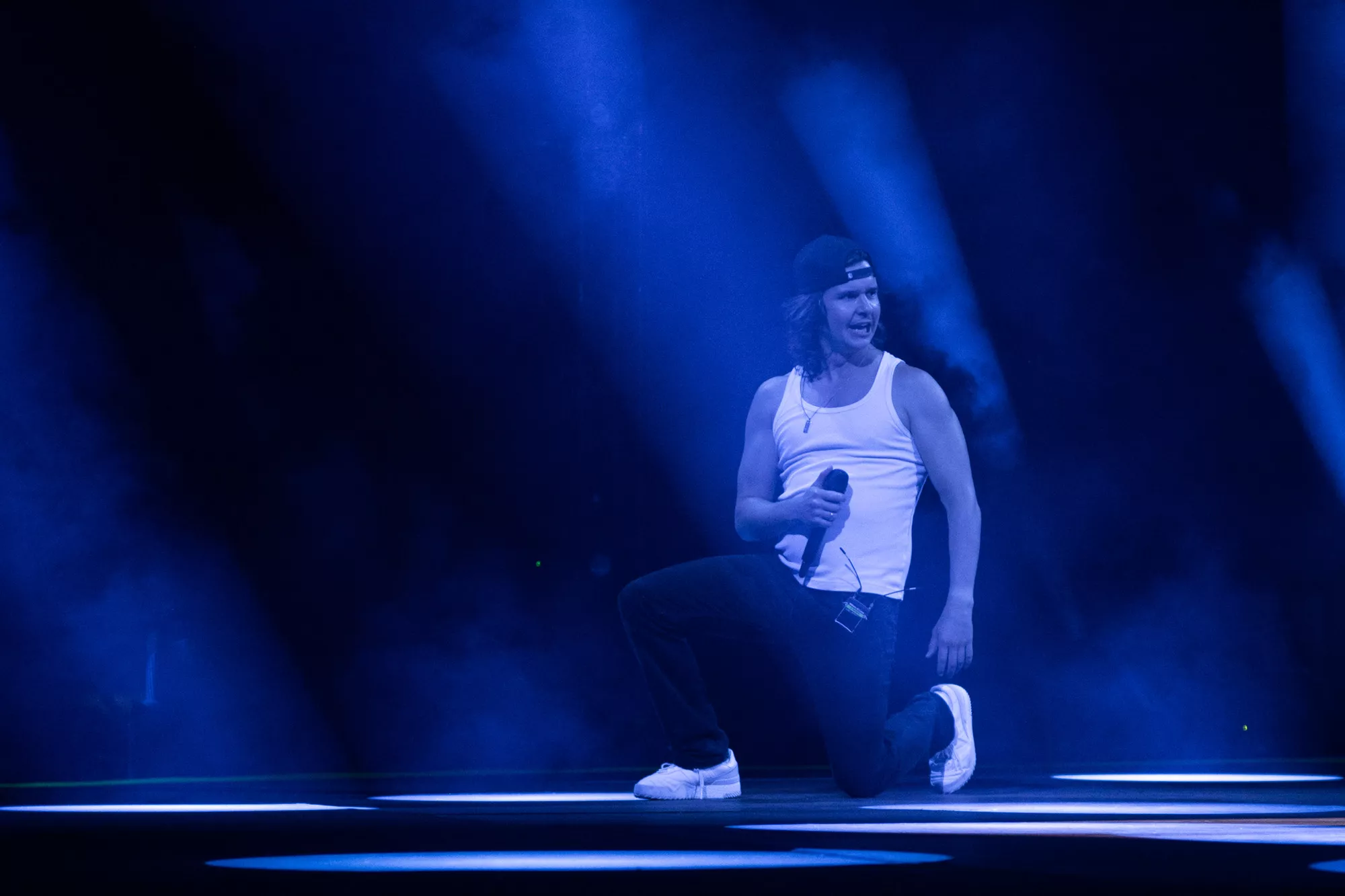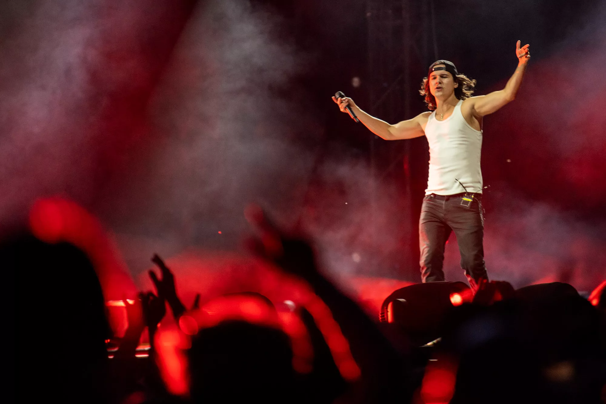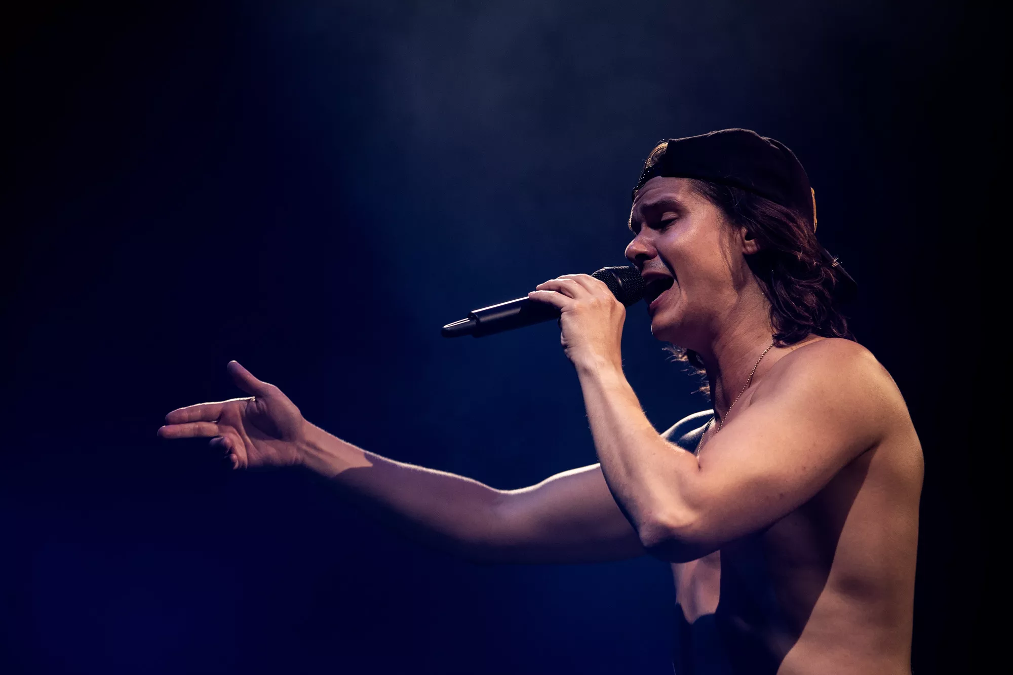 Små 10.000 stemmebånd har de sidste par uger været forvisset om denne aftens voldsomme fællessangpres på fimrehårene. Det fem mand store band entrerer den roterende 360 graders amfiscene. Menneskebrølet er ikke til at tage fejl af. Det er et kald, som kun
