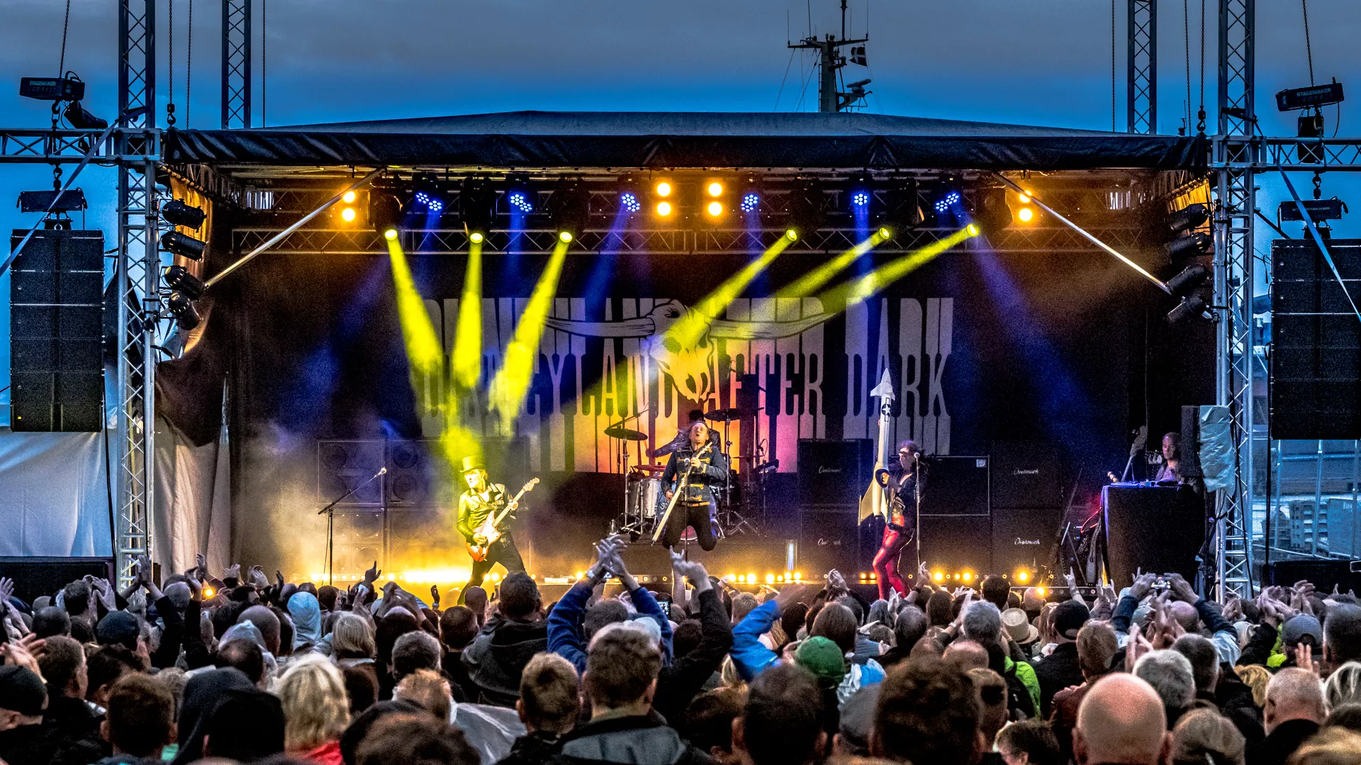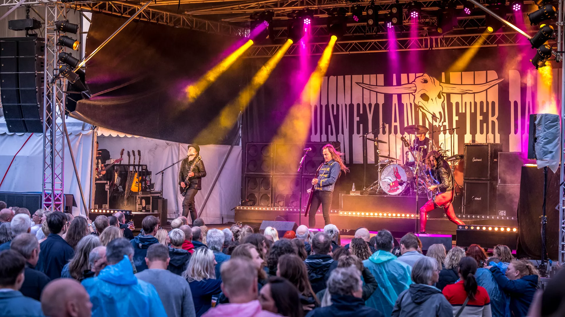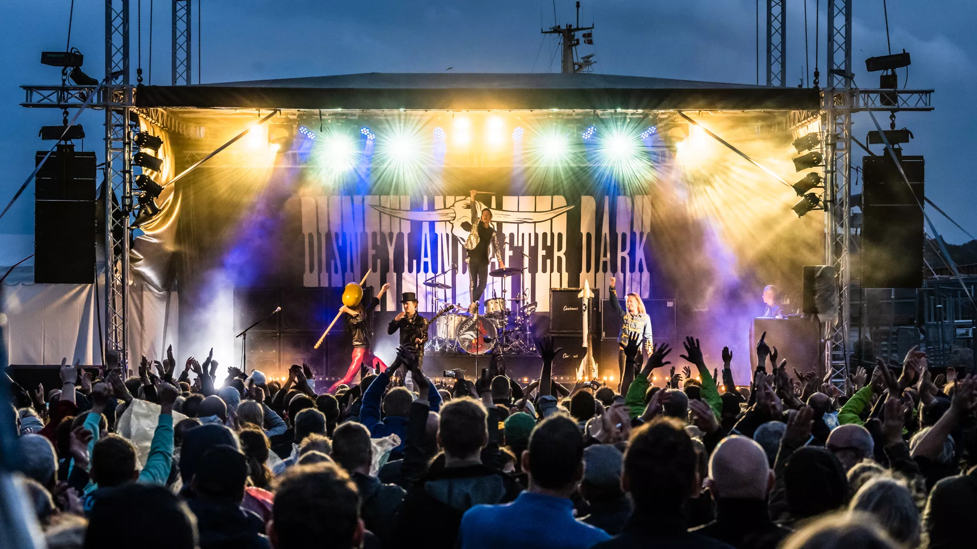 Bandet ankommer lige til døren i bedste rockstjernestil med chauffør. Det skal da hurtigt vise sig, at vigepligter, fuldt stop og aldersbegrænsninger er sat ud af kraft. Færdselsloven inden for Disneylands mure har kun én paragraf: Sømmet i bund. D-A-D er dét