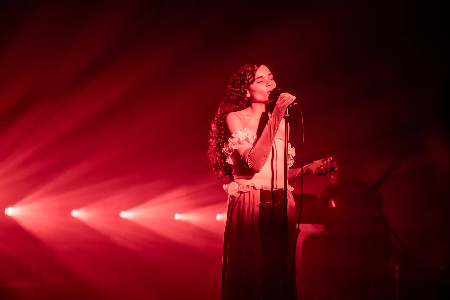 Mens skumringen meldte sin ankomst på Roskilde Dyrskueplads, blev scenen på Summer Days badet i rødt lys, mens overbevisende percussions og synths fik folk til scenen, og der så småt kom gang i de ubrugte corona-dansehofter. Erika de Casier