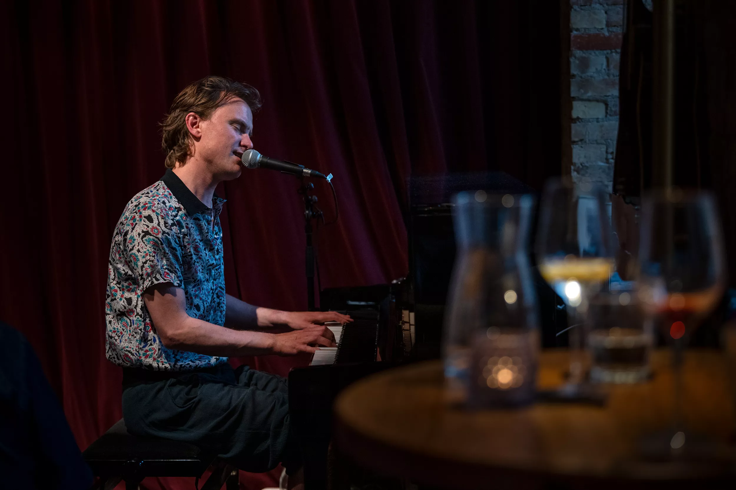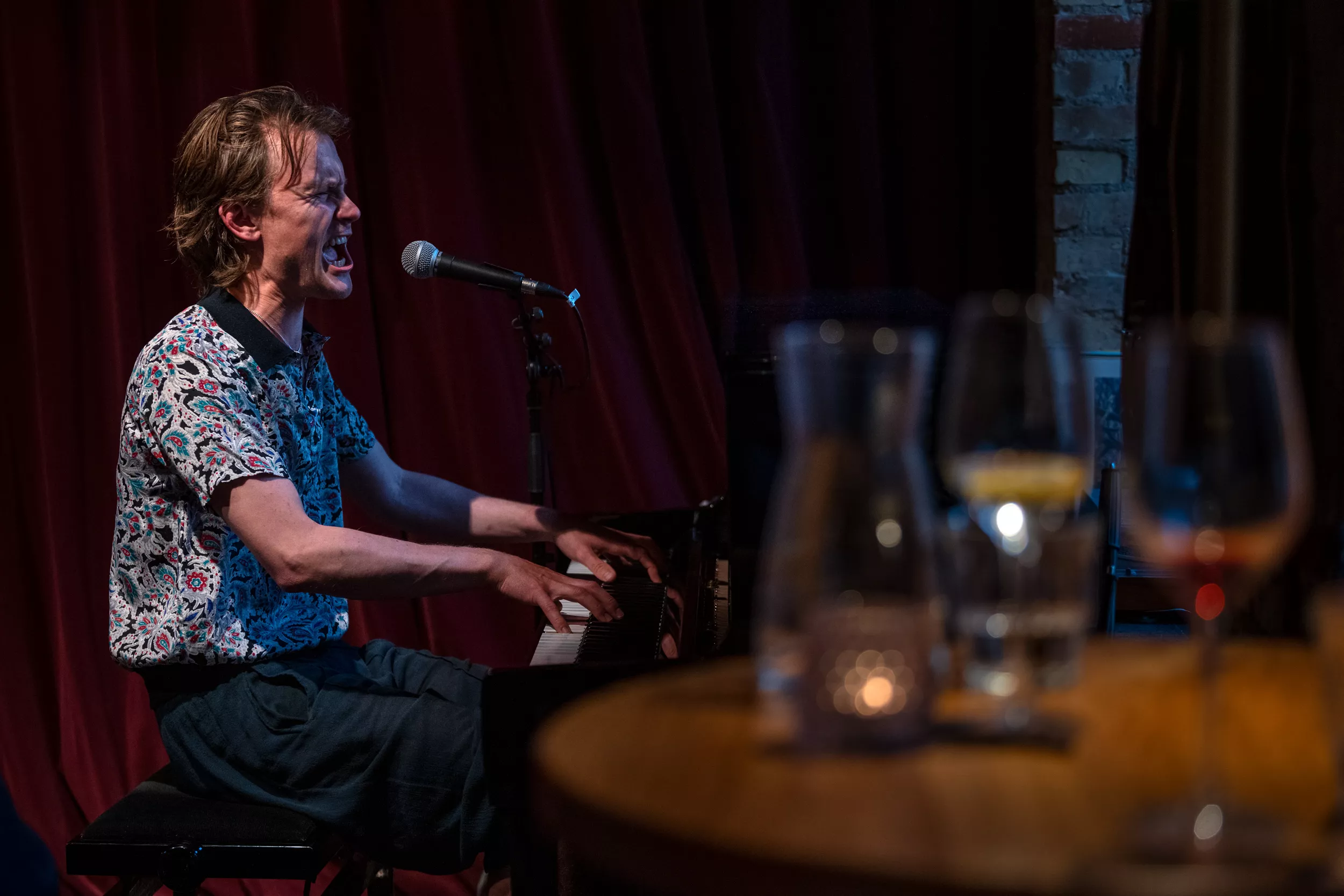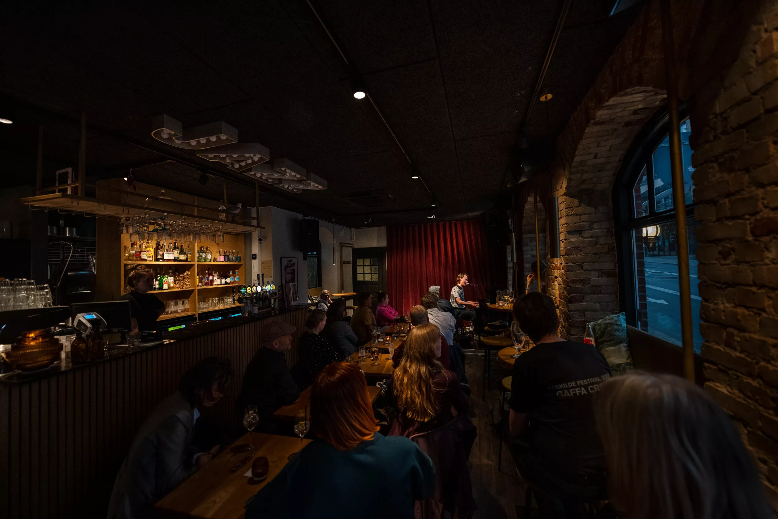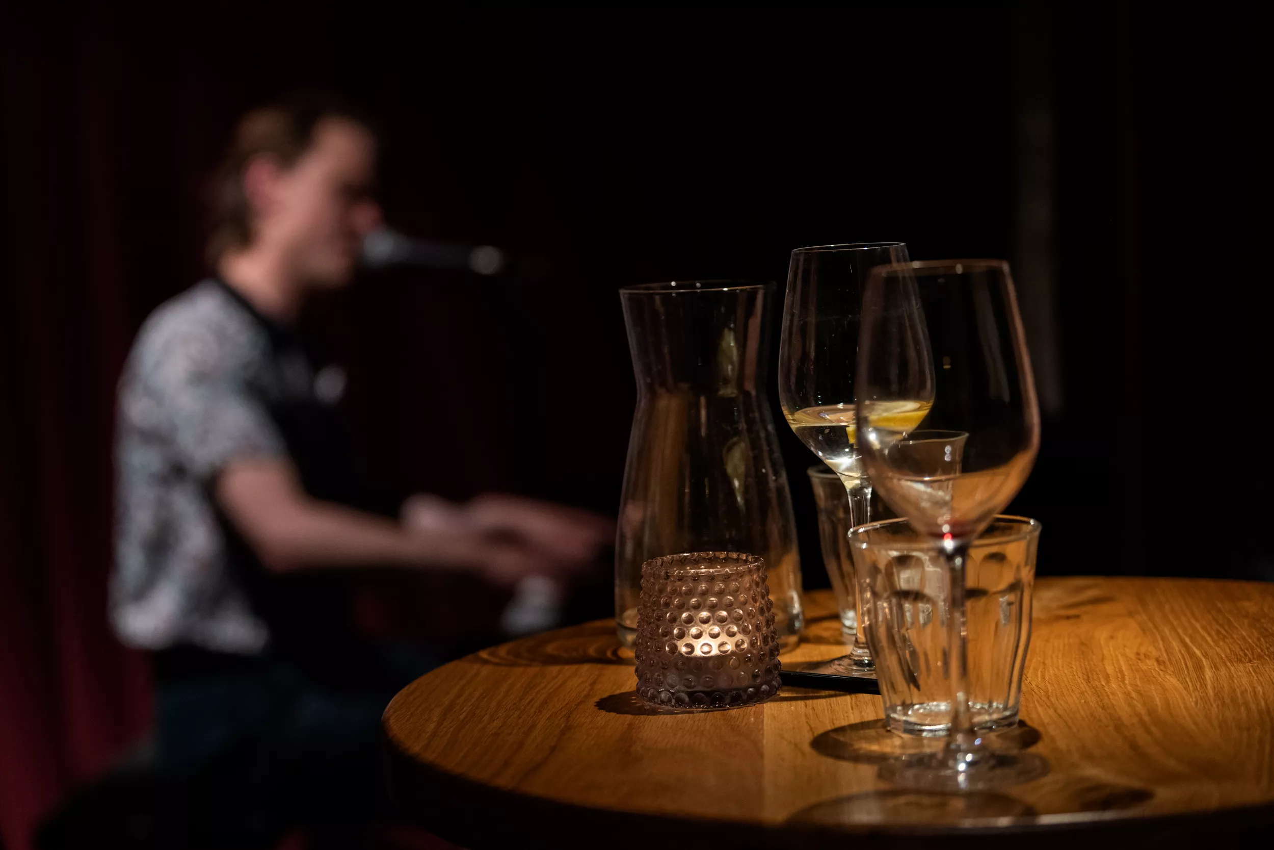 ”I kan bare gå hjem, hvis I skal nå noget, jeg spiller videre,” lyder det cirka to en halv time inde i Bisses klaverkoncert på Café Støj i Aarhus. Det er der dog ingen, der gør.