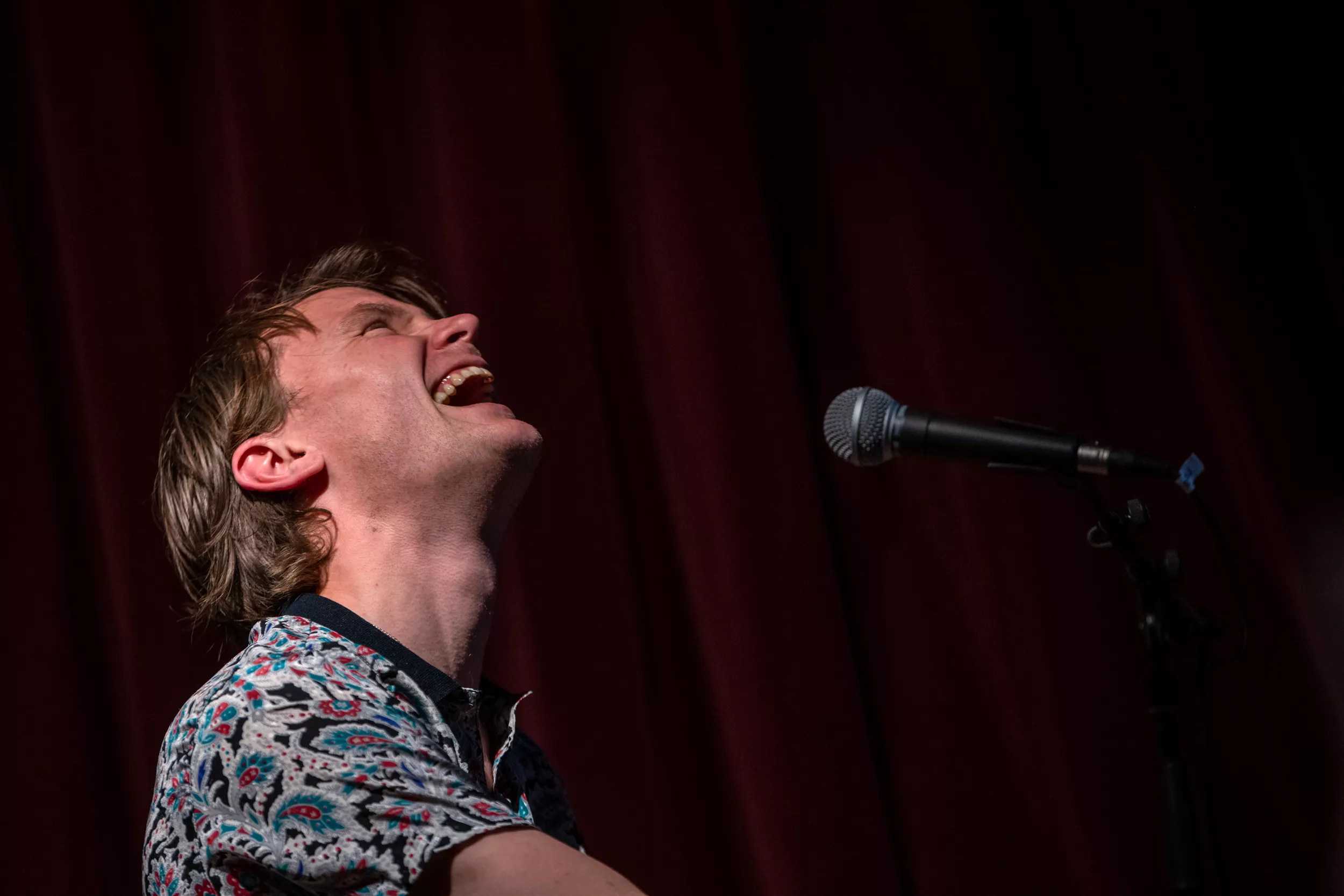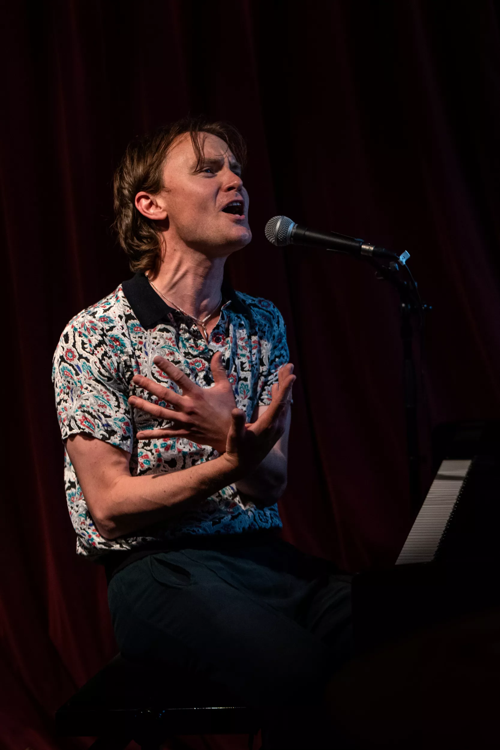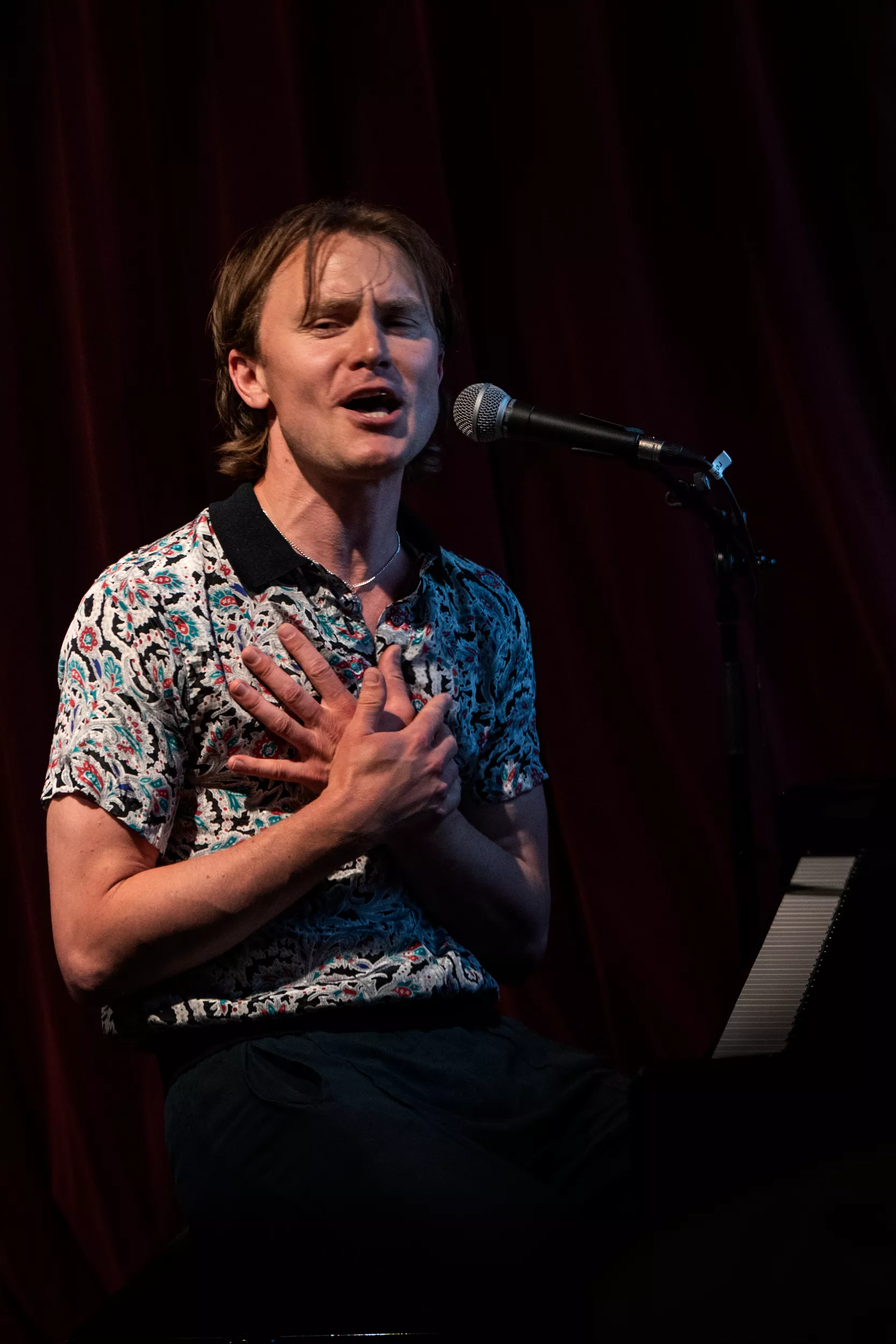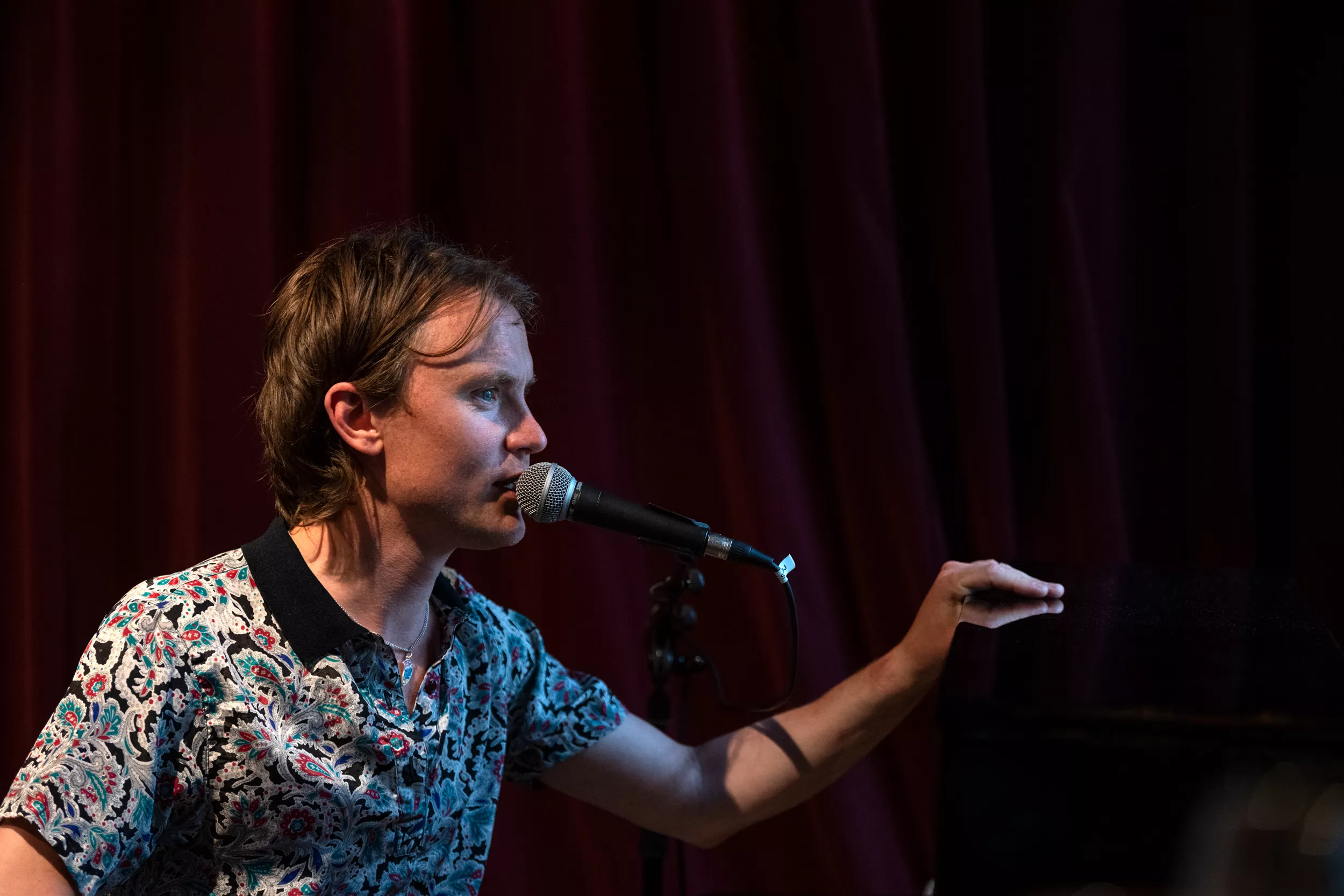”I kan bare gå hjem, hvis I skal nå noget, jeg spiller videre,” lyder det cirka to en halv time inde i Bisses klaverkoncert på Café Støj i Aarhus. Det er der dog ingen, der gør.