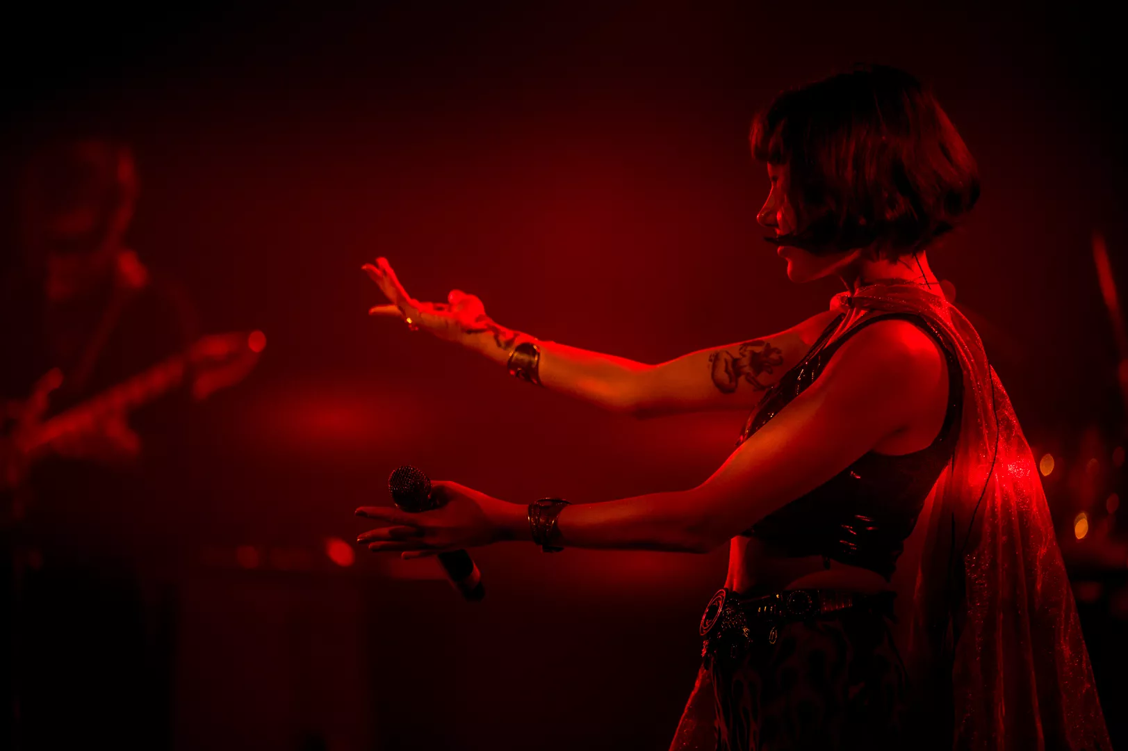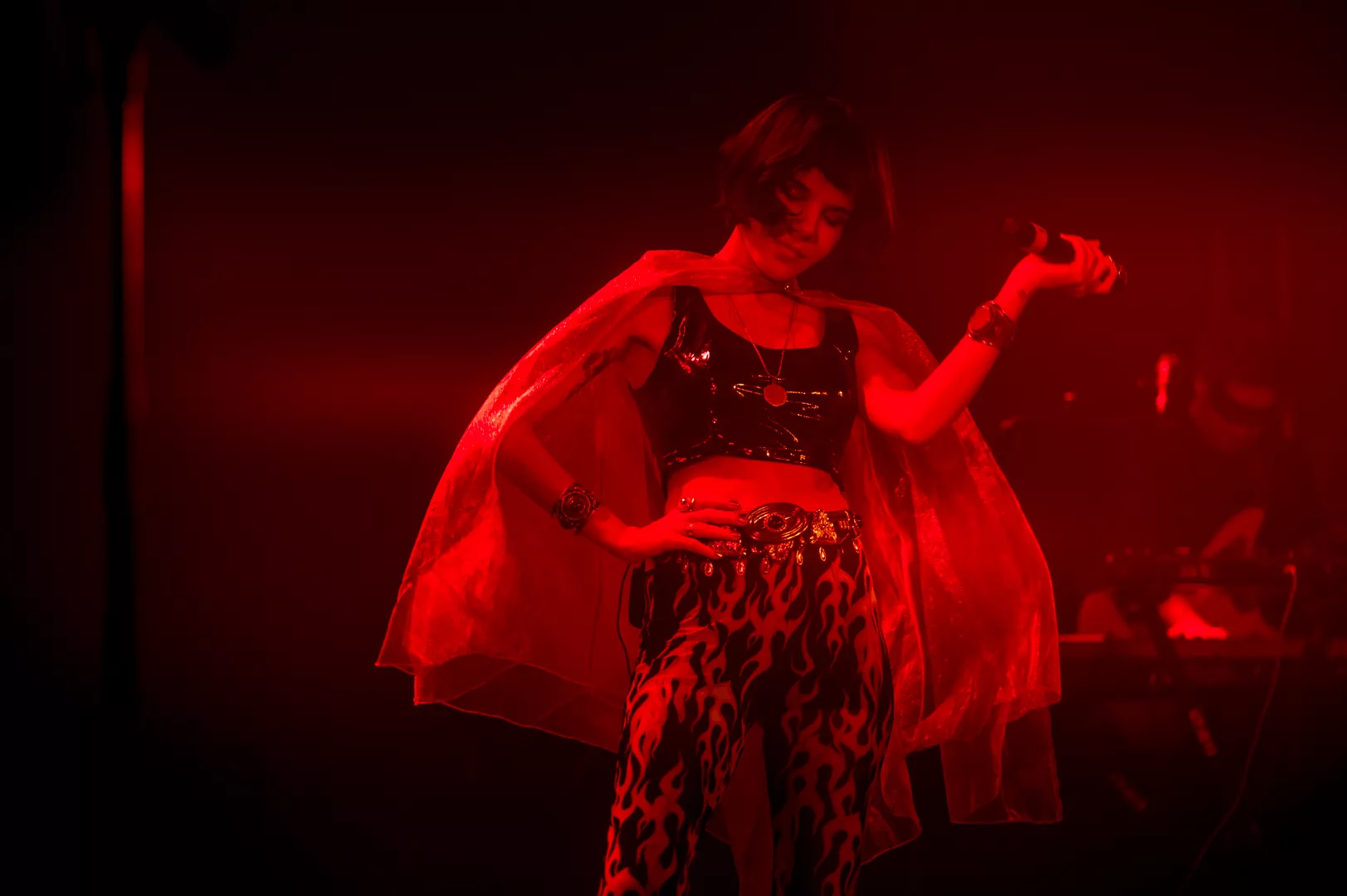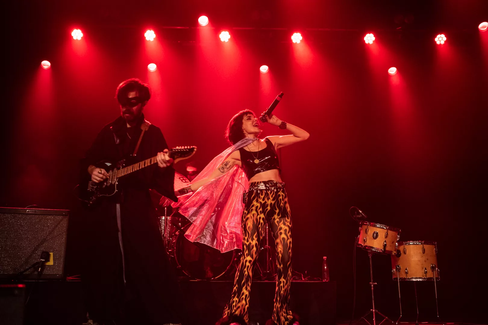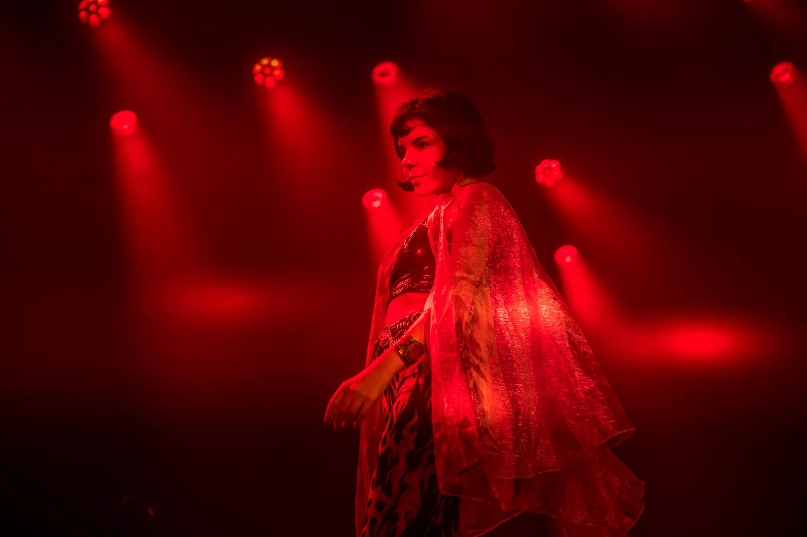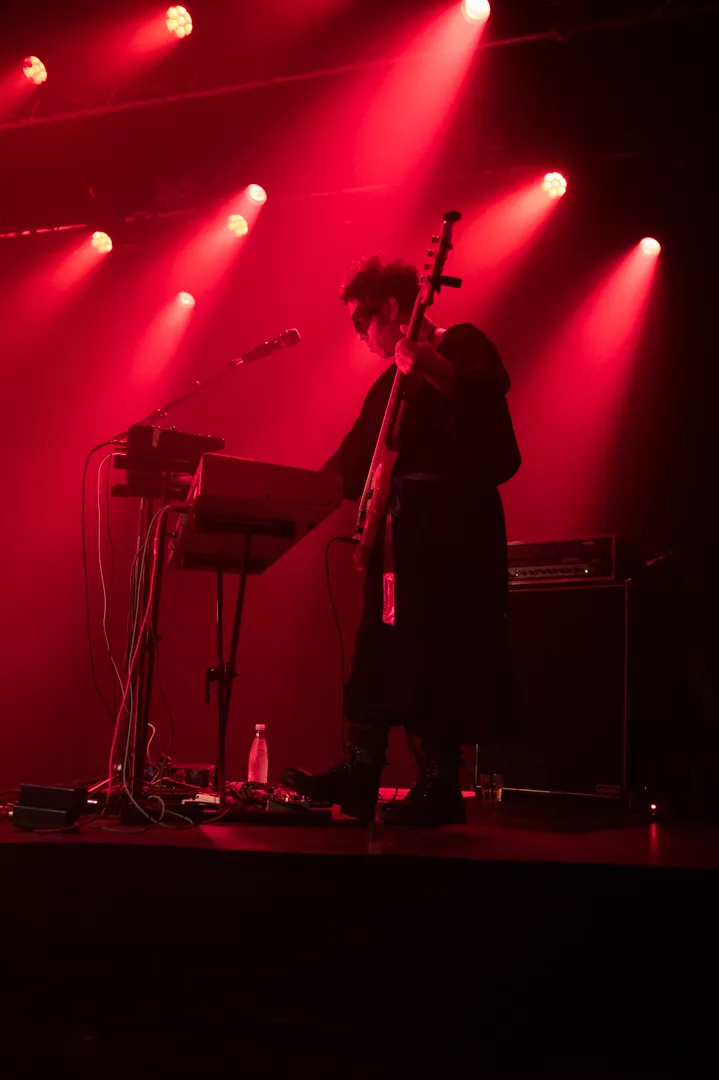 21:33 entrerer Gaye Su Akyol med sit tre-personer store band. 70'er surfrock-lyden og grunget rebelskhed er æstetisk flankeret af iøjnefaldende udklædningsgenstande.