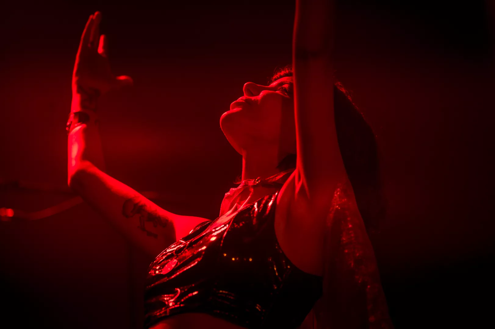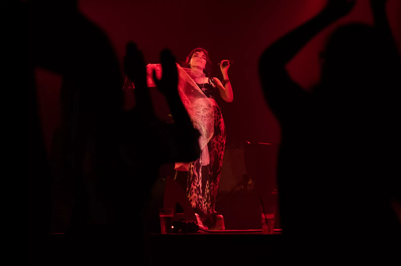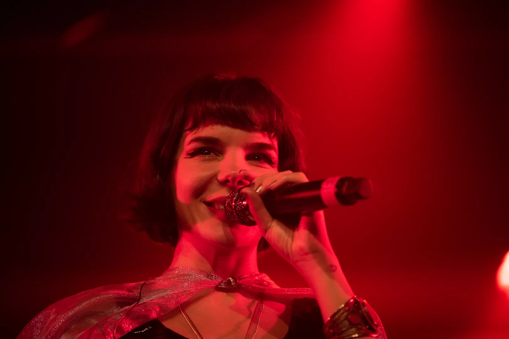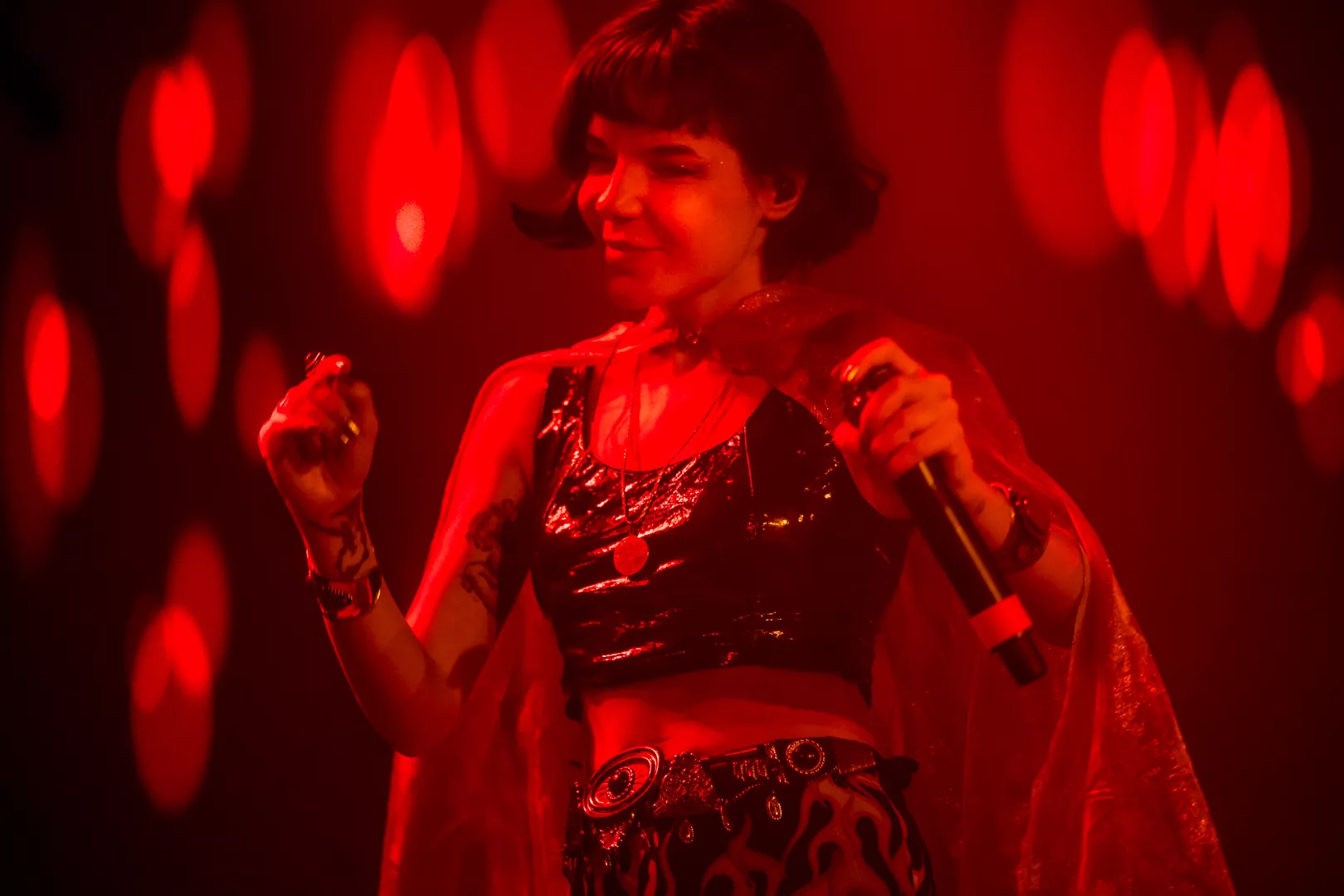 21:33 entrerer Gaye Su Akyol med sit tre-personer store band. 70'er surfrock-lyden og grunget rebelskhed er æstetisk flankeret af iøjnefaldende udklædningsgenstande.