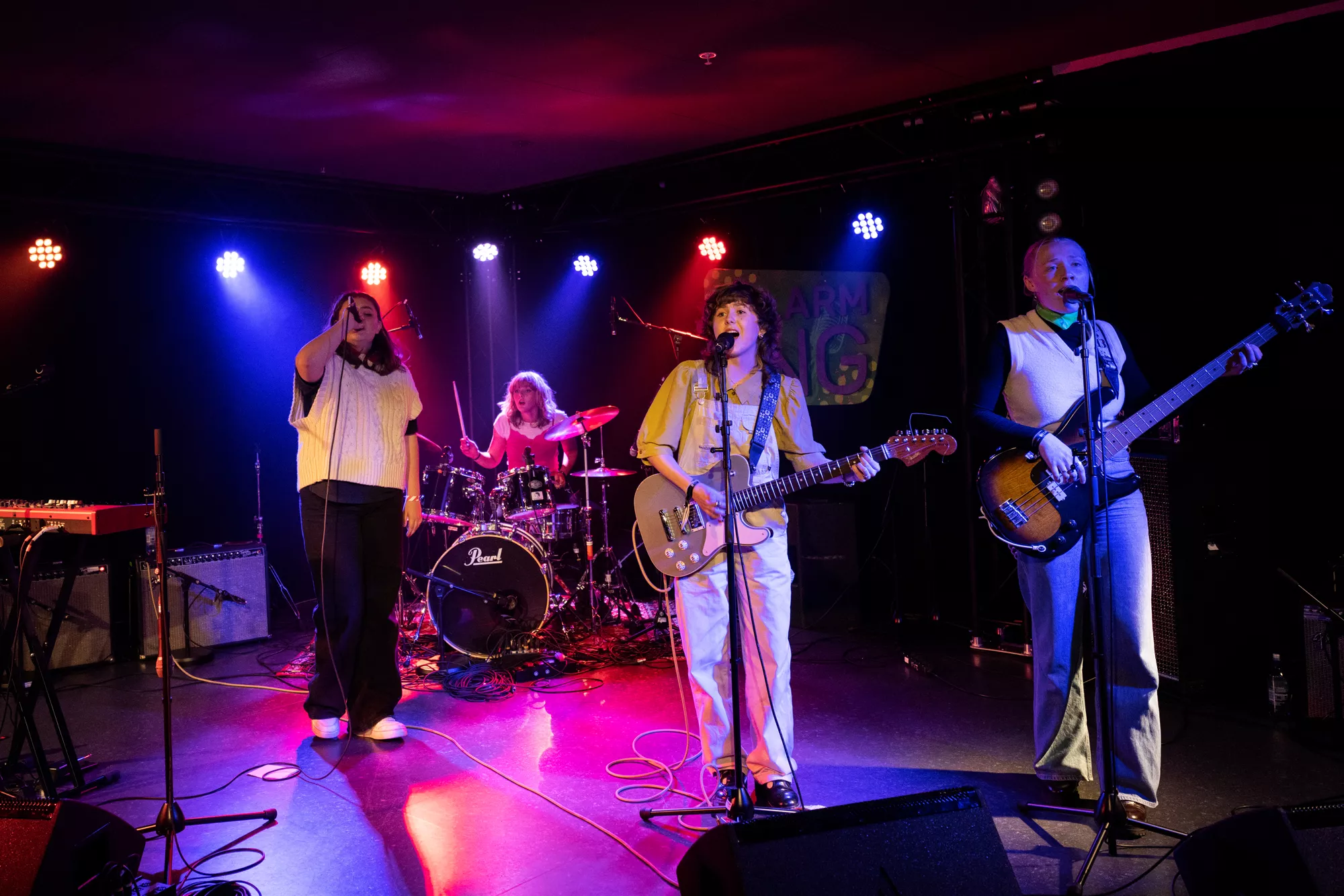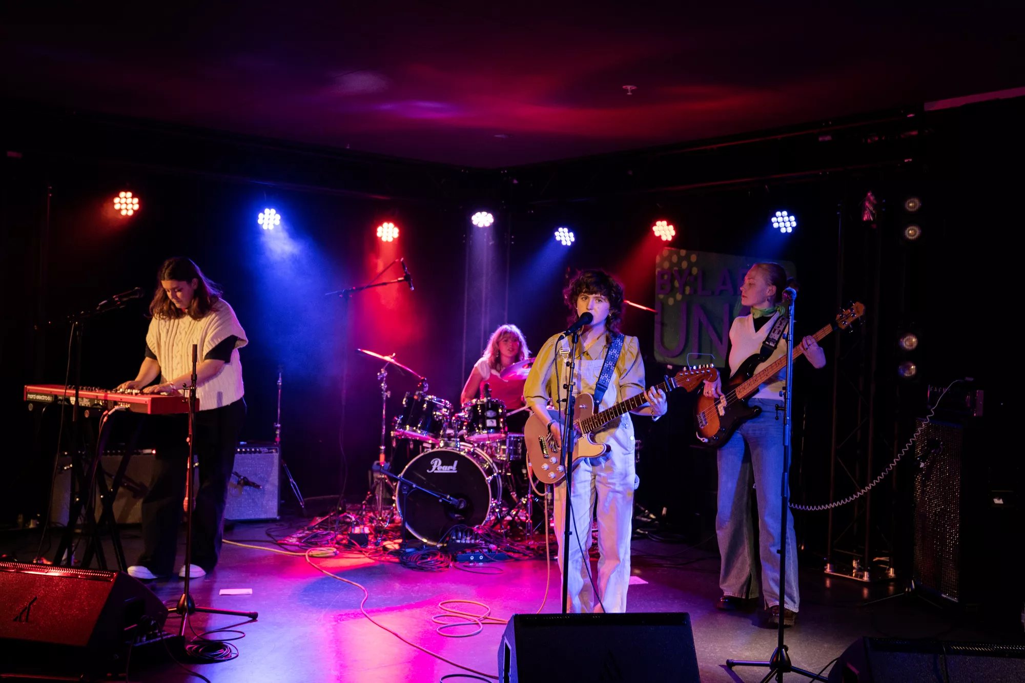 Desværre var der mere end halvtomt i Popsenteret Ung, da Veps – en gruppe bestående af de fire barndomsveninder Laura, June, Maja og Helena – indtog scenen med nervøse gymnasiefnis og stemte deres instrumenter.
