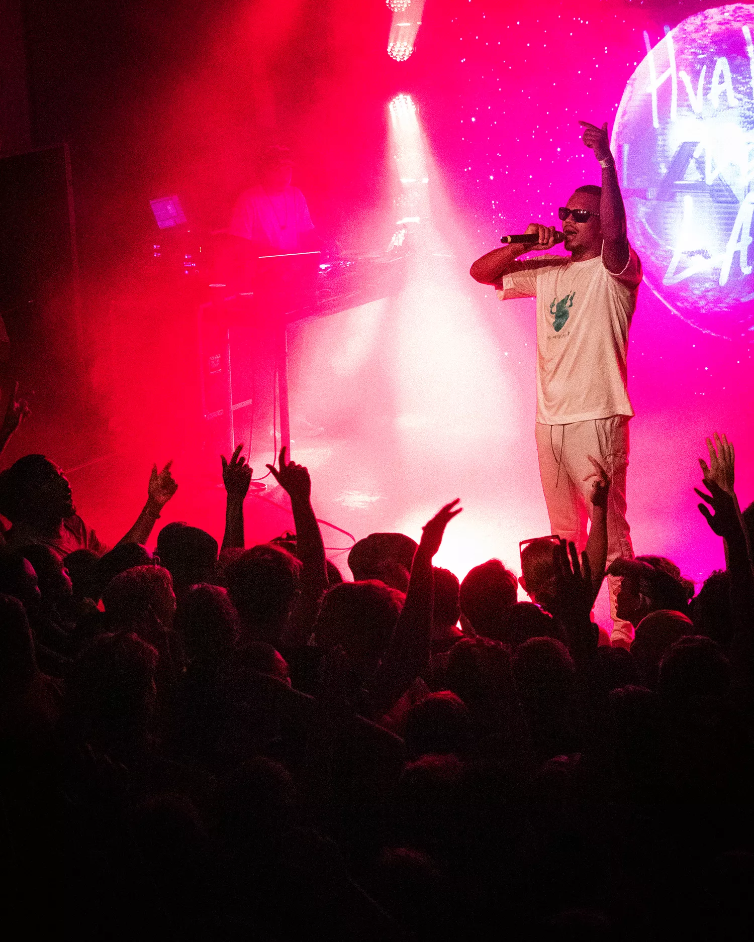 Den festlige stemning kickstartes allerede til opvarmningen, hvor publikum i en udsolgt koncertsal bliver rowdy, da dj-setuppet tager os gennem et mix af globale hits – alt fra Young Thug over MURDA til Tion Wayne, og der på bedste vis lægges et fundament for, at aftenens hovedperson