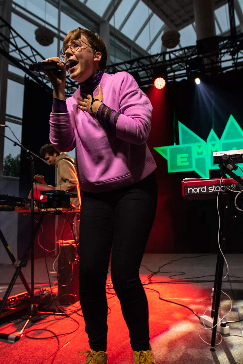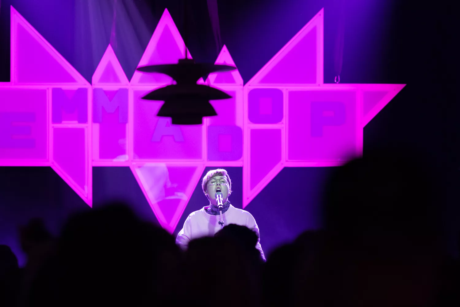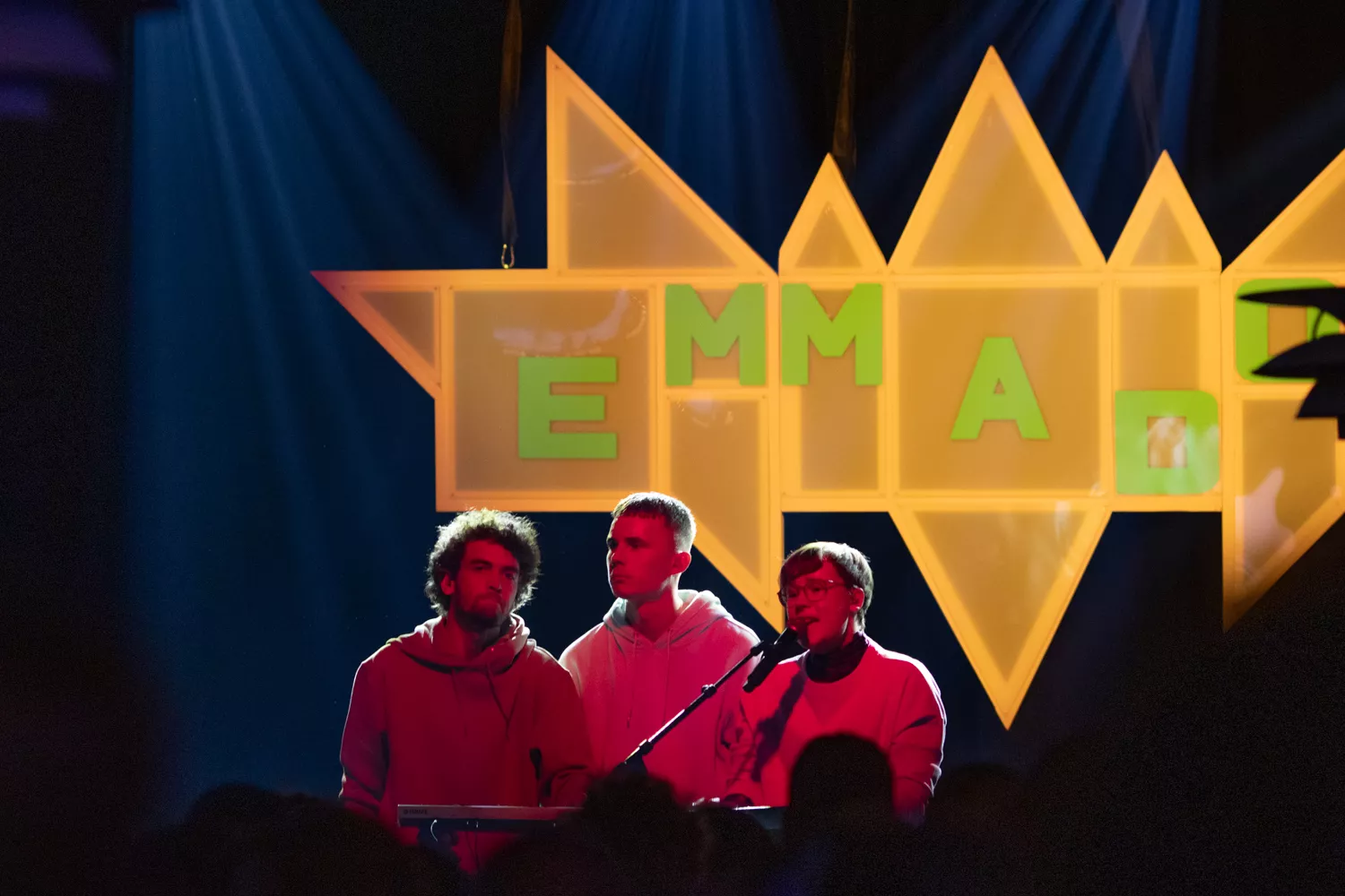 I en crowdet og halvkaotisk foyer i Musikhuset venter publikum på, at EmmaDop går på scenen. Foran bagtæppet hænger et skilt med spidse kanter og bandnavnet stående med hvide bogstaver. Forsanger Line Søndergaard springer ind på scenen, iklædt