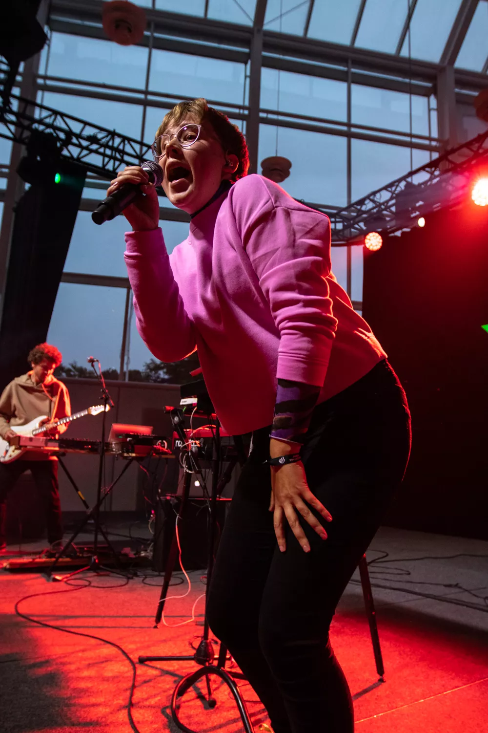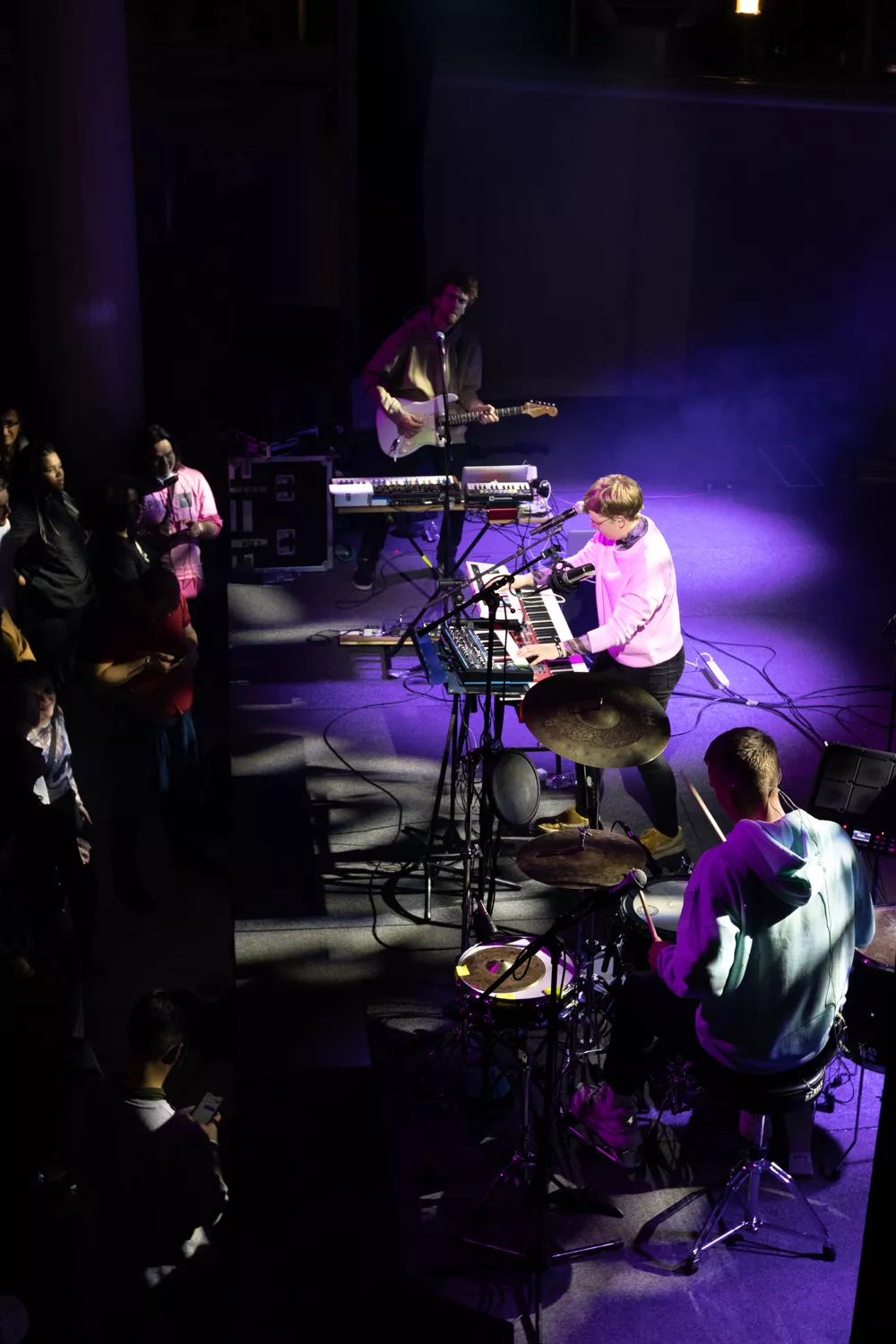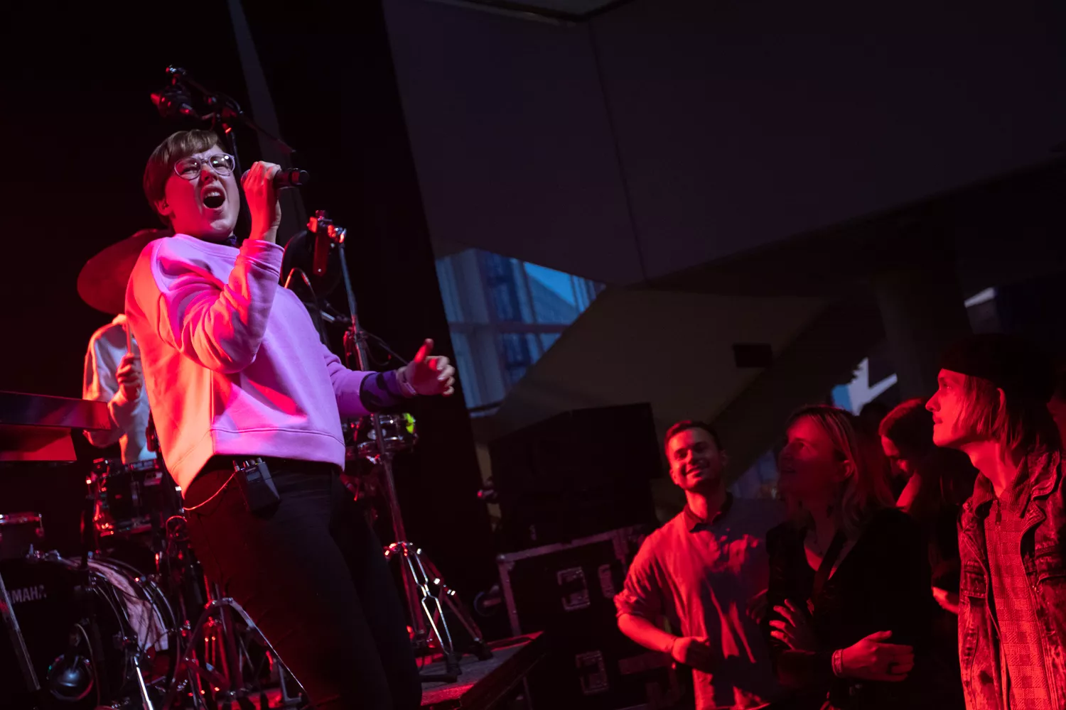 I en crowdet og halvkaotisk foyer i Musikhuset venter publikum på, at EmmaDop går på scenen. Foran bagtæppet hænger et skilt med spidse kanter og bandnavnet stående med hvide bogstaver. Forsanger Line Søndergaard springer ind på scenen, iklædt