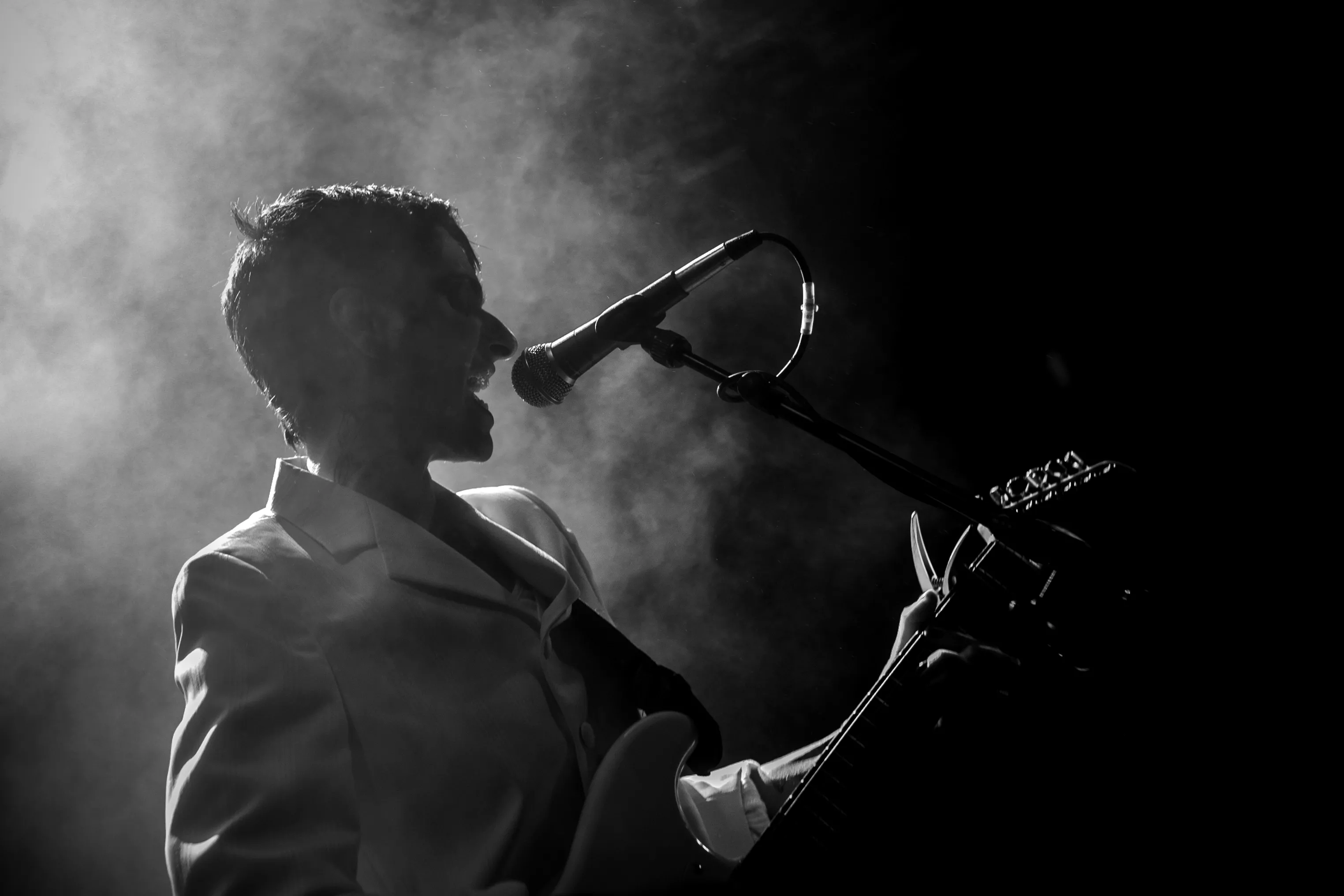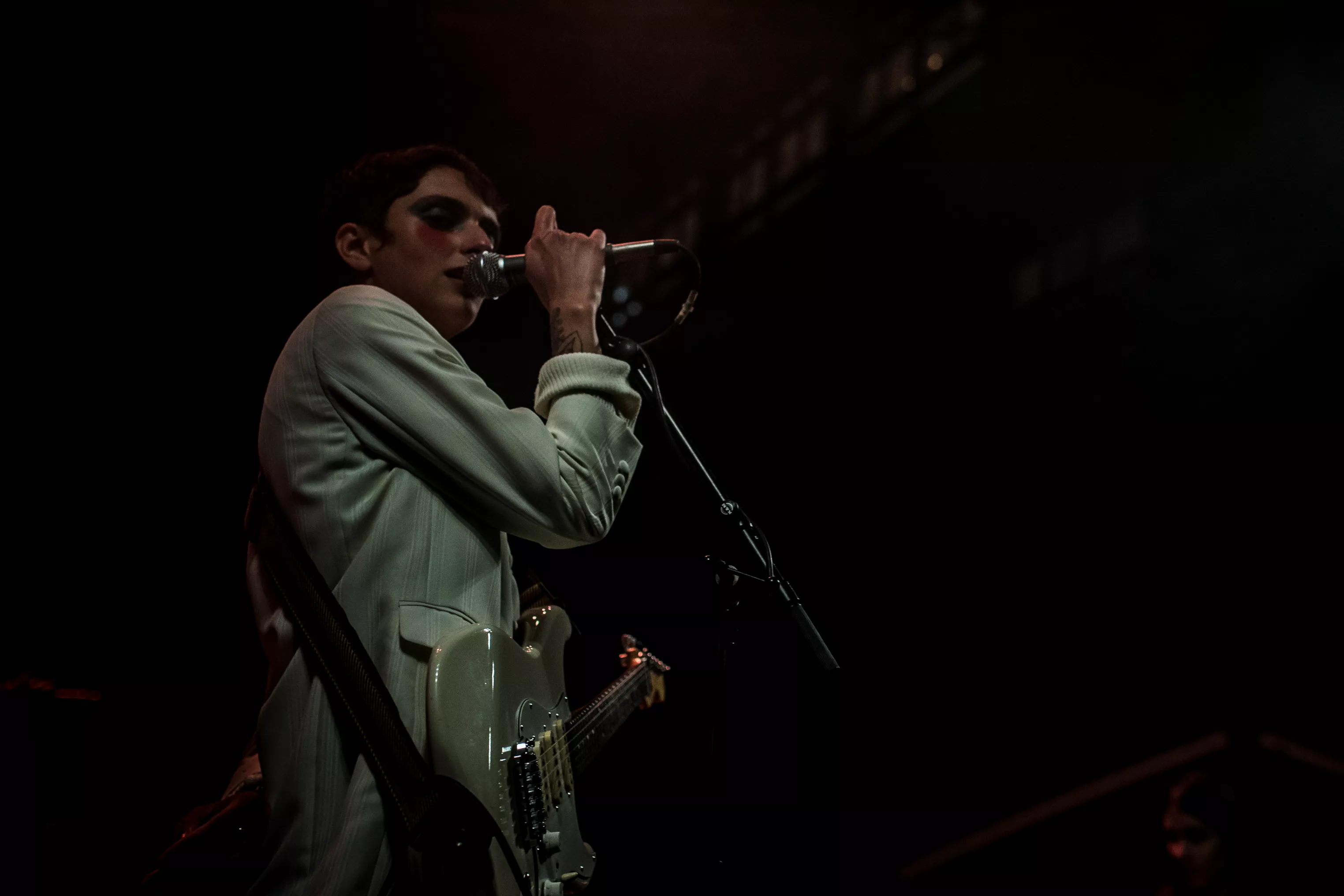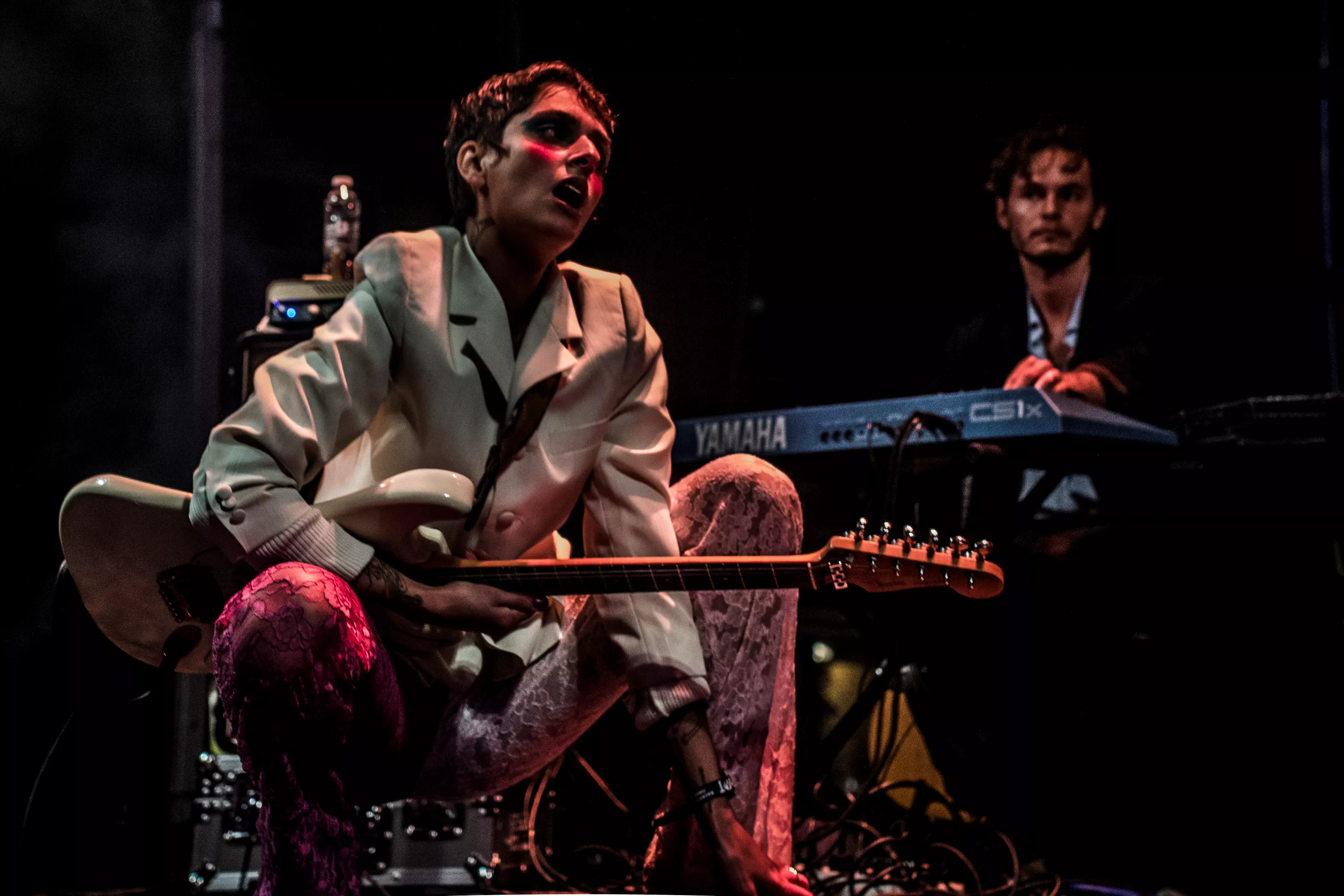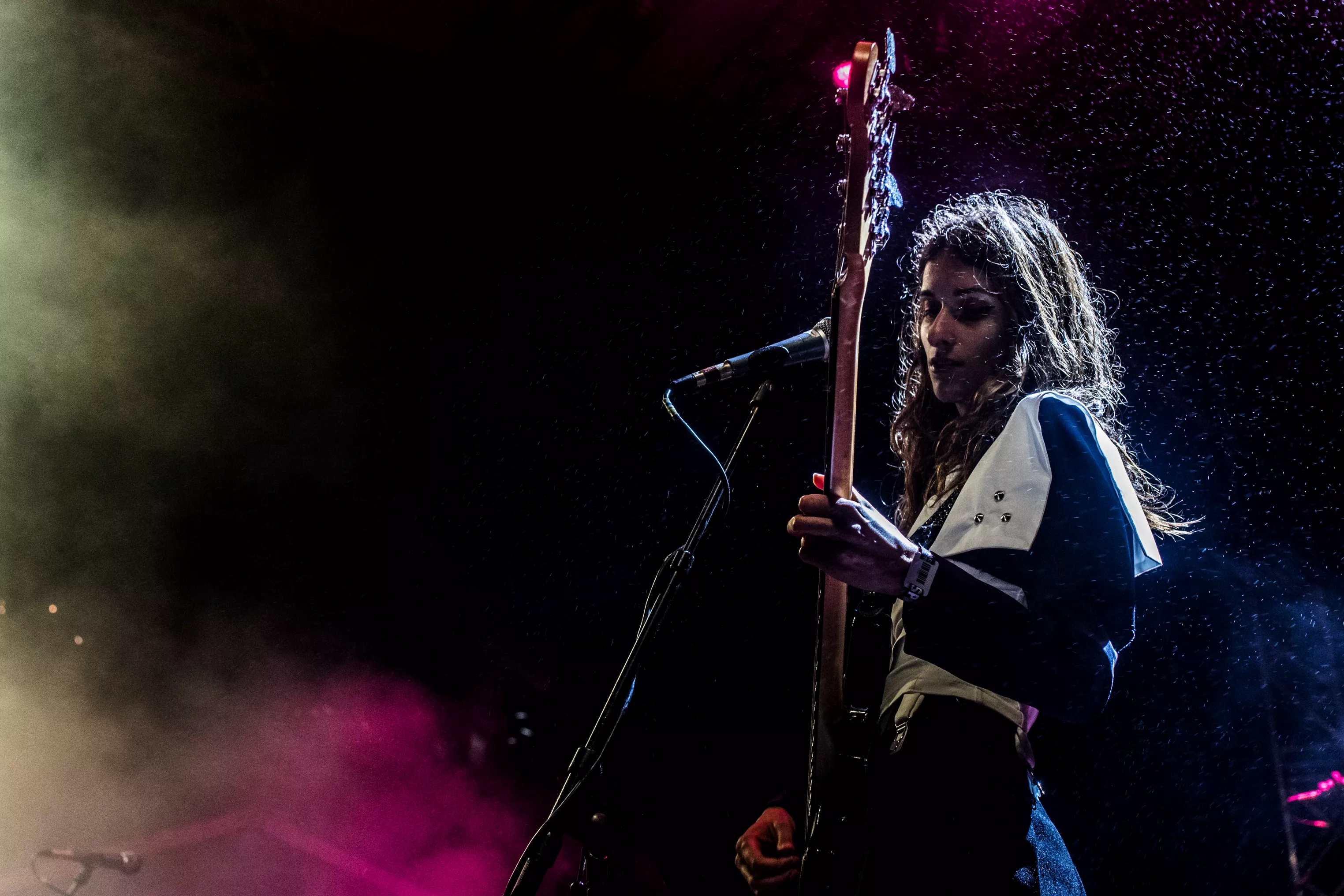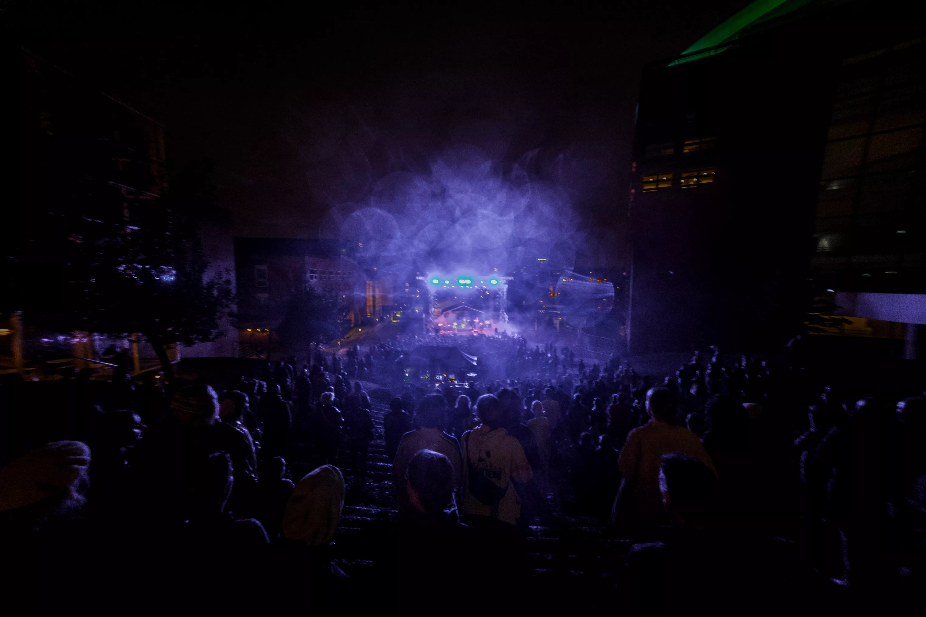 Kl. 21.30 skal gruppen indtage Amfiscenen på årets Spot Festival, men forinden er instrumenterne dækket til, mens en mand svaber vand fra scenegulvet.