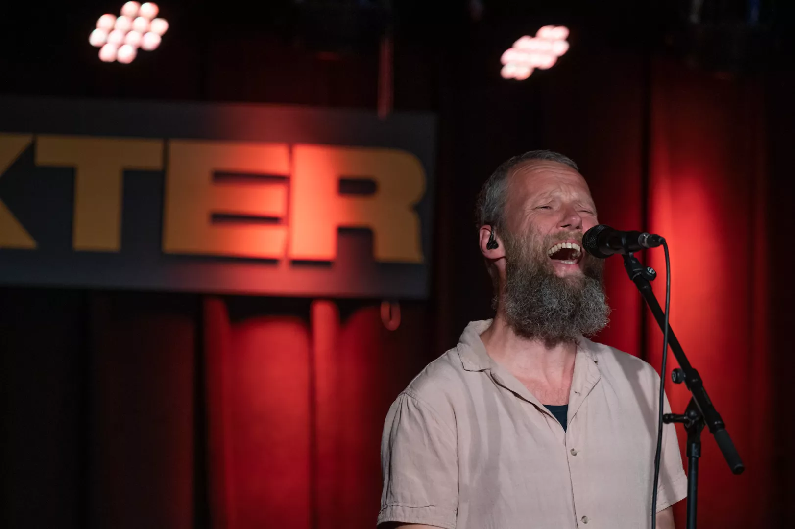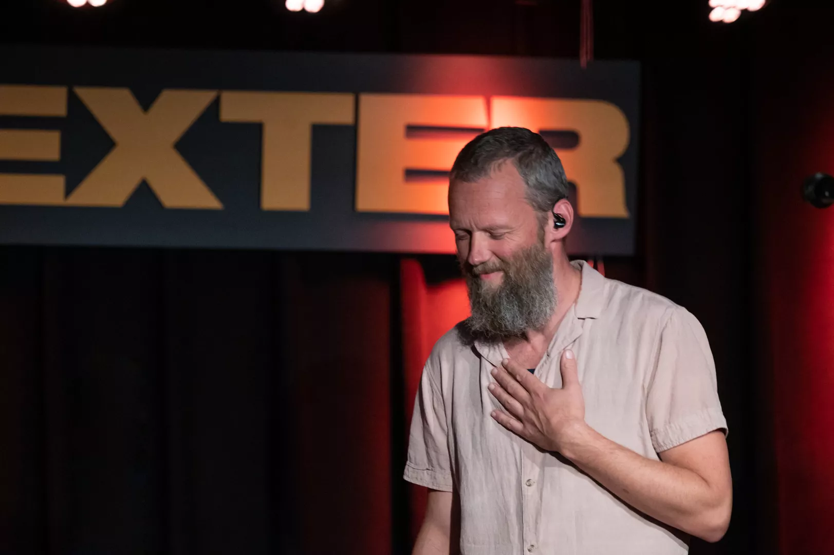 20:05 entreres Spillestedet Dexters scene af den sydfynske hjemstavnsskjald Tom Bjerg i følgeskab af sit fire-personer store band. Huset kan mere eller mindre kalde udsolgt. Demografien til aften er bred, endog overordentlig bred.