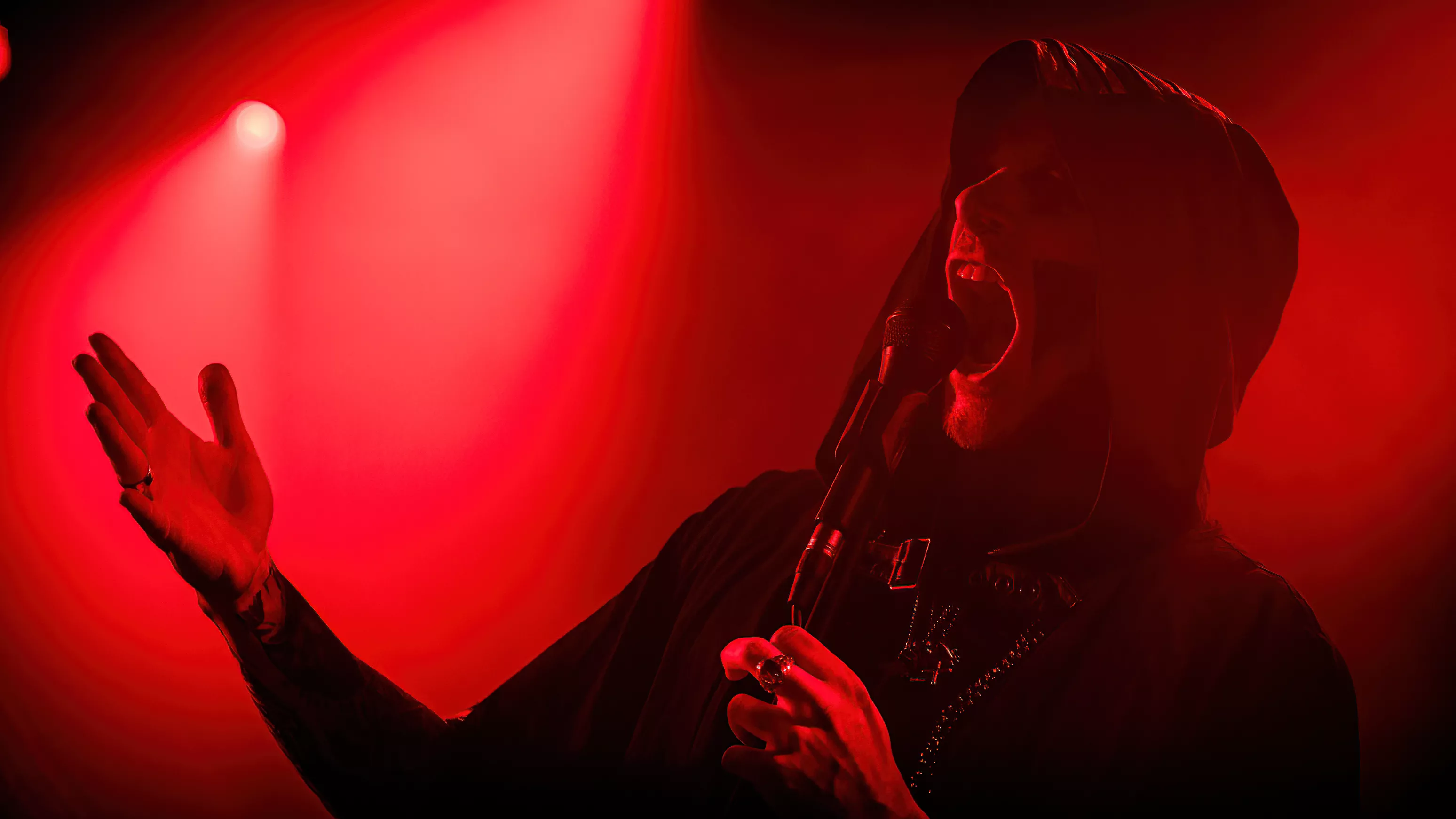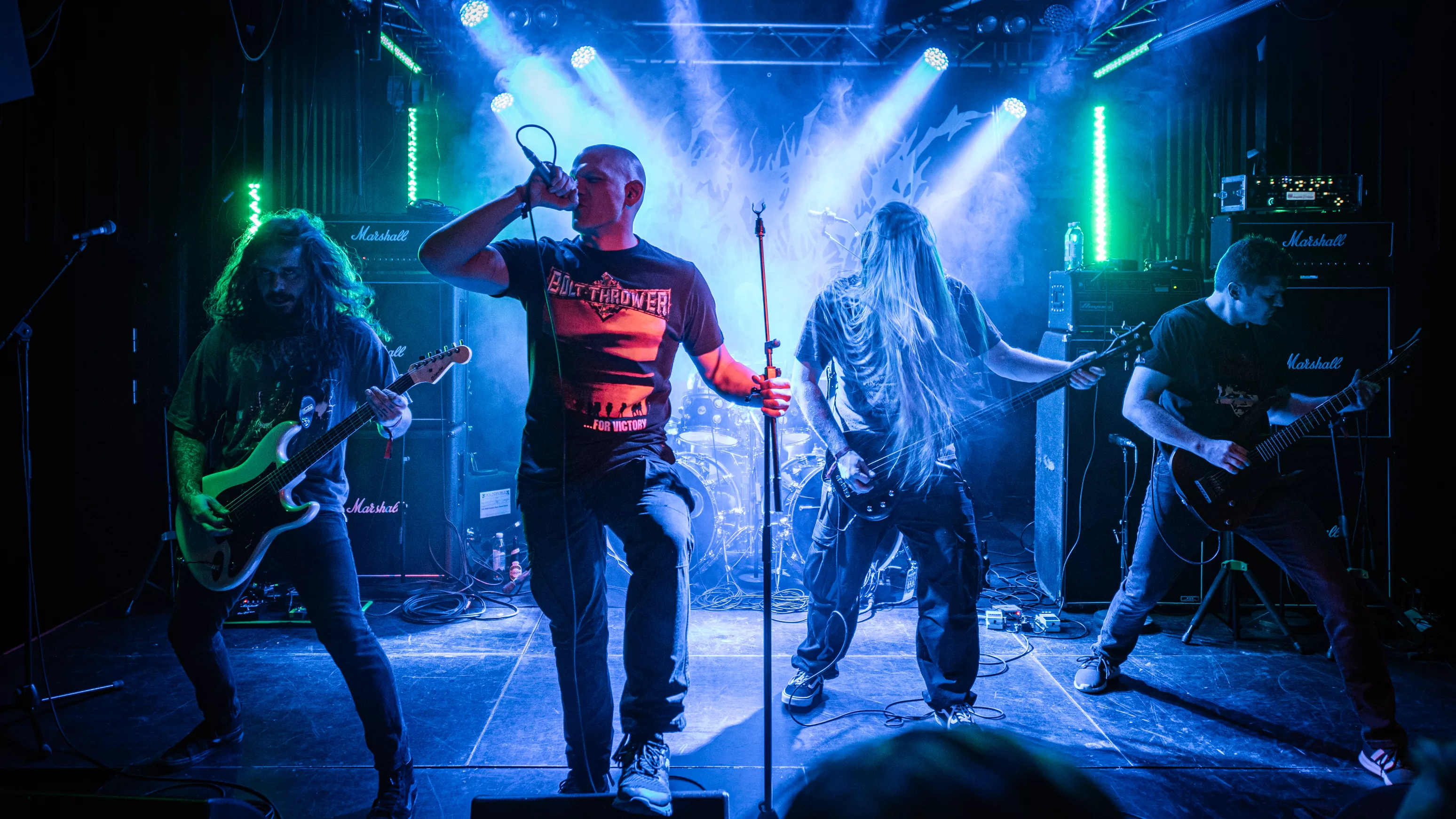 Svenske Valkyrja tæder ind på scenen til dybt rungende toner med ryggen mod publikum, før de slår sig løs med ekstremt teknisk spil, høj energi og ond makeup.