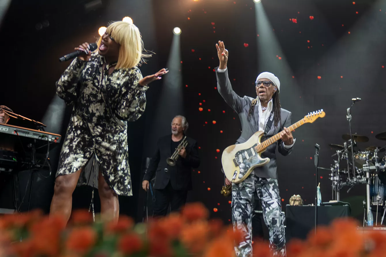 “Last time we were here was in 2015. All I remember is people dancing, going crazy and losing their shit,” startede frontmand Nile Rodgers med at fortælle til publicum, som regnen dalede ned over Bøgescenen.