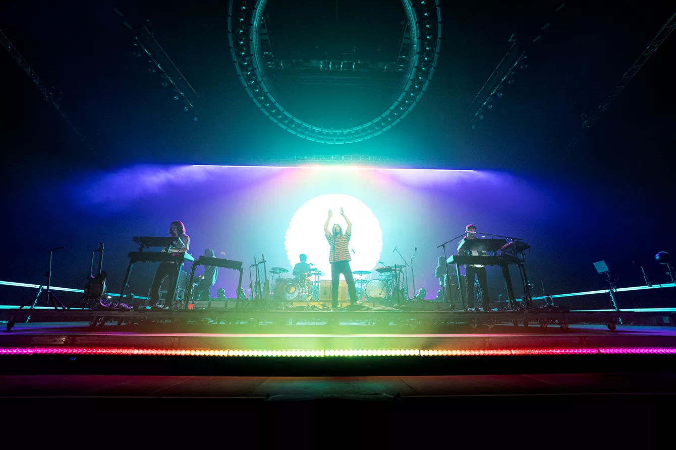 Tågen har indfundet sig i Royal Arena. Klokken er slået 21, og det psykedeliske musikprojekt frontet af australske Kevin Parker er klar til at konsumere 10.000 spændte gæster.