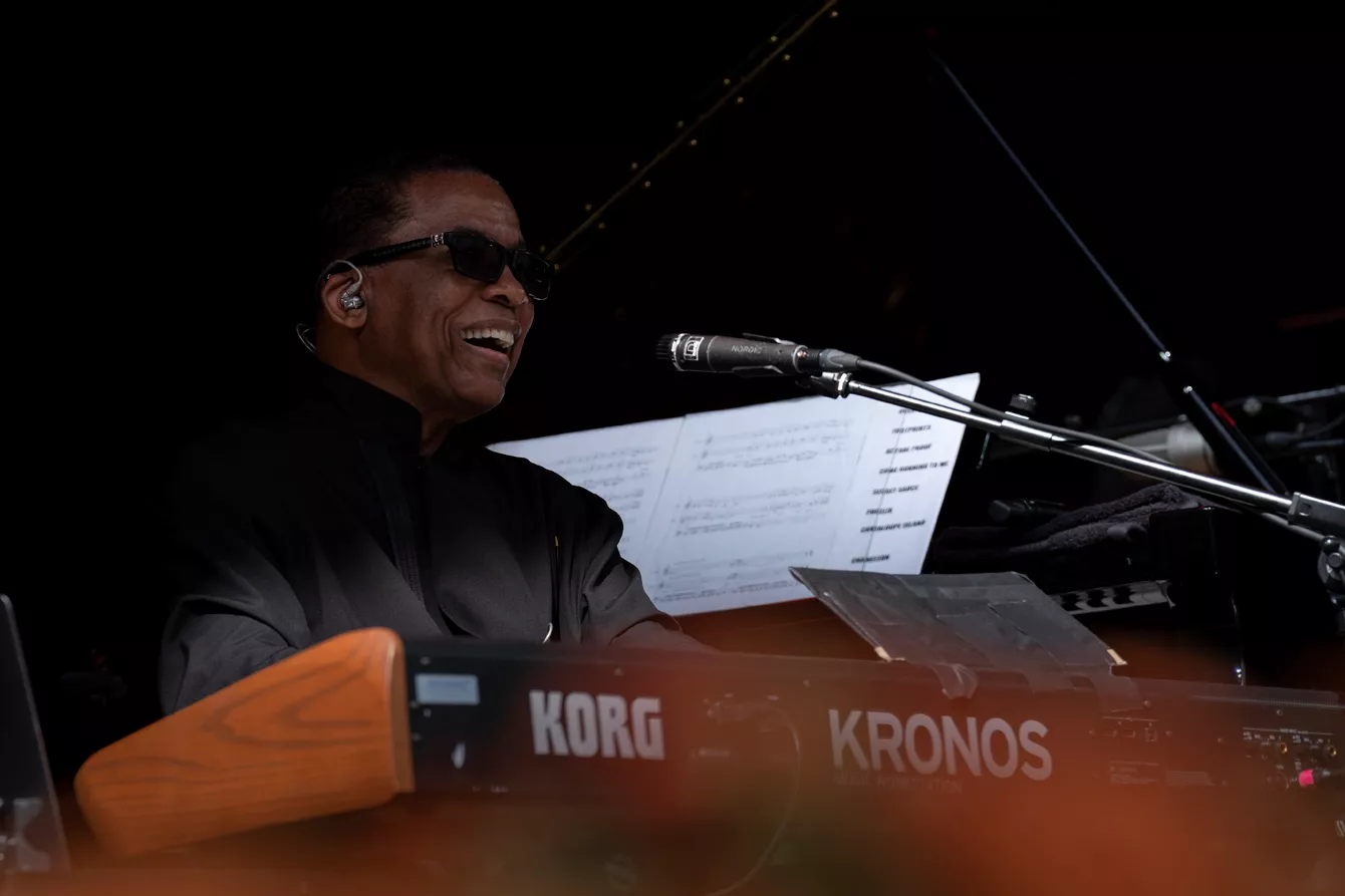 Det var en smilende og sprudlende Herbie Hancock, der indtog Bøgescenerne klokken 15.15 og tilfreds konstaterede ”the people are here today!” Så mange var der nu heller ikke, men veteranen var tydeligt tilfreds, og det smittede af i et funktungt og legesygt fusionssæt. Tænk hvis man kunne opnå bare