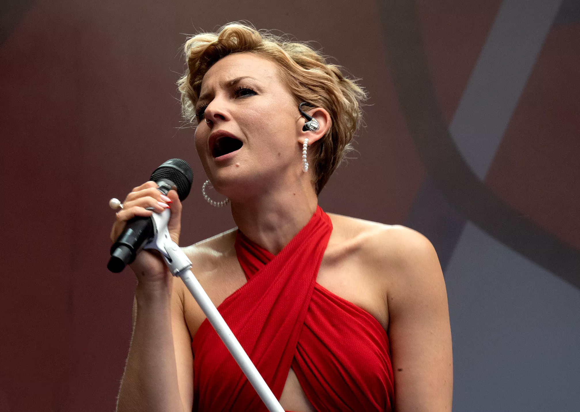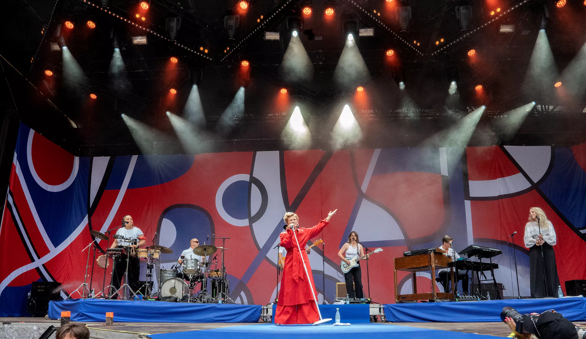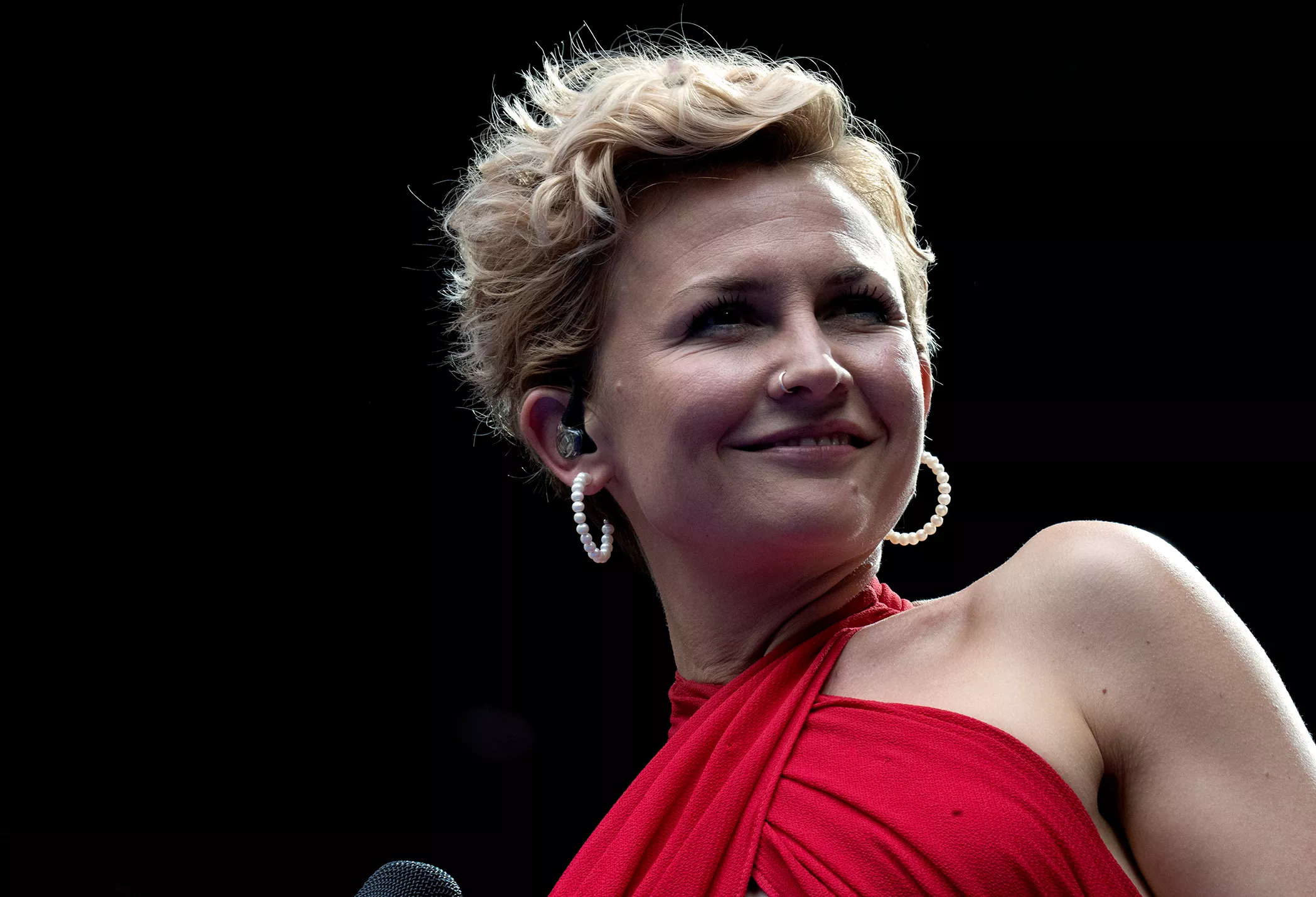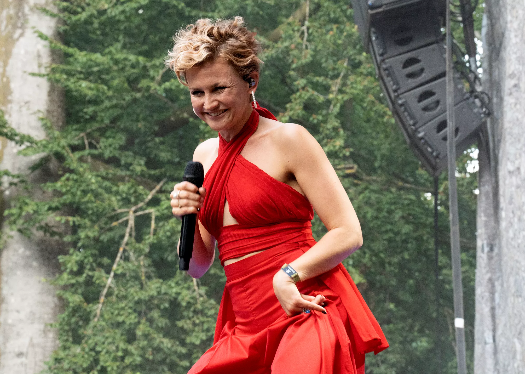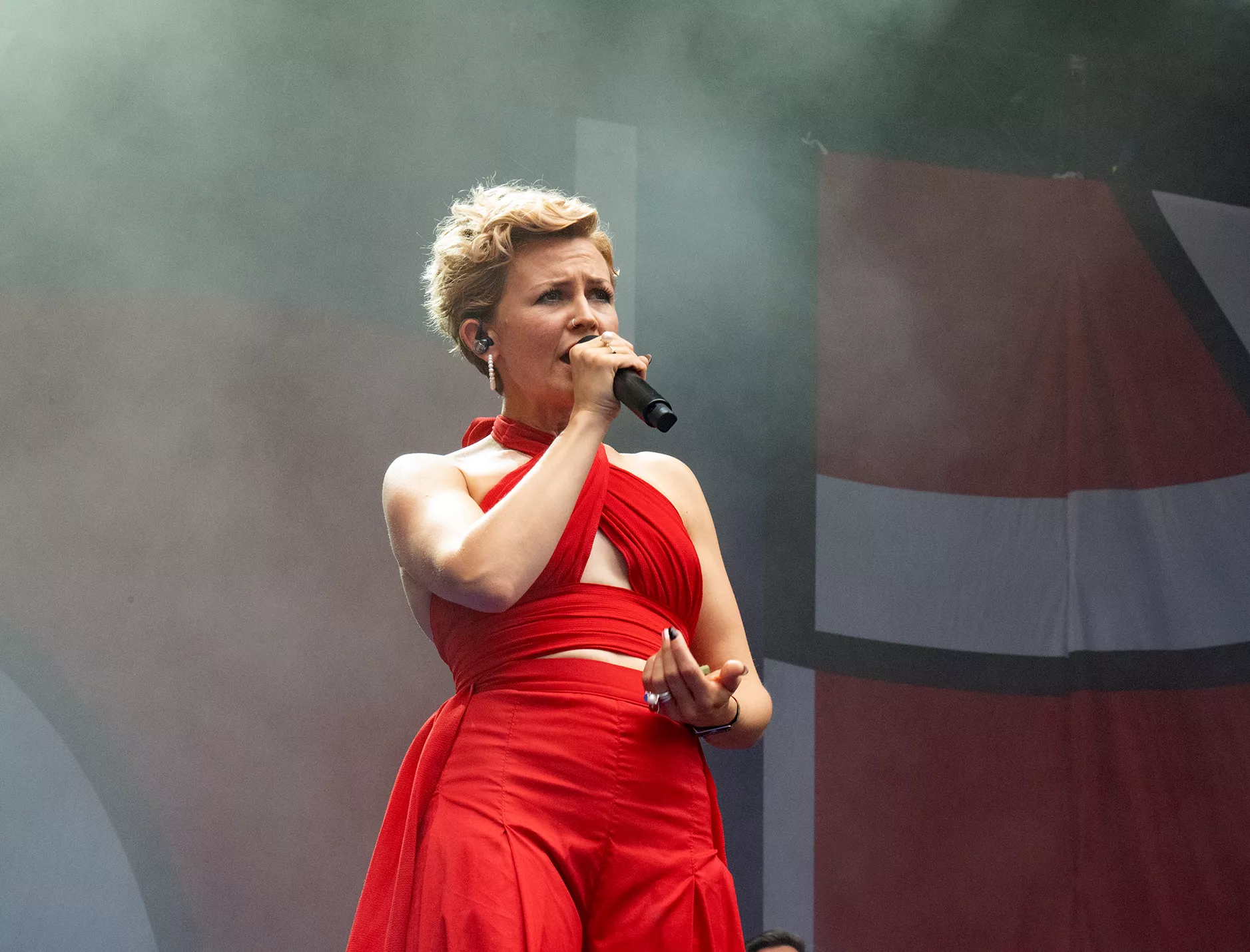 Stine Bramsen er næsten på hjemmebane på Smukfest. I hvert fald er hun opvokset i Ry mellem Skanderborg og Silkeborg, og det får hun da også nævnt under sin koncert på festivalen, hvor en trekvart fyldt plads foran Stjernescenen tager pænt imod hende torsdag eftermiddag.