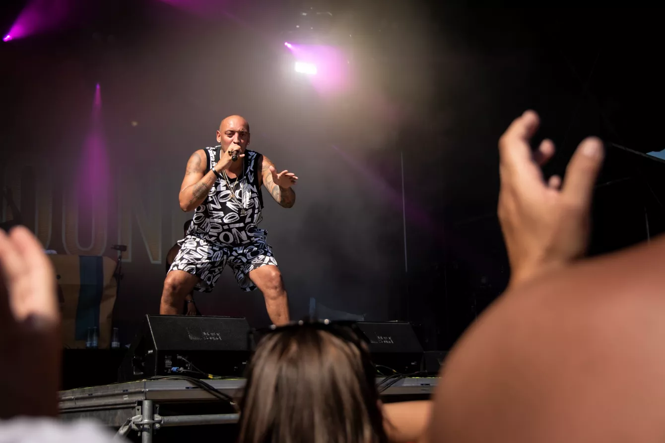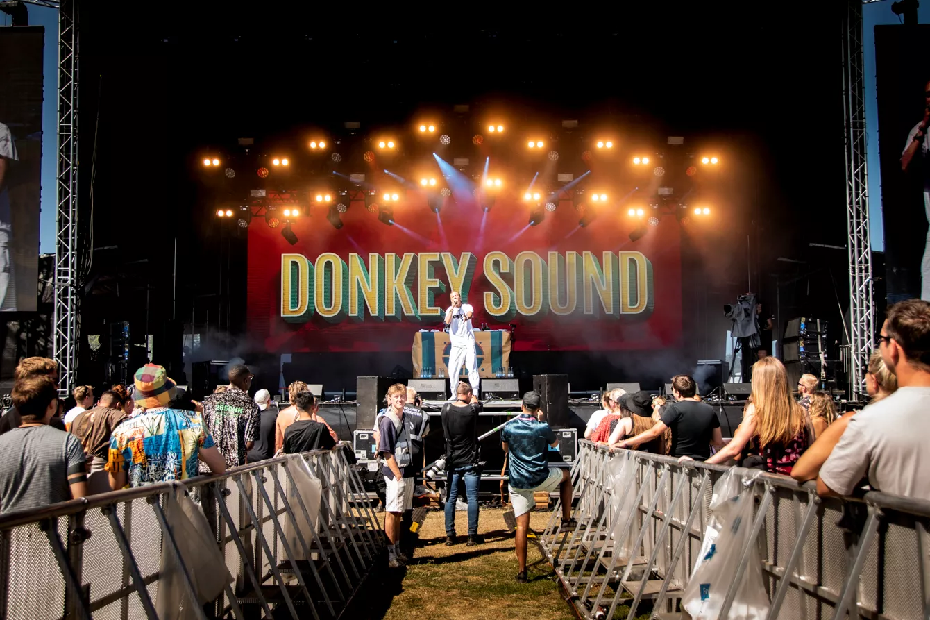 I den bagende sommersol står en meget beskeden håndfuld mennesker klar foran københavnerfestivalen AiaSound Festivals main stage, hvor reggae- og dancehall-kollektivet Donkey Sound om et kvarter skal indtage scenen. Artisterne — Pharfar, Wafande, Shaka Loveless, Kaka og dj Fresh-I — har ellers hits